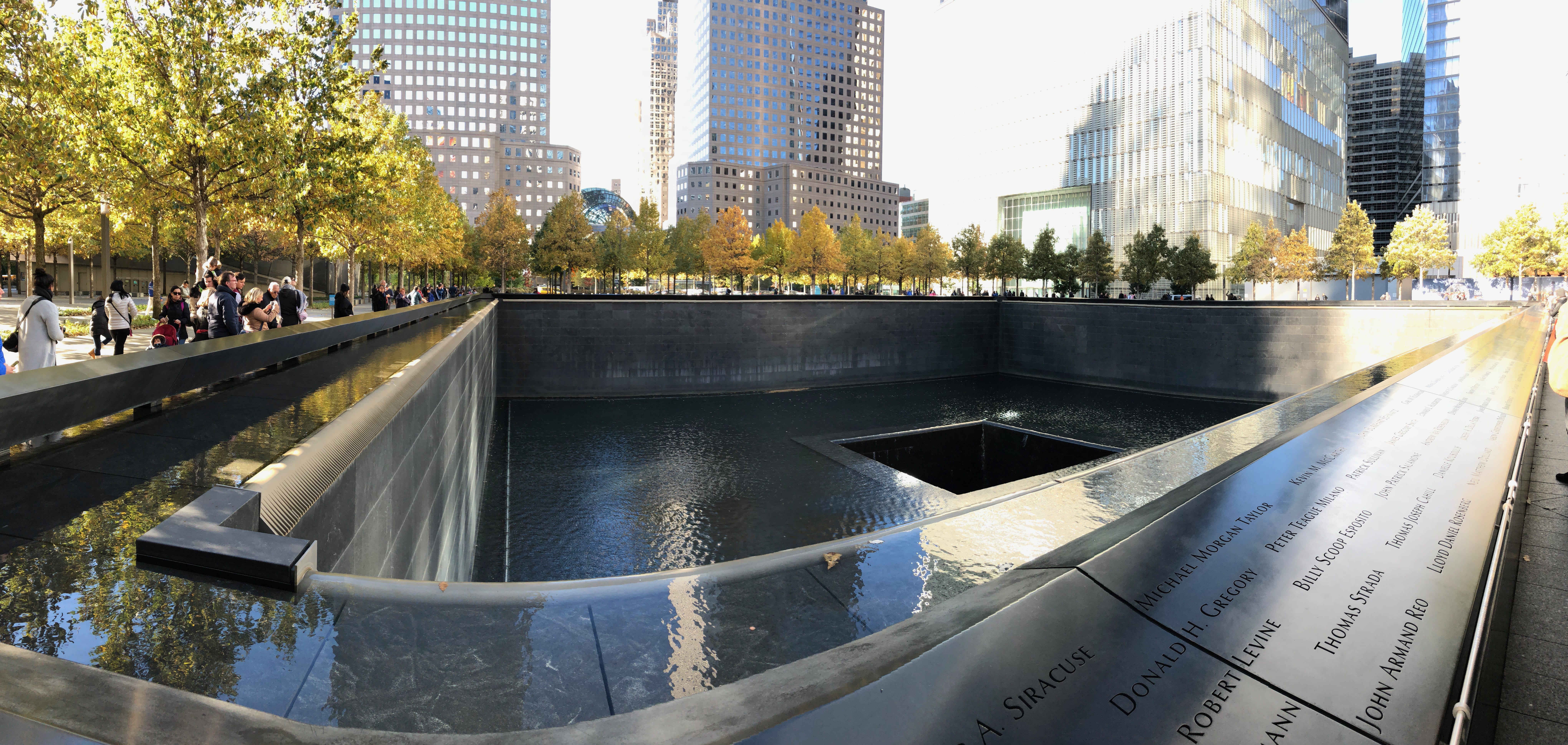 C’est vers Ground Zero, lieu de l’effrondrement des deux tours du World Trade Center, le tristement célèbre 11 septembre 2001, que nous nous dirigeons après avoir reposé le pied sur la terre ferme. Une pause déjeuner dans un Burger King, plus pour apercevoir un mur de plaques de tous les états du pays, que pour y manger quelque chose d’exceptionnel, et nous voilà repartis pour ce lieu chargé d’Histoire, et d’émotion. Même si l’on a pu être un peu interpellés par les gens prenant la pose en souriant dans des endroits comme celui-ci, nous avons forcément été pris de frissons en voyant l’immensité des immeubles alentours, et le vide crée par la chute de ces deux tours. Le musée dessous, à l’endroit même où celles-ci se trouvaient, regroupe des engins de secouristes venus sur les lieux, complètement détruits, des témoignages poignants, des expositions temporaires, les noms des victimes et porte les stigmates de ces terribles jours noirs pour les Etats-Unis. On a même parfois du mal à s’imaginer que juste là s’érigeaient deux immenses tours, dont les fondations sont aujourd’hui à peu près tout ce qu’il en reste. Absolument incontournable pour toute visite dans la ville, tant pour le devoir de mémoire, que pour s’opposer à cette barbarie infâme dans le monde.