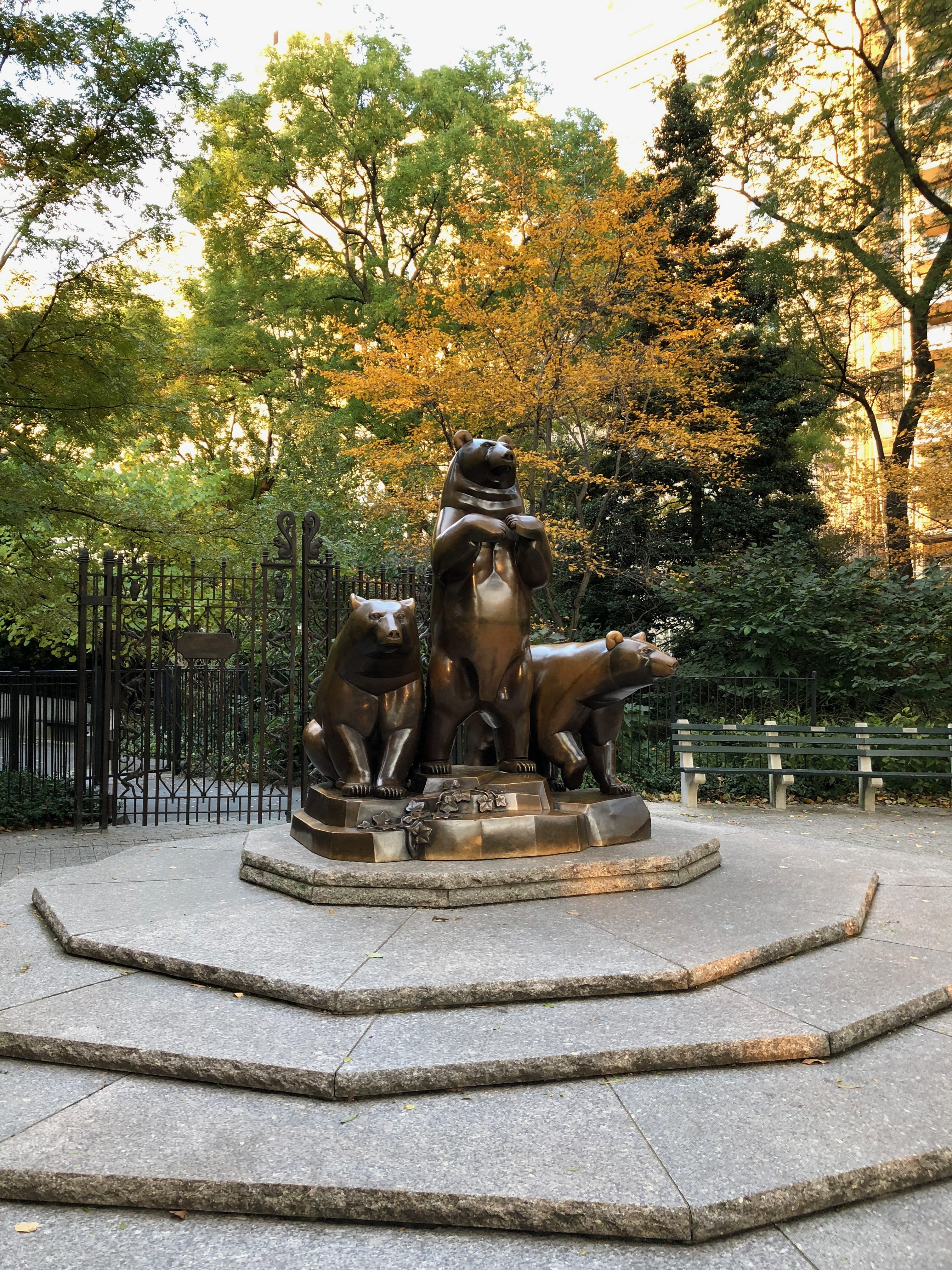 La journée entame sa deuxième moitié et nous voilà donc repartis vers la 5ème avenue, et au détour du Plaza Hotel, à l’entrée de Central Park. Cette fois-ci, nous l’arpentons, bien motivés à en voir les incontournables, et tout ce qui se présentera à nous de manière plus spontanée. Valent vraiment le détour, la Fontaine Bethesda visible dans de nombreux films, les statues d’Andersen, d’Alice au pays des merveilles et du Group of Bears, et le mémorial John Lennon, que nous n’irons voir que le dernier jour.