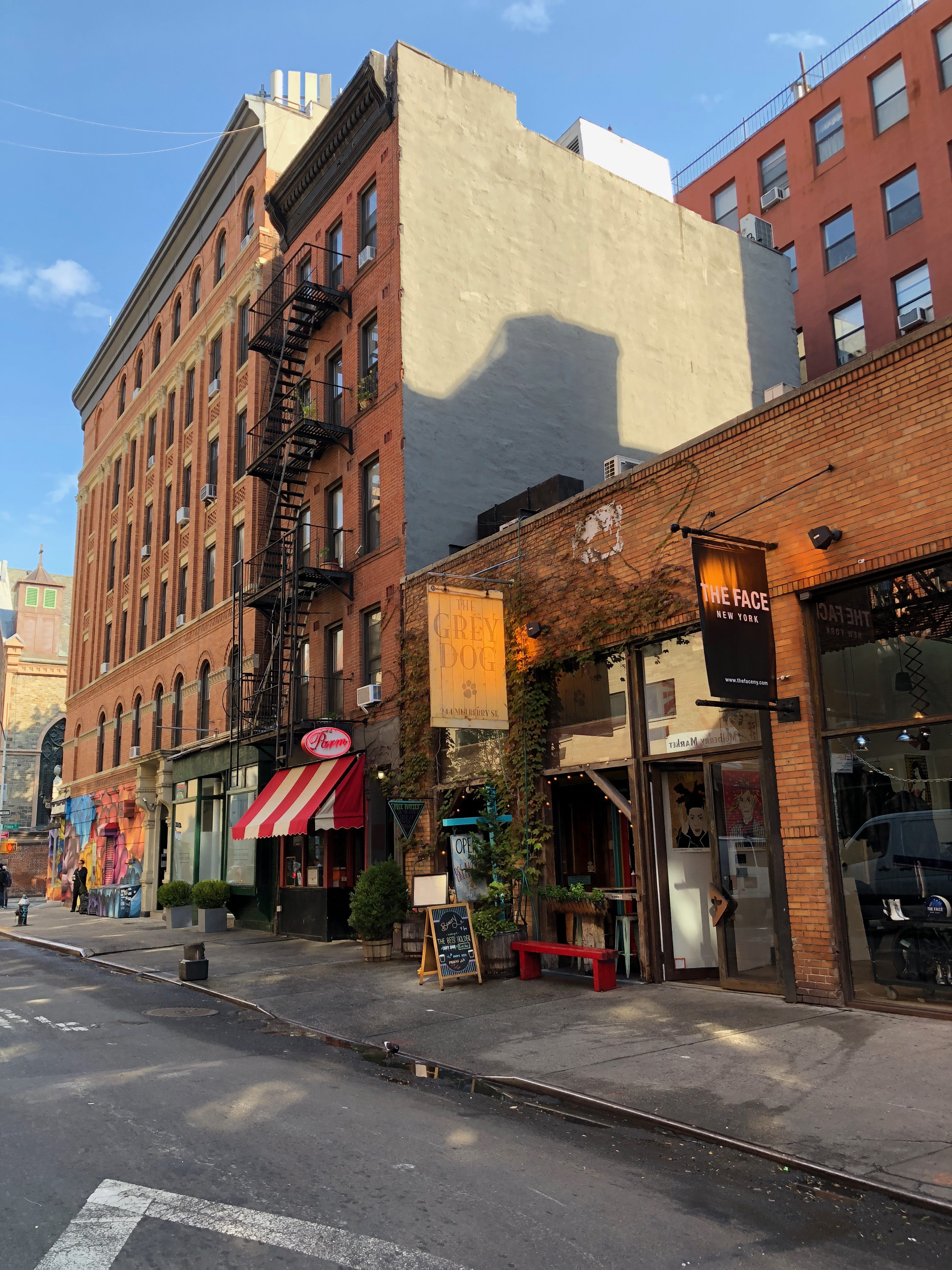 Pour l’essentiel, SoHo (South of Houston Street) est un ancien quartier industriel dont les vieux buildings réservés aux entreprises servent aujourd’hui de terrain de jeu aux artistes y ayant crée leur loft comme ils l’entendent. Si le quartier a tant de charme aujourd’hui, c’est autant par les escaliers extérieurs qui parsèment les immeubles que par les innombrables motifs décoratifs en fonte typiques qui embellissent les façades. Si le résultat est du plus bel effet, on ne peut que retenir qu’en fait, il s’agit surtout d’un assez joli trompe-l’œil.