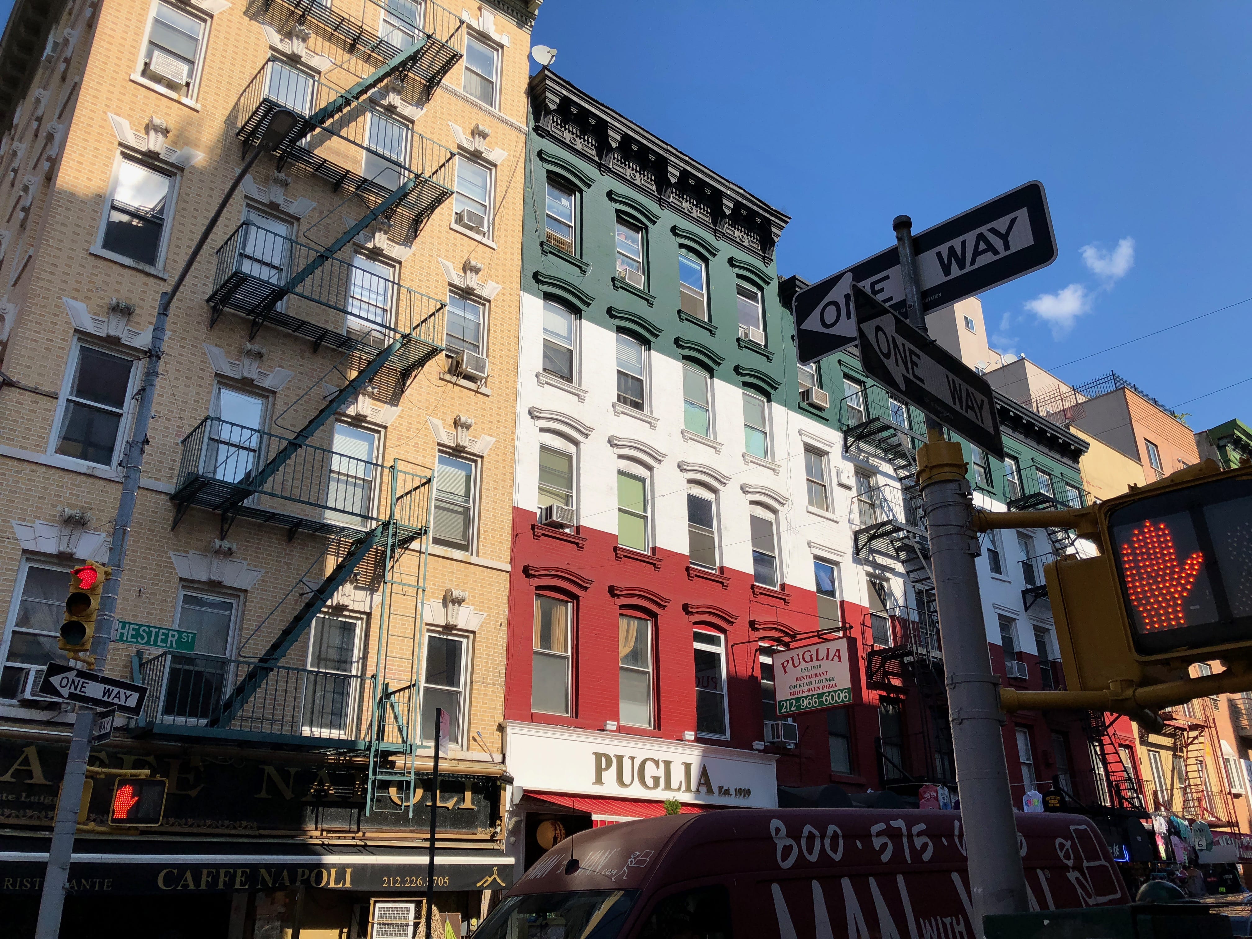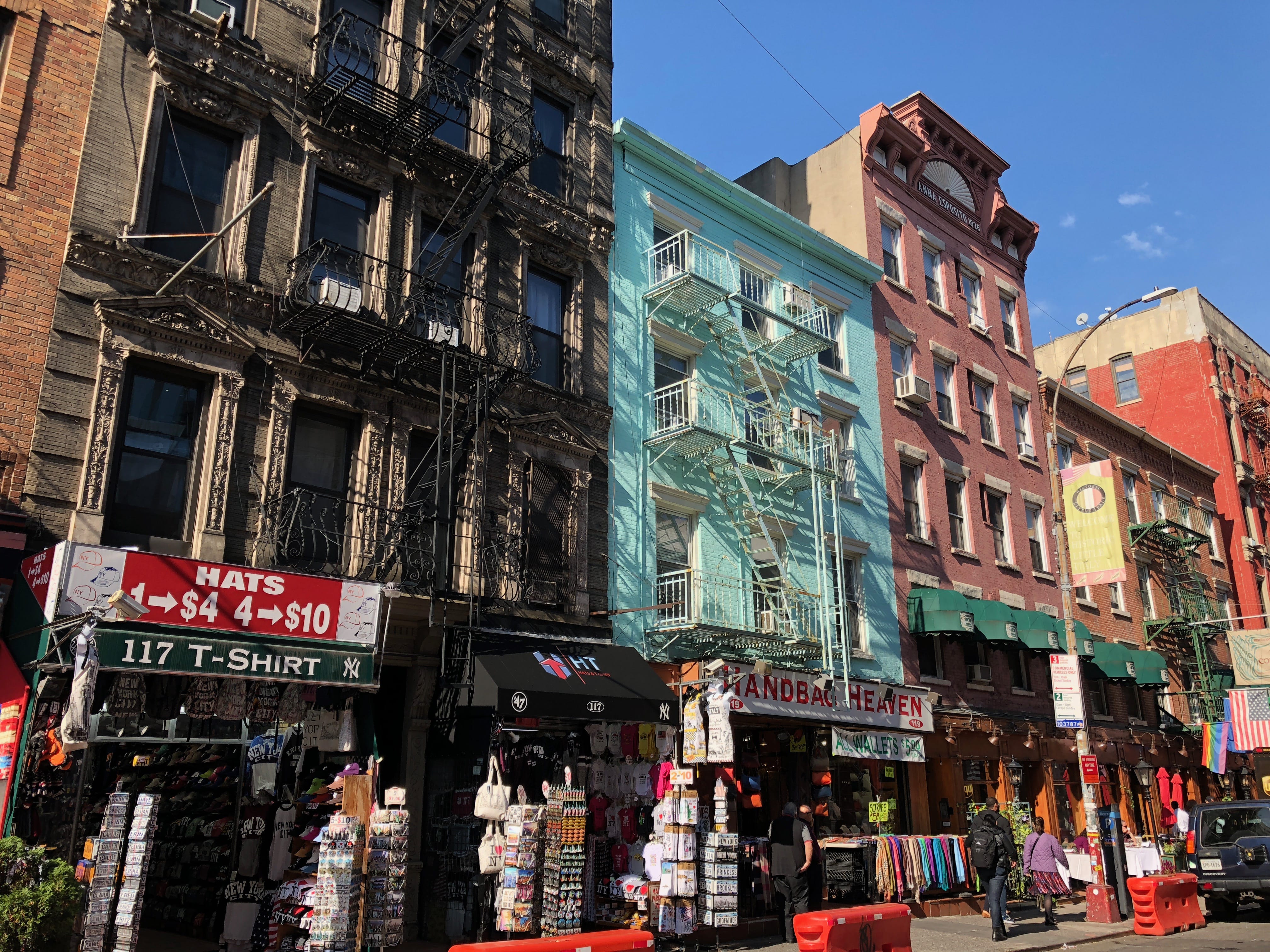 Little Italy, rien de plus simple ici, il s’agit avant tout de la communauté italienne ayant élu domicile à New-York qui s’est regroupée au sein d’un même quartier, à l’identité forte. Le plus marquant est probablement le fait qu’en quelques pas, vous êtes propulsés dans des rues totalement italiennes, tant par les devantures de magasins que par les produits vendus. Le quartier tend toutefois par son évolution particulière, à perdre petit à petit du terrain, au profit d’autres quartiers comme Chinatown. L’expansion de l’un, fait fatalement décroître l’autre, l’espace sur l’île de Manhattan étant forcément compté. Il s’est même scindé en plusieurs, avec la naissance de NoLIta (North of Little Italy), ayant perdu son identité forte avec le temps. Mais malgré tout, pour nous Européens, le résultat est bluffant. En quelques heures dans le quartier, vous pourriez presque en oublier que vous êtes à NYC. C’est le quartier idéal pour y déguster un sandwich aux spécialités italiennes, peut-être plus que pour y manger un plat en terrasse, au risque de se faire assaisonner sévèrement sur l’addition, et de ne pas forcément y retrouver son compte dans l’assiette.