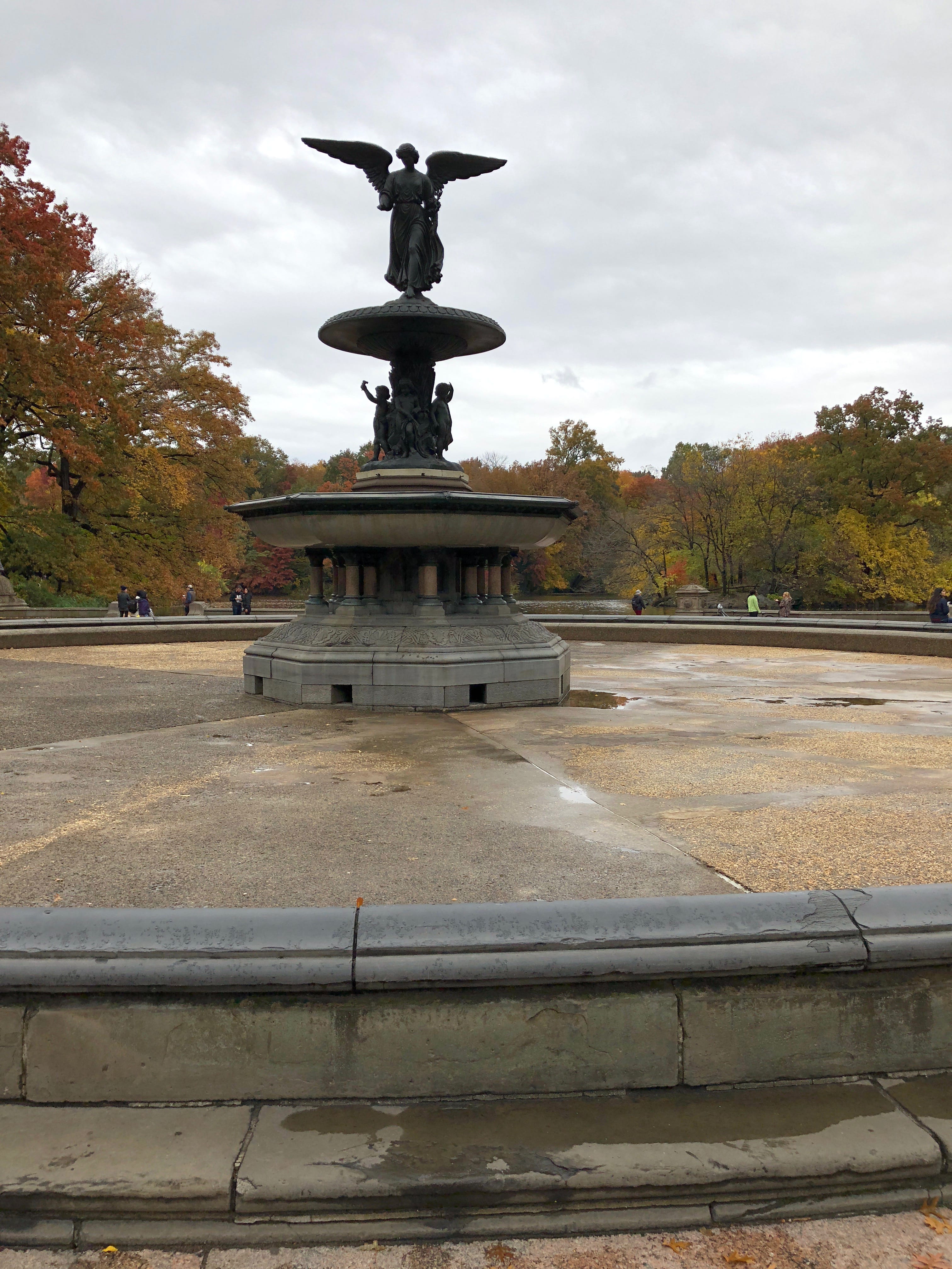 Nous souhaitions refaire un crochet par Central Park en ce dernier jour. Nous avons enfin pu prendre un cliché de la Bethesda Fountain, peu fréquentée et sans travaux pour une fois mais également sans eau malheureusement. Nous avions choisi de nous diriger vers Strawberry Fields et le mémorial à John Lennon. L’homme jouant à la guitare le grand classique « Imagine », n’y est probablement pas pour rien, mais un certain apaisement flottait dans l’air lors de notre passage.