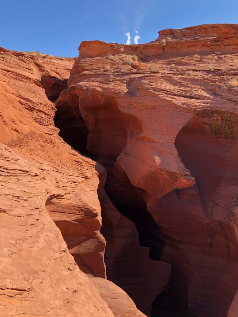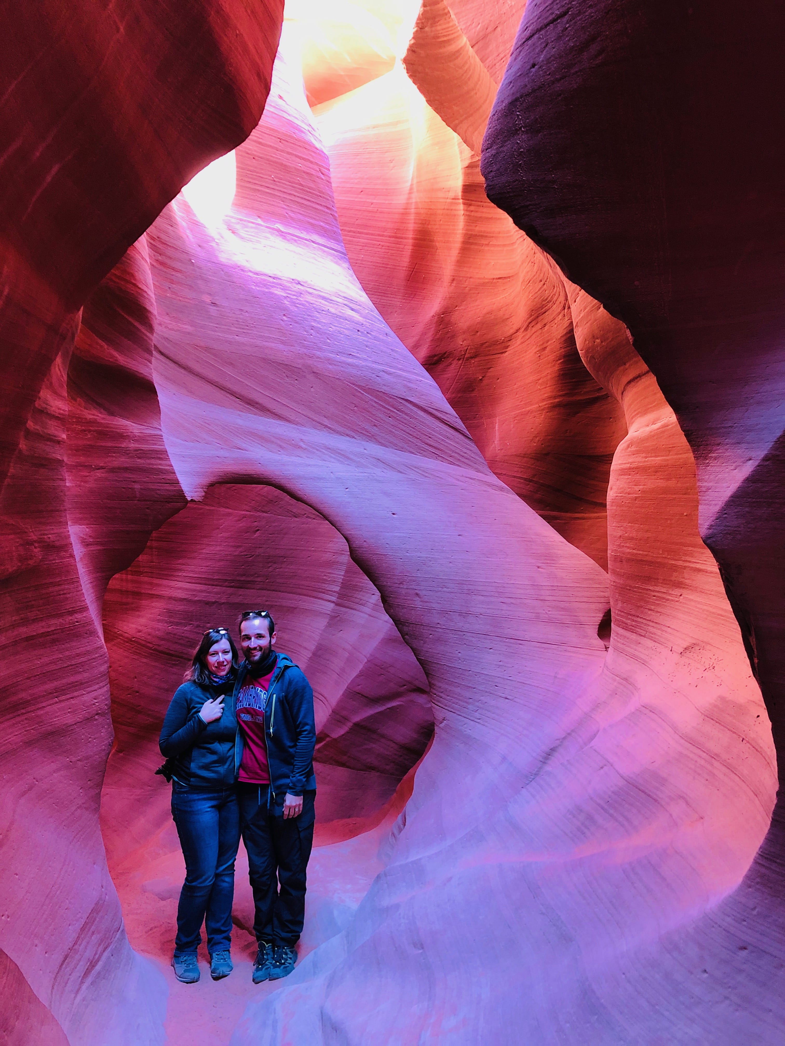 Lower Antelope Canyon offre un spectacle assez impressionnant quand même, et plutôt différent des grands panoramas que l’on a pu voir jusque là. Si la visite est intéressante, c’est surtout grâce à la présence du guide, qui apporte ces explications et cette spiritualité qui est à la fois au centre du lieu mais aussi profondément ancrée dans la culture Navajo. Il vous aidera ainsi à repérer les différents rochers caractéristiques que sont par exemple le loup ou l’hippocampe, juste avant de ressortir de la faille. Vous serez probablement assez surpris de voir à quel point la faille peut sembler large à certains endroits alors qu’en fait, au début de la visite, vous serez passés juste à côté sans même l’apercevoir si vous n’êtes pas bien observateurs. C’est assurément l’un des immanquables du roadtrip.