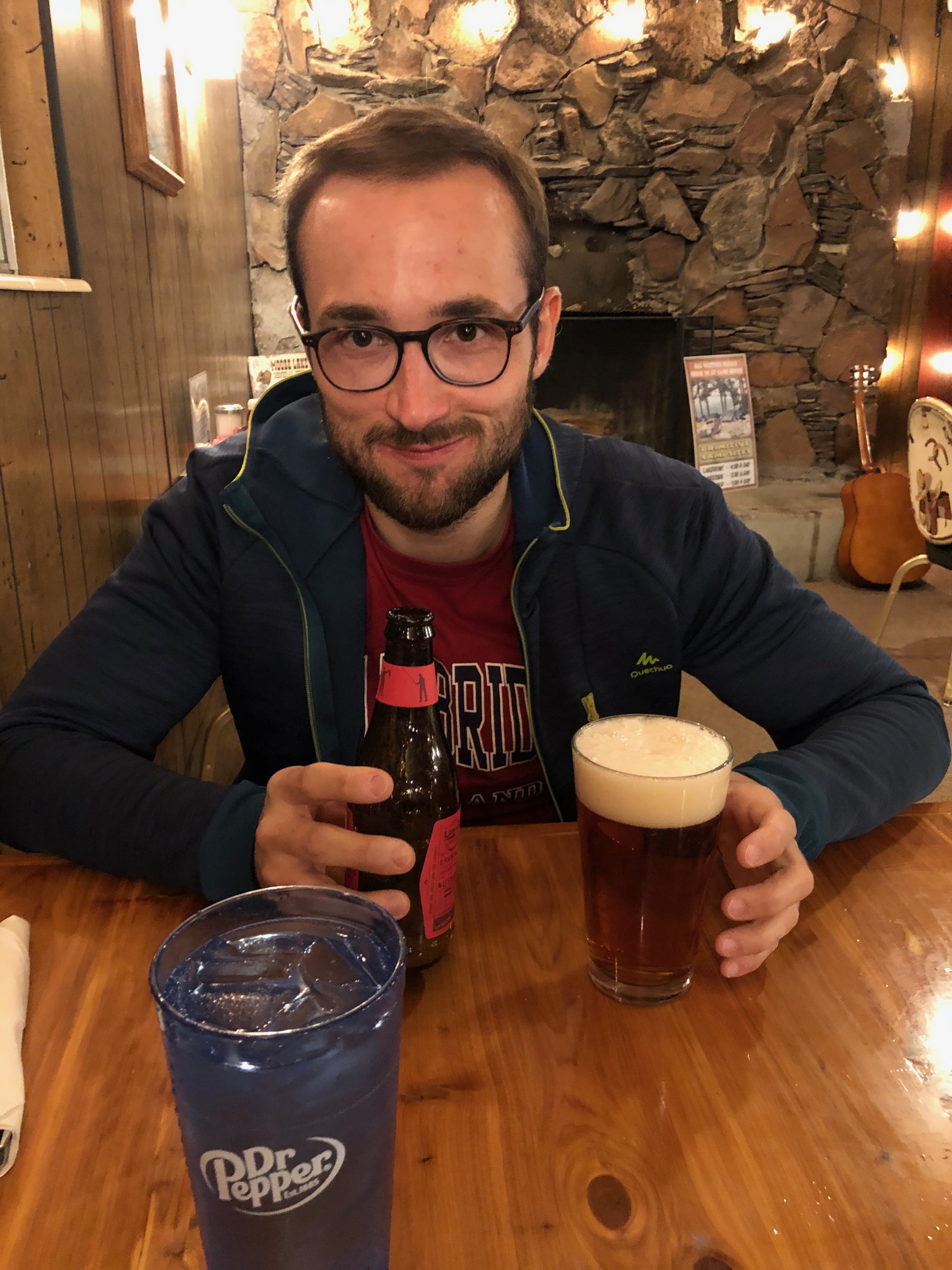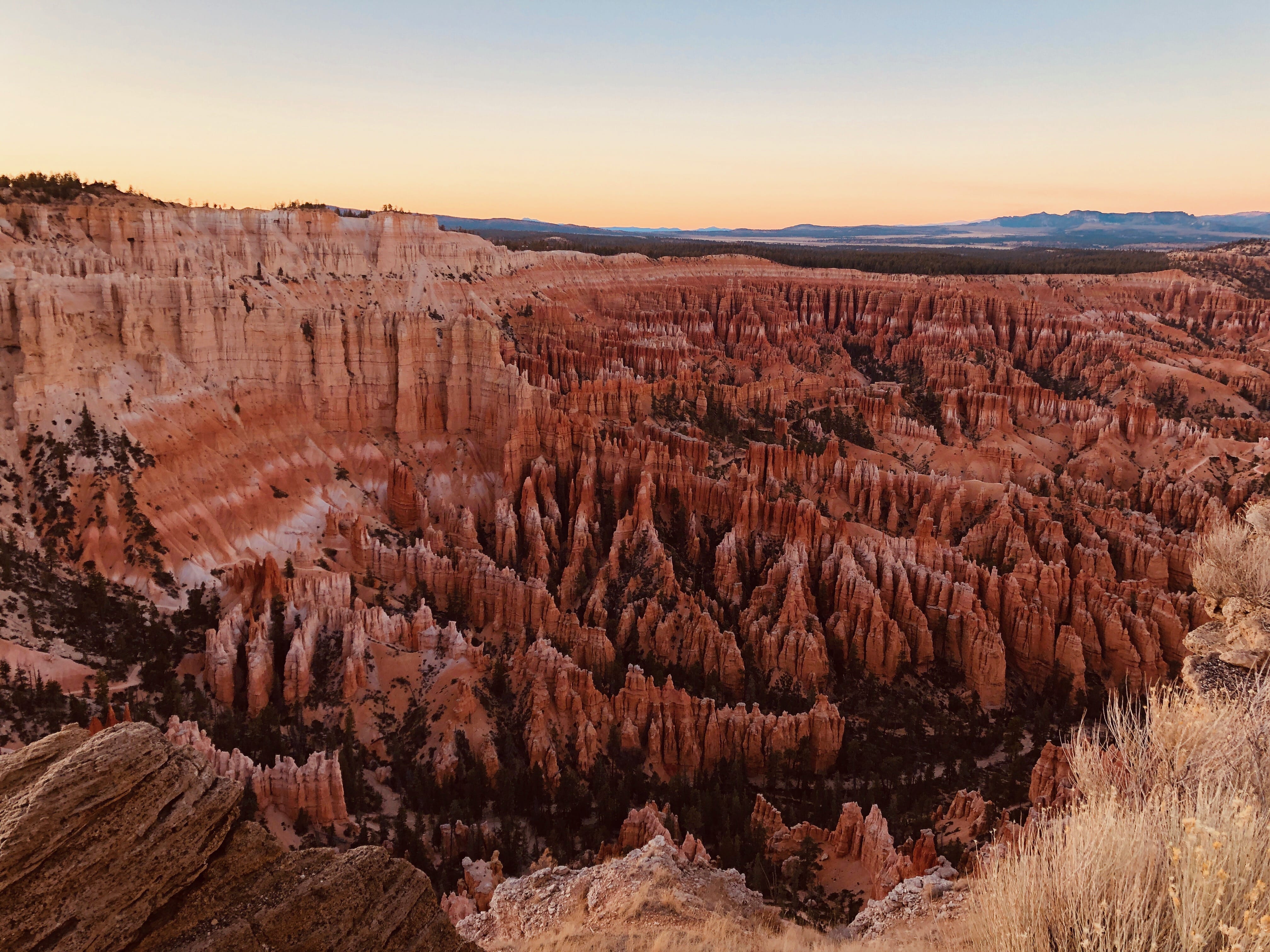 Dernière étape de cette immense journée de visite en termes de contenu, Bryce Canyon. La route est très variée jusqu’au parc et rompt plutôt bien avec la routine des grands axes autour du Grand Canyon, ce qui n’est pas pour nous déplaire. Nous arriverons au coucher du soleil dans le parc, et n’aurons donc pour seul spectacle le rouge profond des rochers dans l’obscurité grandissante. Nous nous y attendions puisque nous croisions les différents visiteurs venus voir le coucher du soleil rejoindre leur véhicules mais étant donné que nous avions fait la route jusqu’au parc, autant profiter quand même de la tranquillité gagnant ce lieu superbe. Nous repartirons vers l’hôtel afin de déposer nos affaires, agréablement surpris par le confort, la chaleur et l’accueil de ce Quality Inn en bord de route non loin de Bryce et Panguitch. Fréquenté plus par les travailleurs locaux et travailleurs sur la route que par les touristes, il n’en demeure pas moins l’un de nos meilleurs hébergements de ce voyage. C’est d’ailleurs à Panguitch que nous nous offrirons un bon repas dans un charmant diner : Big Fish Family. Ambiance, convivialité et authenticité achèveront cette superbe journée de roadtrip, dont nous en redemandons encore. Mais après une bonne nuit de sommeil au chaud, parce que la température commençait à bien retomber les nuits.