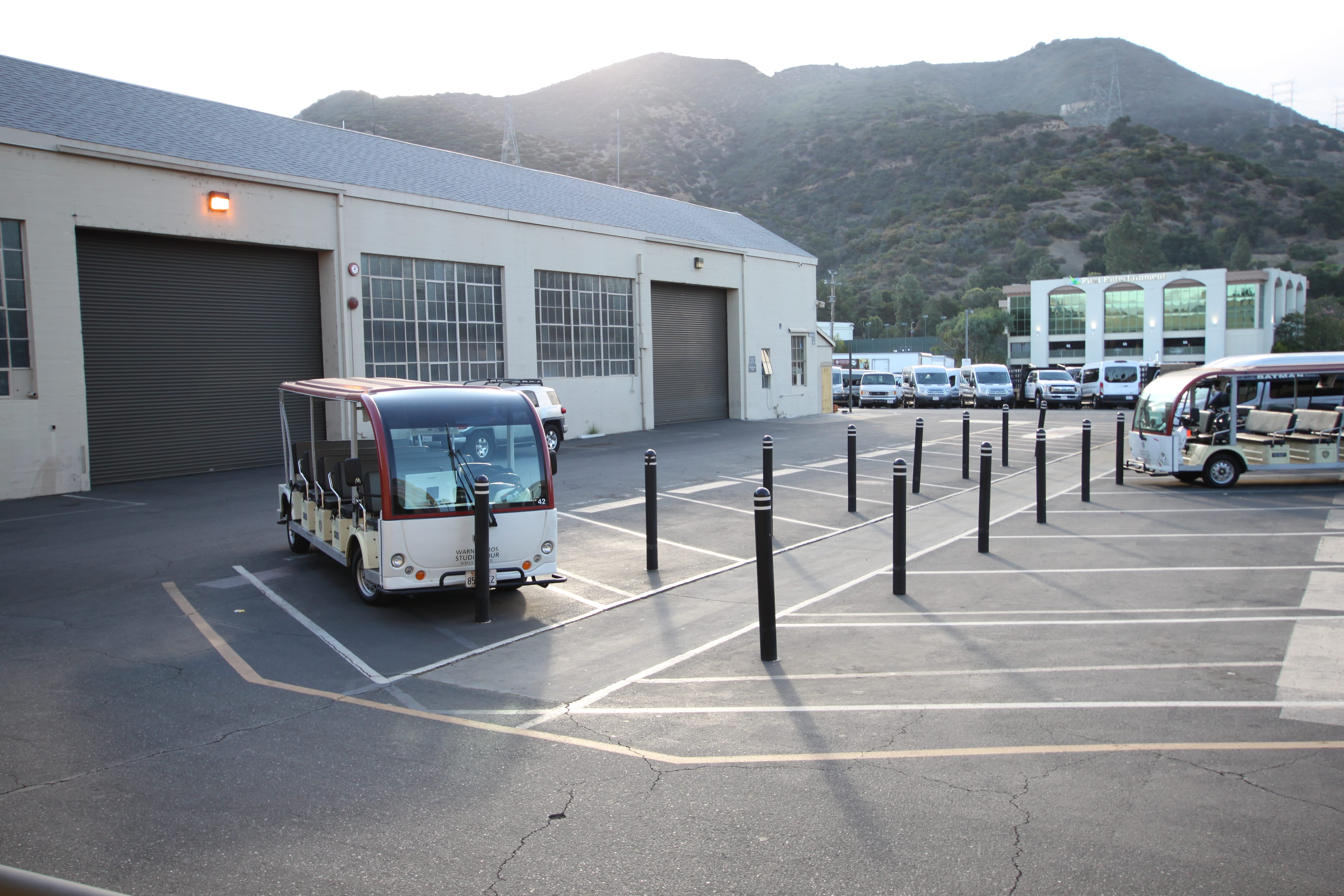 Après un peu d’attente, les groupes sont constitués et nous prenons le départ dans une petite voiturette accompagnés de notre guide américaine. Des visites sont proposées dans d’autres langues, et notamment le français, mais nos contraintes horaires ne nous le permettaient pas. La guide essaye de nous faire parler un peu, et nous animer, pour la visite à venir. Passage devant la fameuse fontaine du générique de Friends : la visite est lancée ! Nous commençons par les hangars où sont stockés tous les panneaux de décors, puis par ceux, immenses, où se trouvent tous les objets et accessoires, que les décorateurs des séries et films peuvent venir choisir et louer. Il y a de tout, de toutes les époques, de toutes les formes, de toutes les tailles, pour permettre d’avoir ce petit truc en plus, ce détail qui rend une histoire plus authentique. Petite subtilité non négligeable, ces objets sont la propriété des studios et sont donc loués par les différentes productions, le temps des tournages. On comprend ainsi mieux pourquoi certaines séries peuvent paraître plus modeste que d’autres, jusqu’aux accessoires mis en avant.