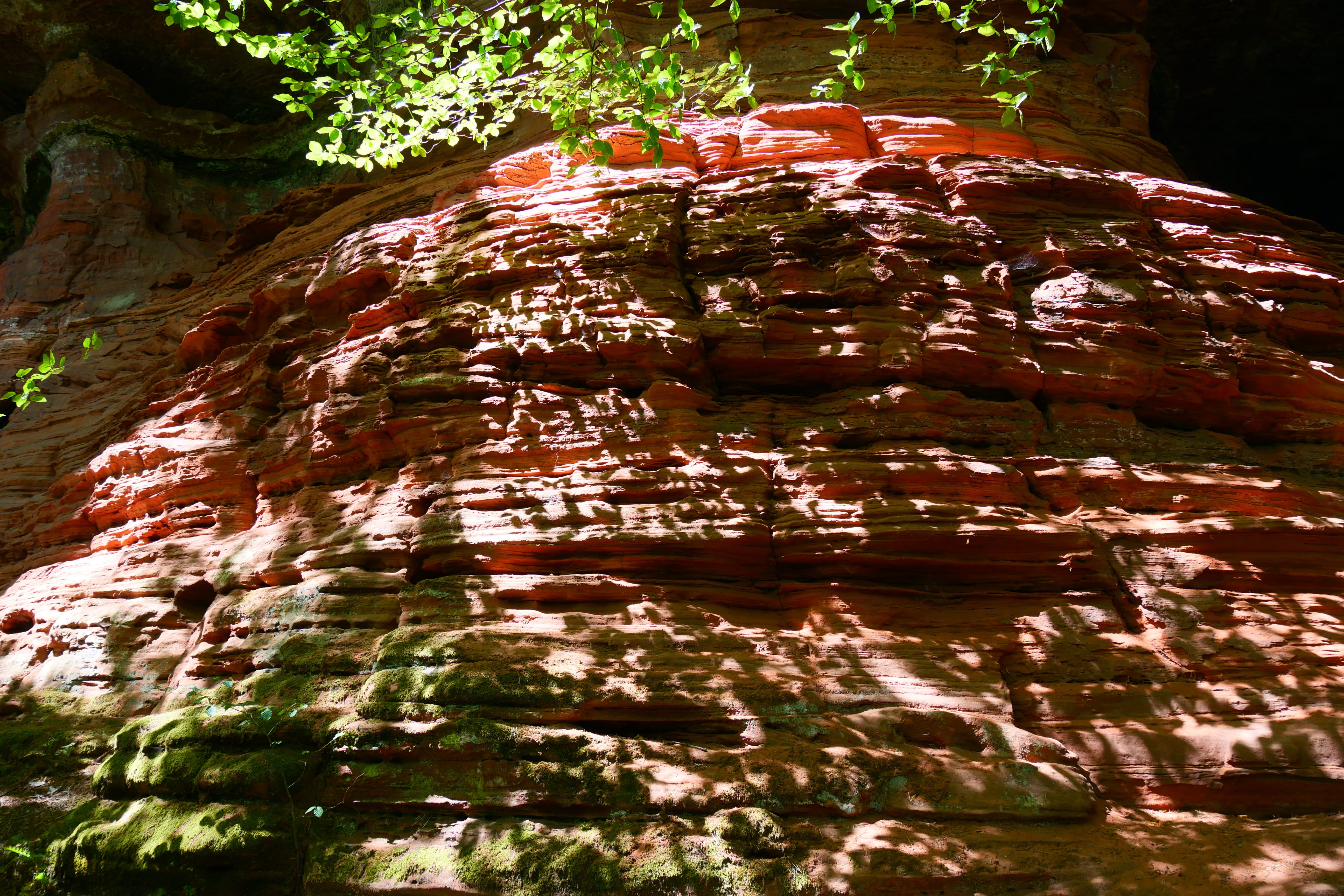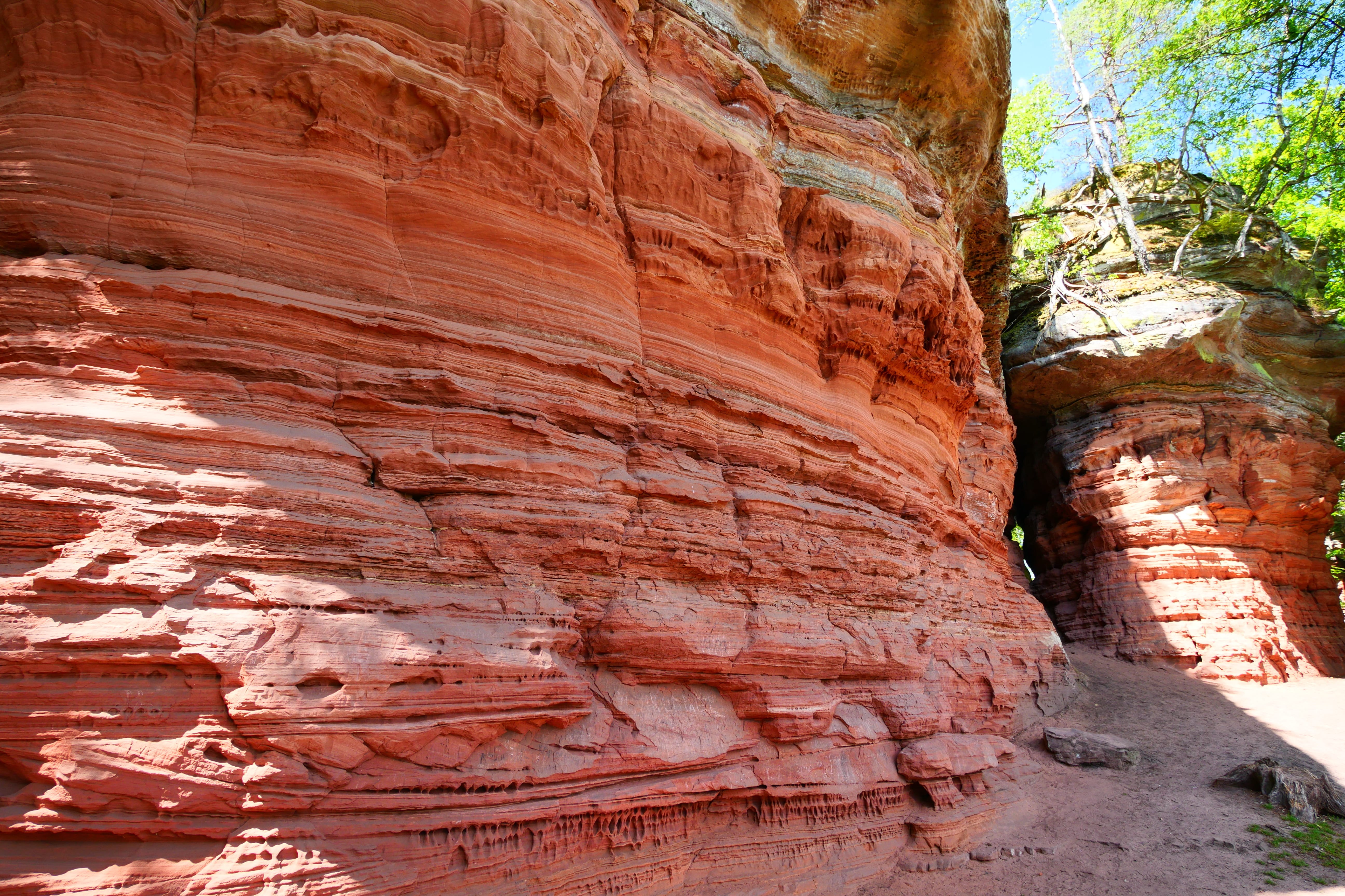 Après environ 2 km, vous comprendrez d’où le site tient son surnom… De majestueux rochers finissent par se dresser devant vous dans des teintes rouges-orangées non sans rappeler les paysages du Far West et du Grand Canyon. La randonnée se poursuit le long de cette roche impressionnante de par sa hauteur et son état. On remarquera les différentes strates qui la composent ainsi que l’effet de l’érosion et du temps qui ont sculpté sa surface. Nous regretterons cependant que certains se croyant tout permis aient laissé une trace de leur passage, gravée dans la roche, à certains endroits. Cela dégrade ce que la nature a mis tant de temps à créer, et va vraiment à l’encontre de ce que l’on a envie de voir dans des lieux aussi préservés que celui-ci.