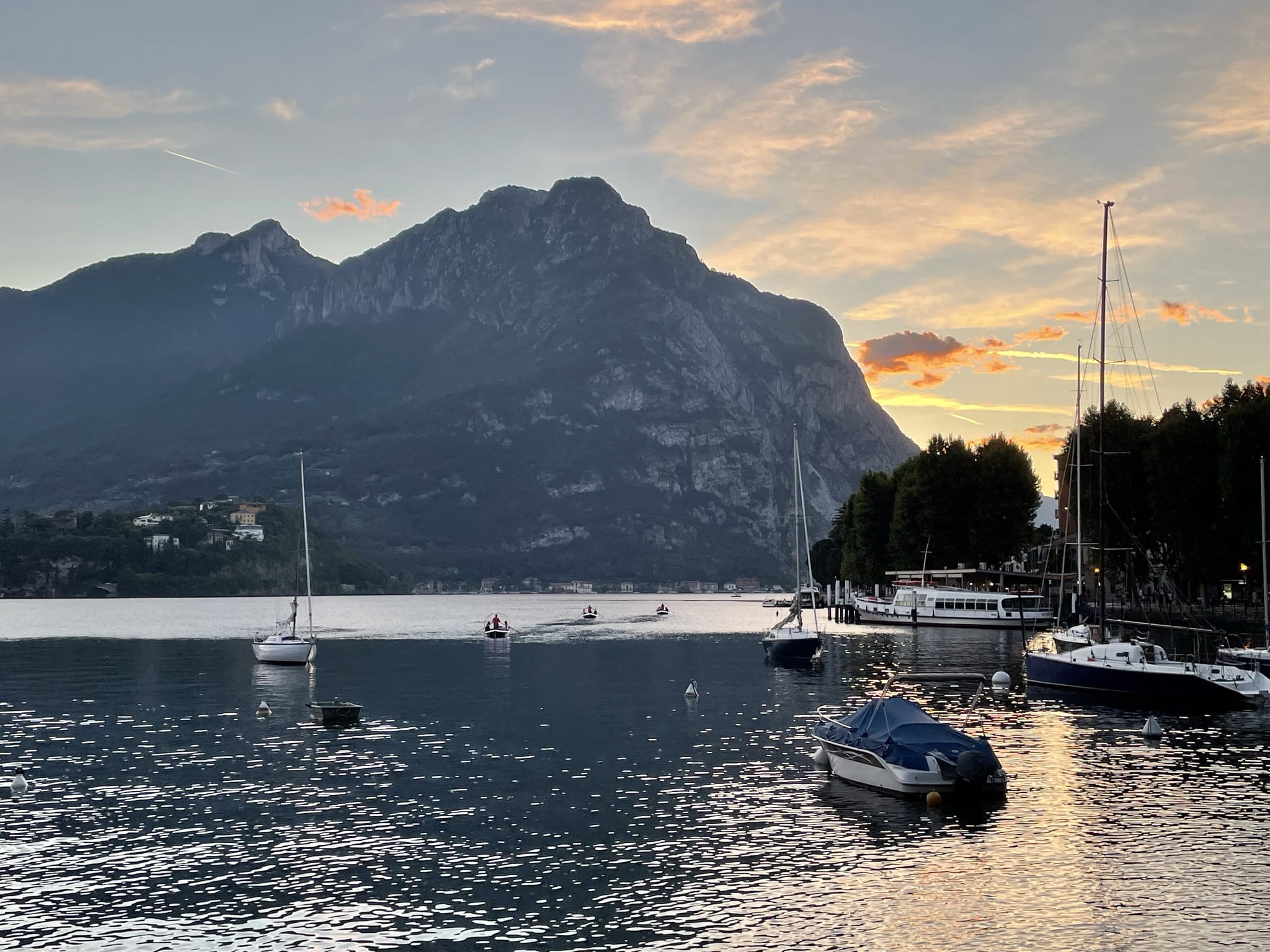 Ce soir là, nous avons parcouru Lecco, dans l’optique de s’en faire un avis, sans trop se fixer d’objectifs. Notre première impression est qu’il s’agit d’un point de chute au bord du lac, certes moins connu et peut-être un peu moins riche en patrimoine que Côme, mais certainement plus authentique et serein. Nous avons ainsi pu nous poser sur un banc face au lac pour profiter du crépuscule, arpenter des ruelles tranquilles, prendre un verre en terrasse sans se retrouver les uns sur les autres, ce qui n’aurait pas forcément été aussi simple que cela à Côme. Lecco semble donc une bonne alternative pour qui souhaite s’arrêter à cet endroit et pouvoir profiter d’un peu de calme et de sérénité bienvenus après une longue journée de route.