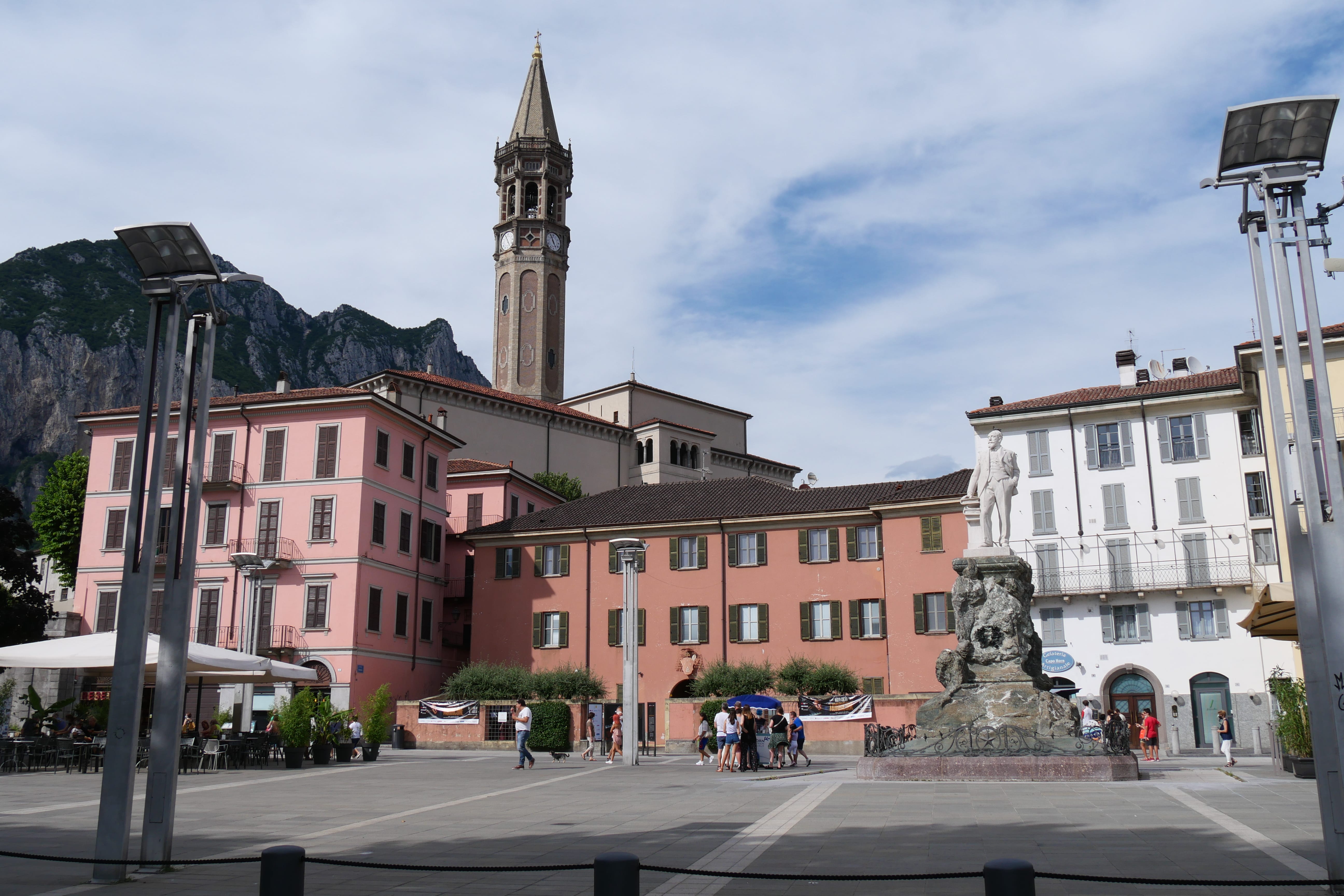 En ce qui concerne notre petit tour d’horizon de la ville, nous avons pu voir le parvis de la Basilique San Niccolo’, côtoyée par le campanile. Une messe allant commencer au moment où nous y sommes arrivés, nous n’en avons pas franchi les portes, mais l’extérieur méritait le détour. Nous avons ensuite arpenté les ruelles, traversé une galerie couverte, flânant devant les vitrines, toujours amateurs de beaux objets ou de choses différentes de ce que l’on peut connaître dans notre région. Avec quelques minutes de recherches nous trouverons un petit restaurant typique, un peu excentré, à l’abri de l’afflux touristique, à la recherche de l’authentique. N’hésitez pas, il s’agissait de la Stufata Trattoria, où l’accueil et les bons produits ont su nous faire rentrer encore un peu plus dans ces vacances qui ne faisaient alors que commencer. Pour un dernier dessert, à déguster avec vue sur le lac bien évidemment, nous conseillerons le glacier Toldo, l’un parmi d’autres évidemment, mais la glace y était très bonne, alors on vous le recommande.