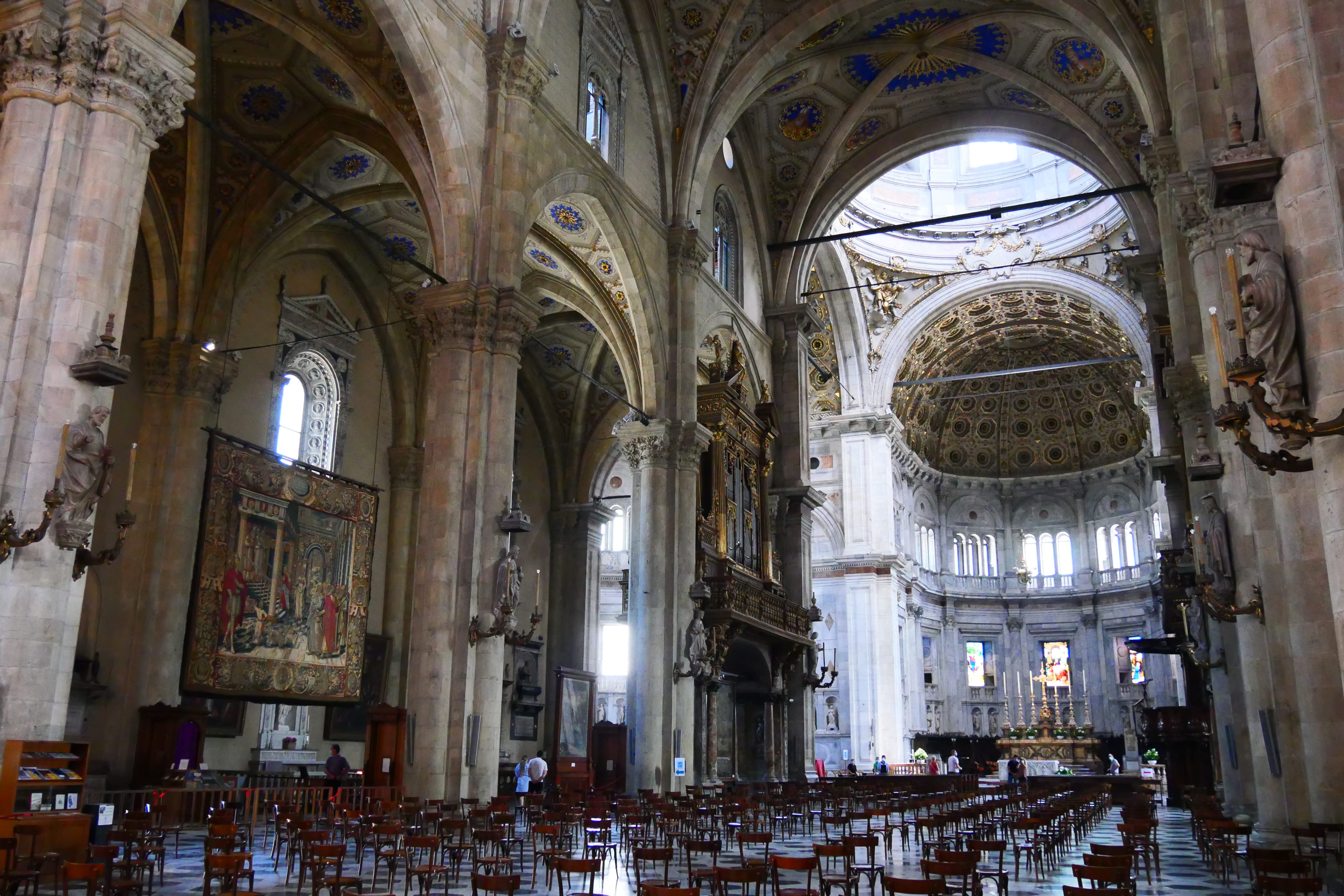 Côme, la ville la plus connue de la région, l’une des plus riches en patrimoine probablement, est une ville où l’on apprécie s’arrêter en ce qui nous concerne. Notre heure d’arrivée étant en pleine sieste des locaux, nous serons plutôt tranquilles pour s’y garer et l’arpenter. Il faut quand même signaler que l’agitation restera, même un peu plus tard dans la journée, incomparable à celle que nous avions pu connaître hors contexte Covid. Nous ne visiterons rien en particulier, mais avons traversé des rues que nous n’avions pas parcourues en 2016. Cela confirme que Côme mériterait probablement qu’on s’y arrête une journée entière afin de vraiment la visiter et la découvrir à sa juste valeur. Nous voulions tout de même vous donner une bonne adresse pour un déjeuner simple mais bon, il s’agit du restaurant Ai portici, offrant une belle vue sur le flanc du Duomo, et proposant des plats typiques à des prix bien plus corrects que toutes les terrasses lui faisant face. Cela vous permettra ainsi de garder un peu de budget pour une glace à déguster en contemplant le lac par exemple. Il était pour nous venue l’heure de reprendre la route, un gros morceau nous attendait encore avant de rejoindre la mer…!
