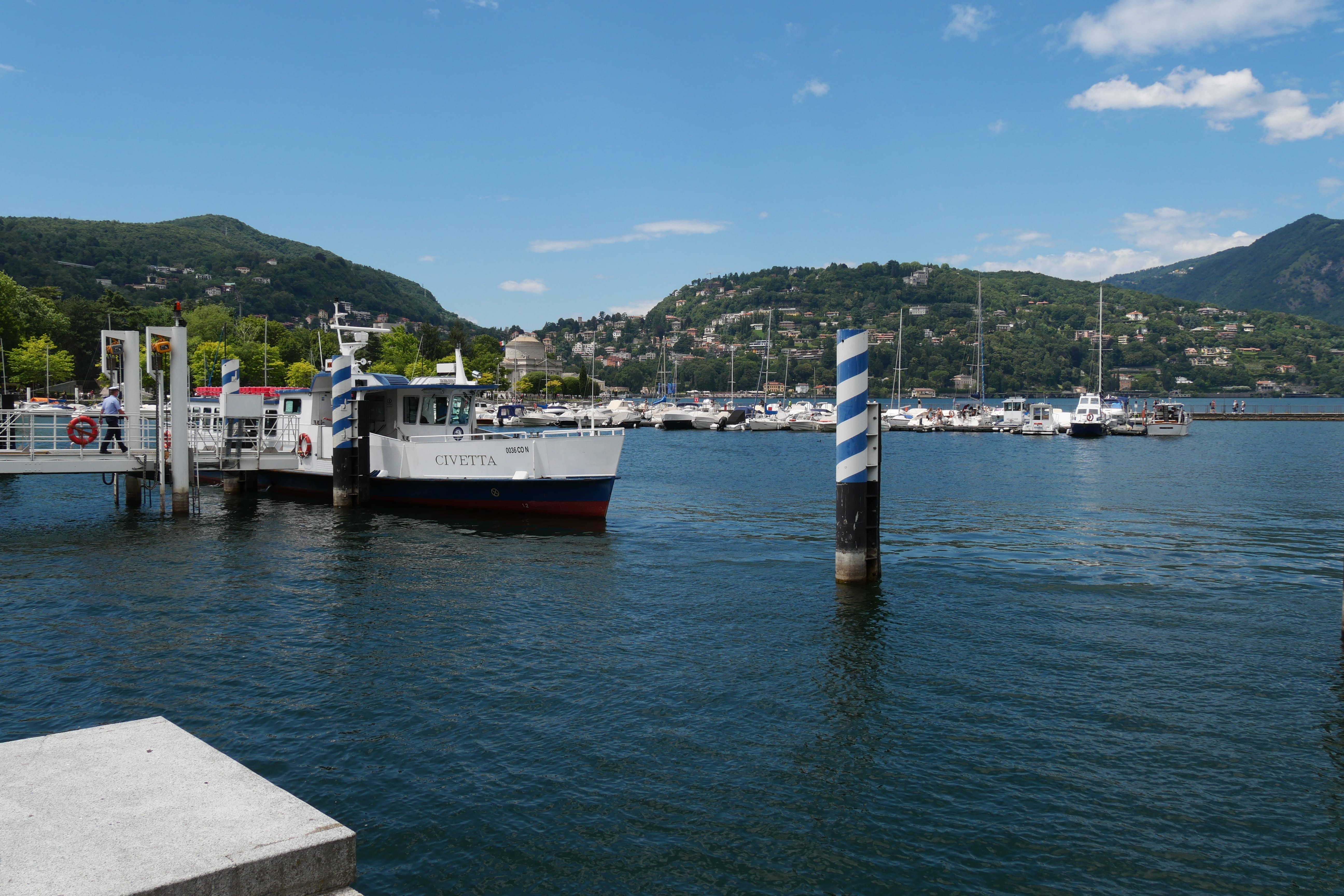Nous arrivons donc une heure plus tard sur une route plus plate mais parcourue de tunnels jusqu’à notre objectif: Lecco, sur les berges du lac de Côme. Nous avions réservé cette nuit après avoir planifié tout le voyage, dans l’optique de couper la route en deux, et ainsi commencer plus tranquillement ces vacances. Notre choix s’est ainsi sur un « petit » hôtel familial, l’Hotel Alberi, où nous avons reçu un très bon accueil et ne pouvons qu’être satisfaits de cette nuit passée. Très bien situé face au lac, il nous aura permis de profiter un maximum des quelques heures que nous avions pour découvrir la ville. Pour l’aspect pratique, il ne dispose pas d’un parking à proprement parler, mais nous avons réussi à trouver une place gratuite sur le côté de l’hôtel. Les possibilités de se garer gratuitement sont assez rares pour être mentionnées.
