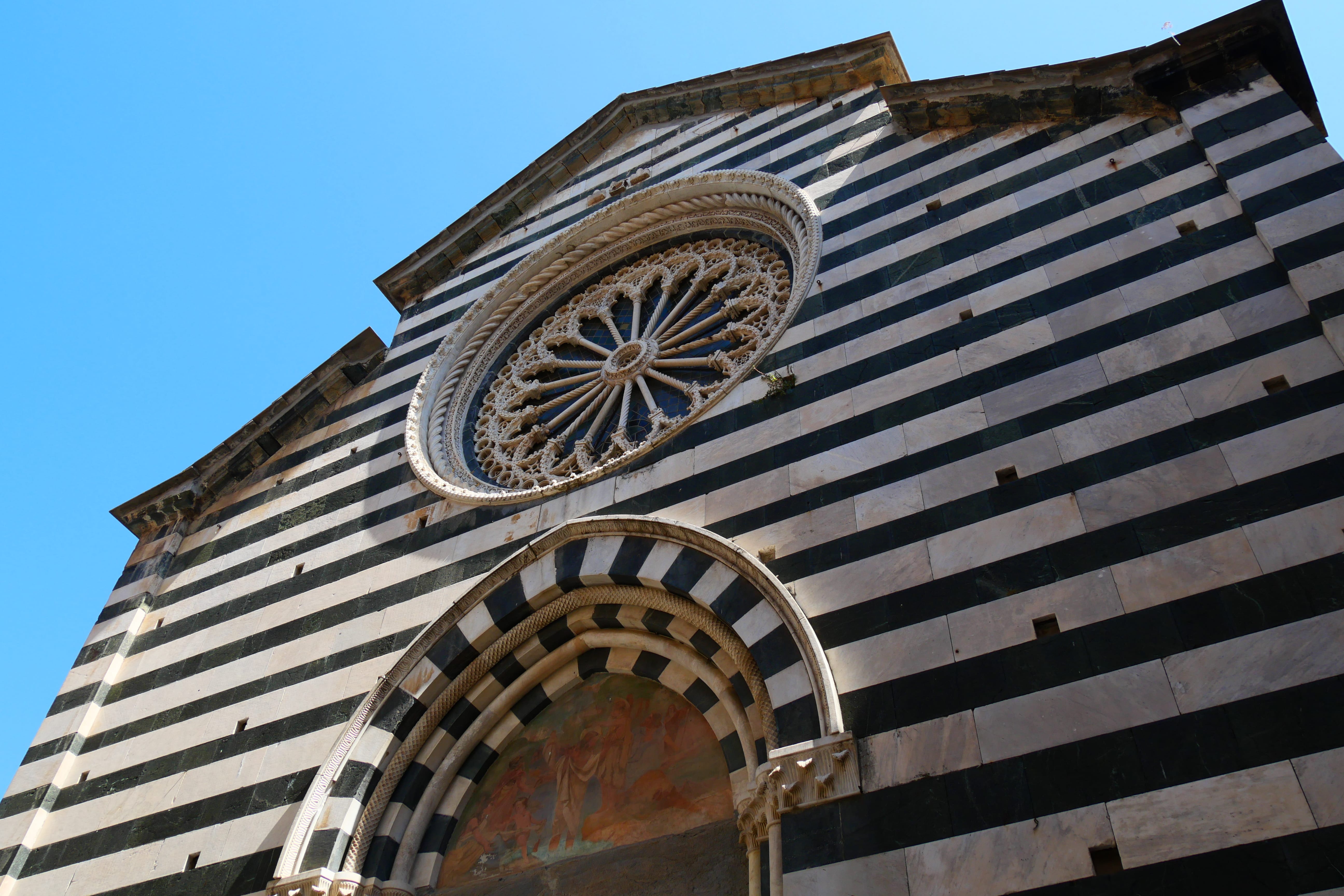 L’option que nous avons finalement retenue, afin d’en voir un maximum sur une seule journée, était de prendre le bateau autant que possible et de compléter par des trajets en train. Il est possible de trouver les horaires des bateaux sur internet, ce qui nous a permis de mieux nous organiser. Nous avions d’abord prévu d’aller au village le plus loin, Monterosso, et de revenir petit à petit vers La Spezia. Puis, en y réfléchissant sur place le jour-même, nous nous sommes dit qu’en faisant cela, le bateau risquait d’être bondé au retour et de plus, nous avions lu que les plus belles plages se trouvaient justement à Monterosso et nous préférions donc finir notre journée par une baignade rafraîchissante.