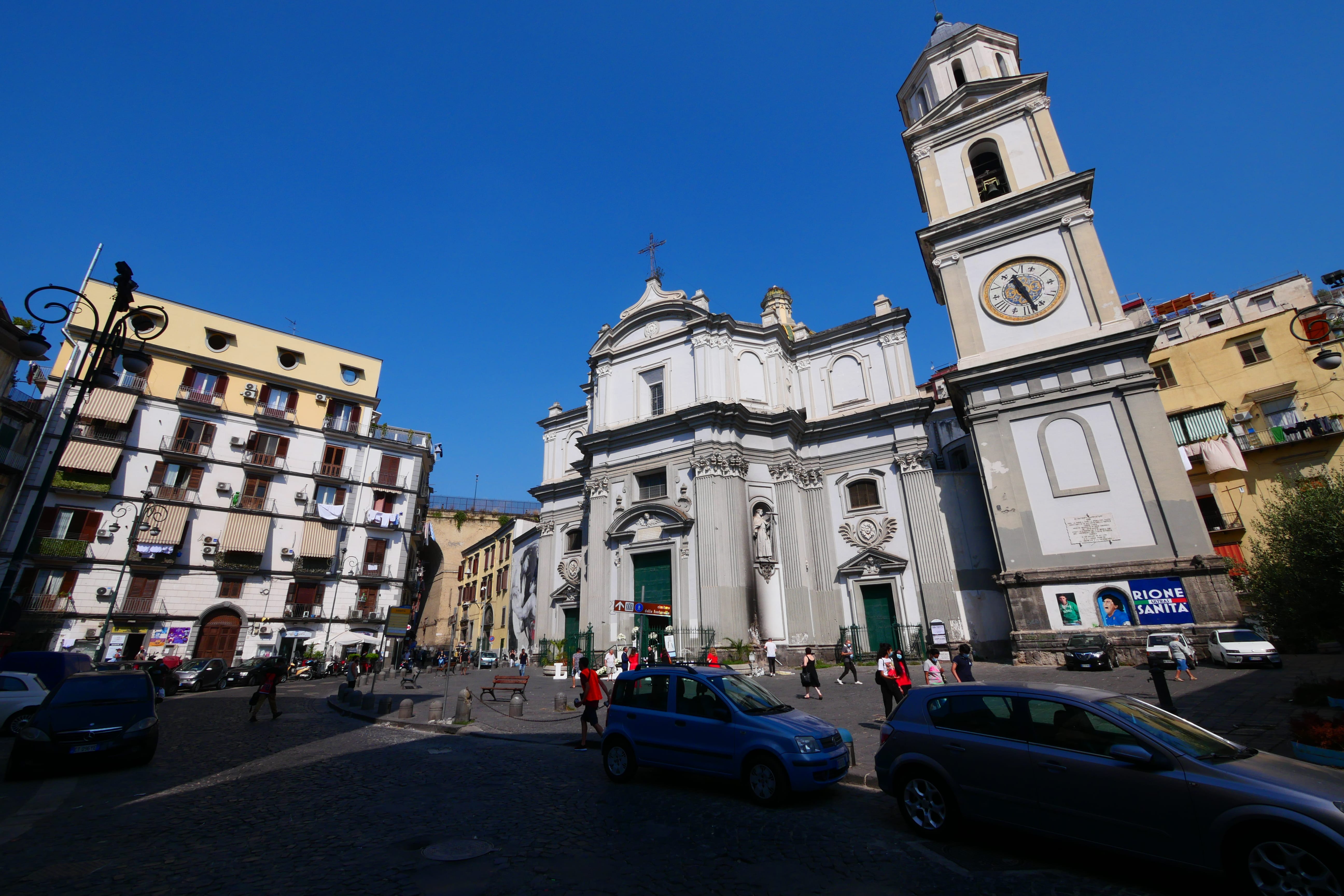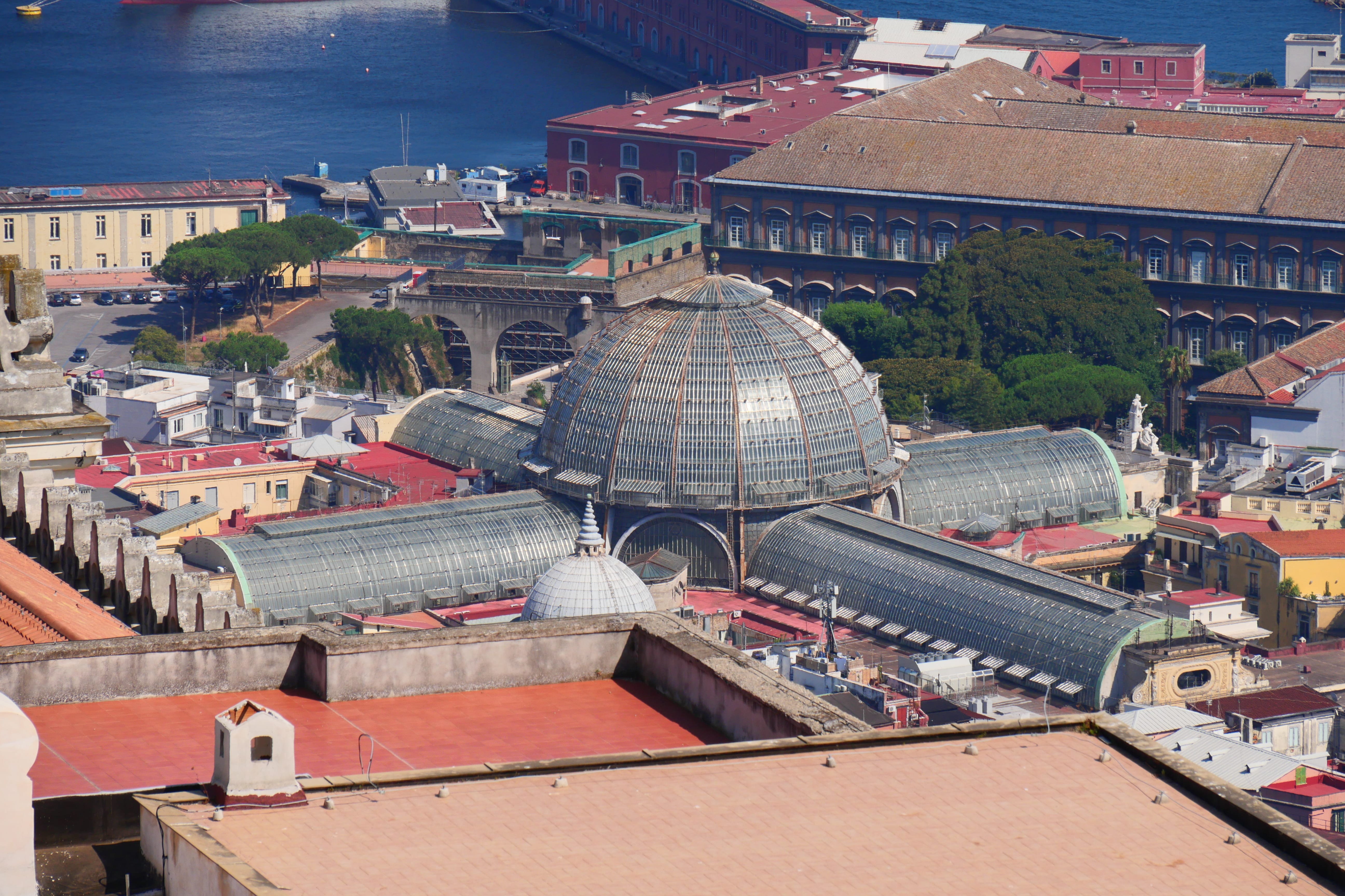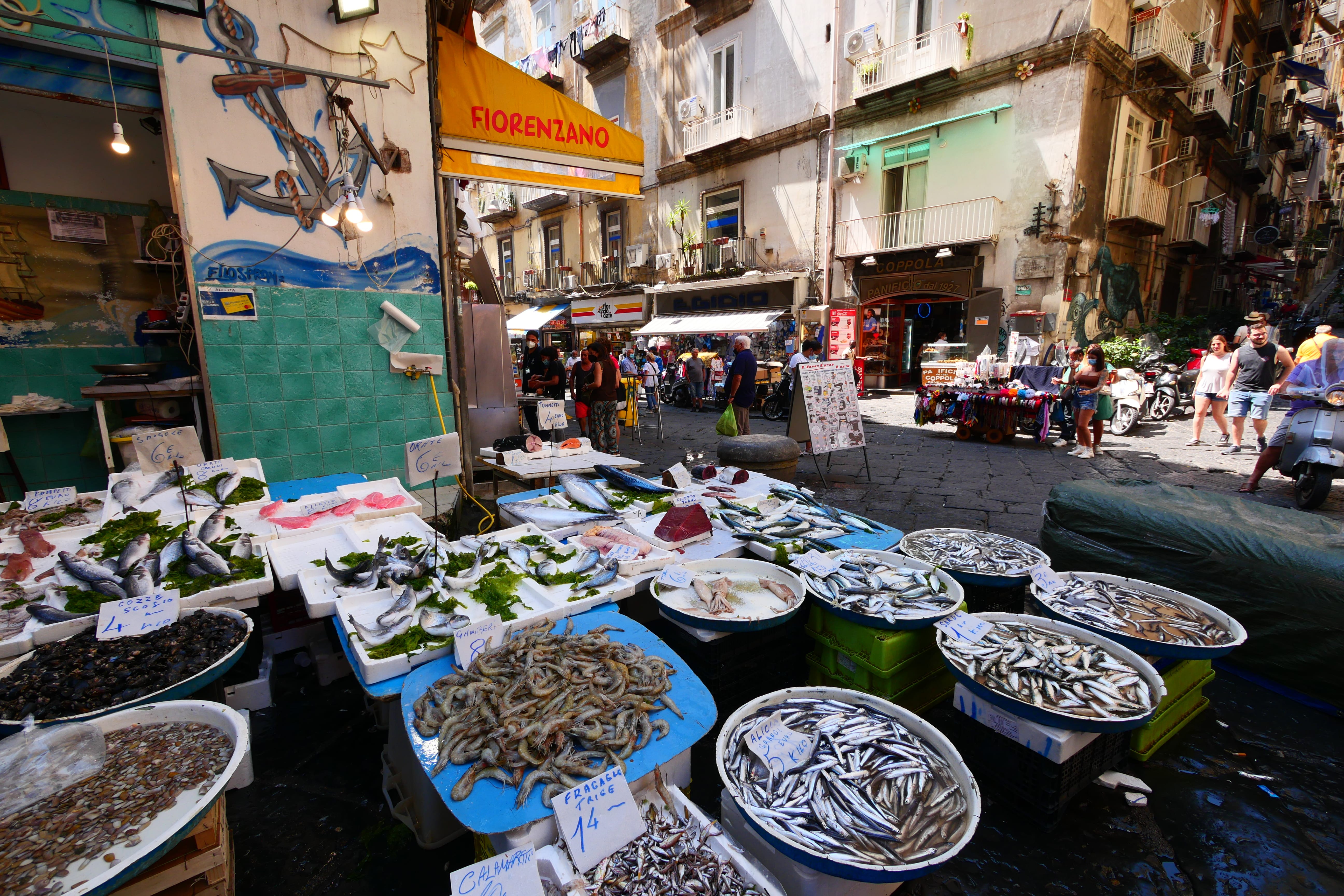 Nous passerons ensuite par le quartier espagnol où se trouvent de nombreux restaurants dans des ruelles très étroites mais aussi des étals de marchés de fruits et légumes, et surtout de poissons, très beaux mais très odorants. Cette balade nous emmènera au centre plus récent où se trouvent la Galleria Umberto I, galerie commerçante surtout célèbre de par son architecture, et également la Piazza del Plebiscito et le palais royal. Nous ne pourrons pas voir ces deux derniers points de près car un périmètre de sécurité y avait malheureusement été tracé pour cause de G20 climat la veille.