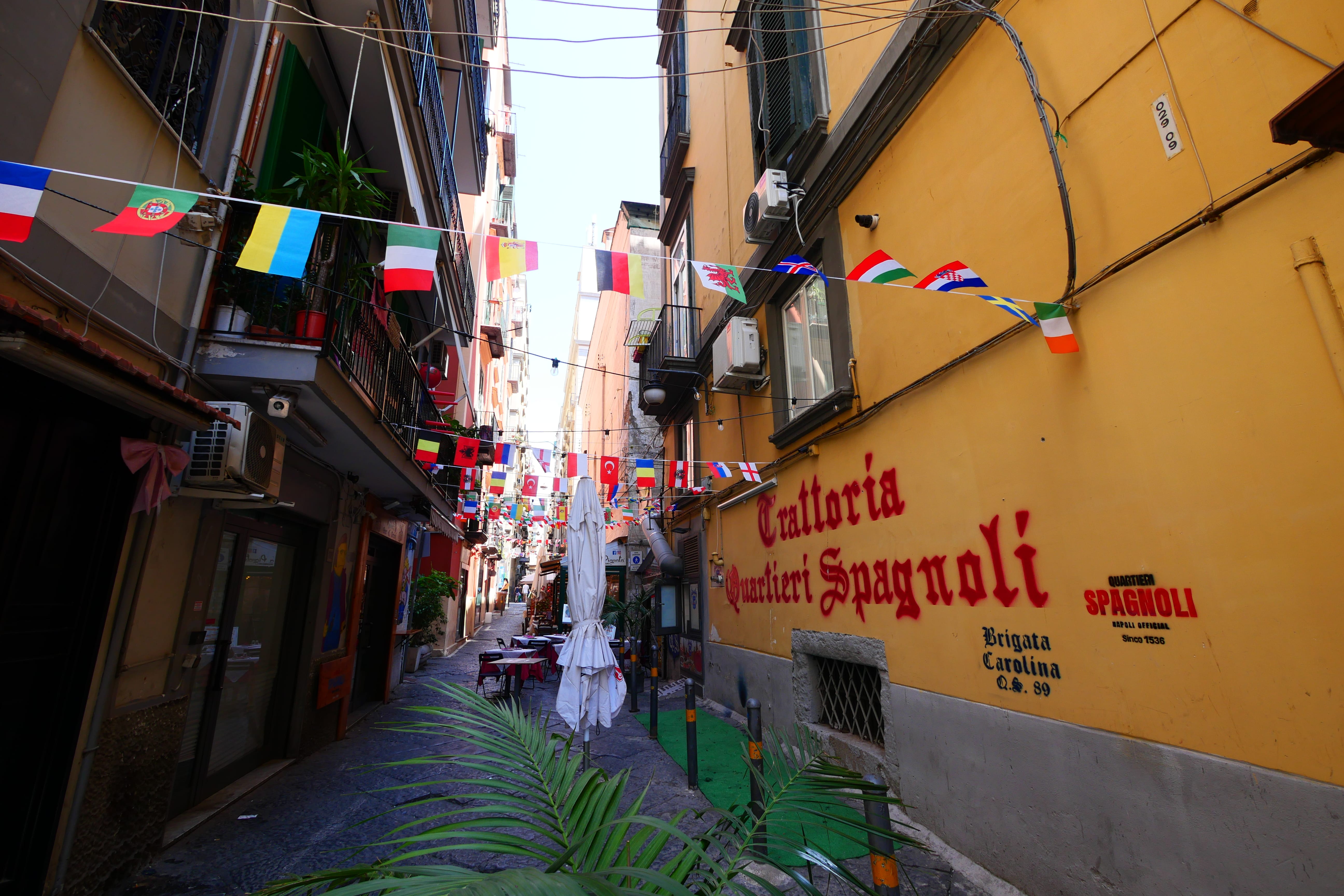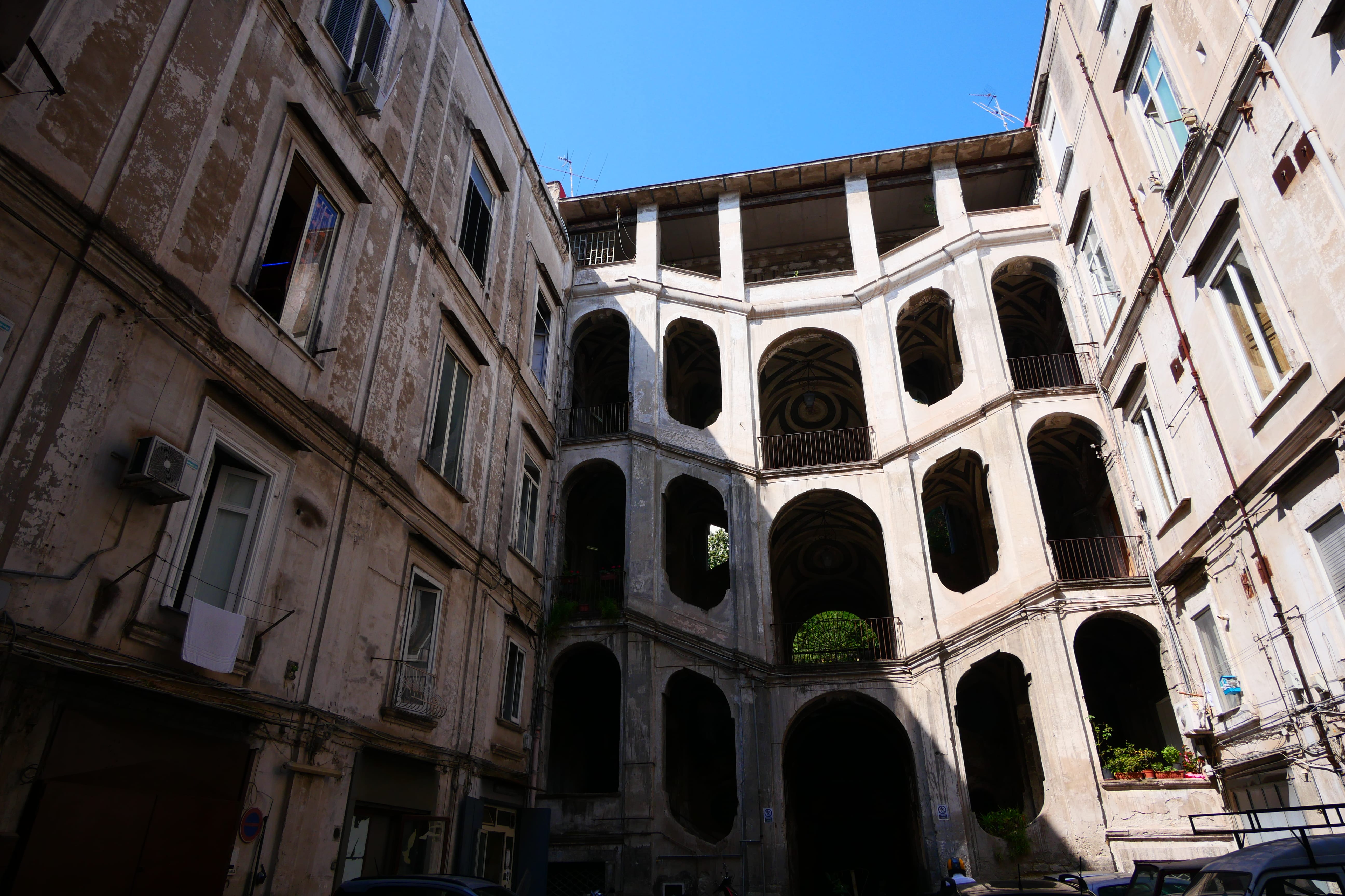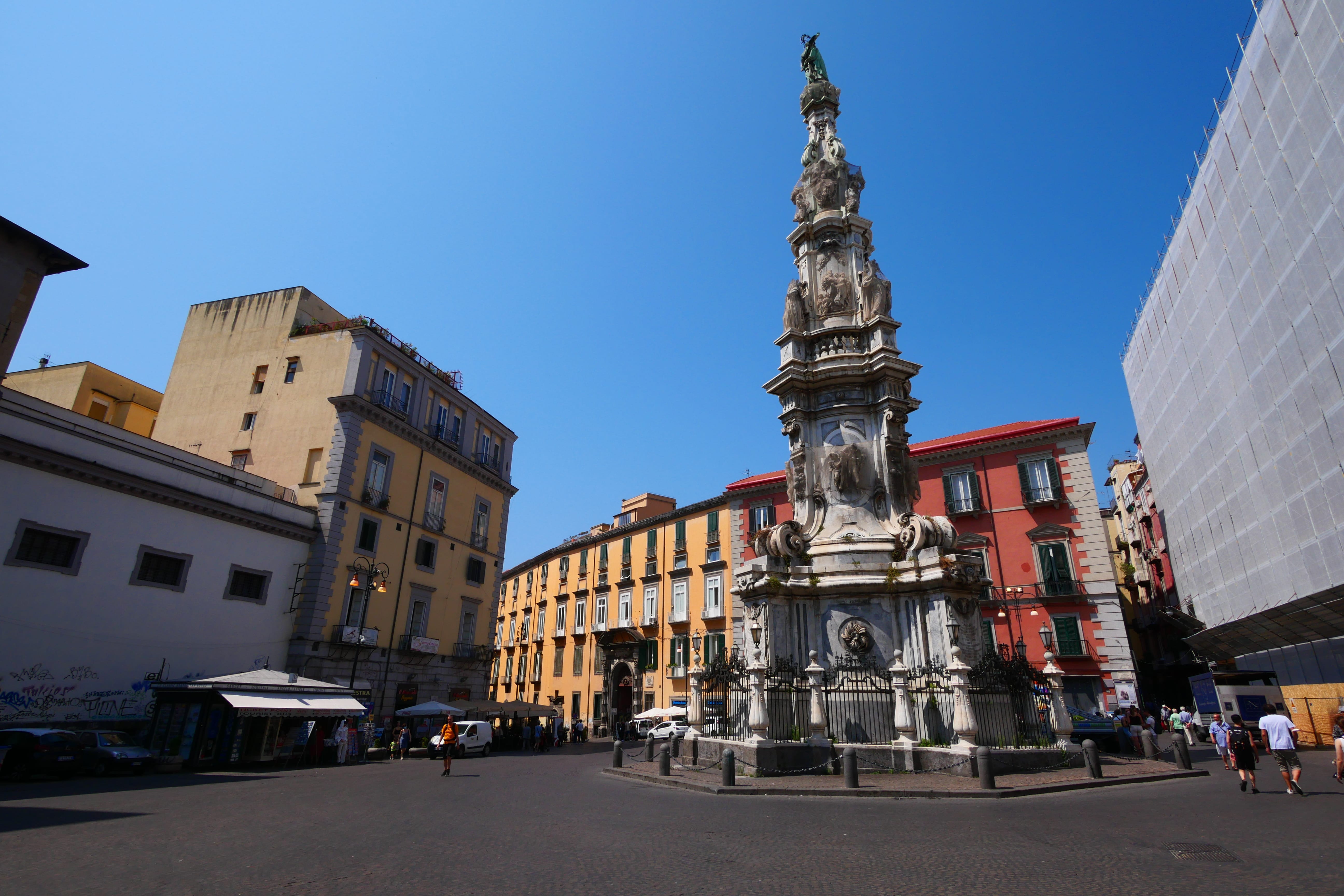 Nous passerons ensuite par le quartier espagnol où se trouvent de nombreux restaurants dans des ruelles très étroites mais aussi des étals de marchés de fruits et légumes, et surtout de poissons, très beaux mais très odorants. Cette balade nous emmènera au centre plus récent où se trouvent la Galleria Umberto I, galerie commerçante surtout célèbre de par son architecture, et également la Piazza del Plebiscito et le palais royal. Nous ne pourrons pas voir ces deux derniers points de près car un périmètre de sécurité y avait malheureusement été tracé pour cause de G20 climat la veille.