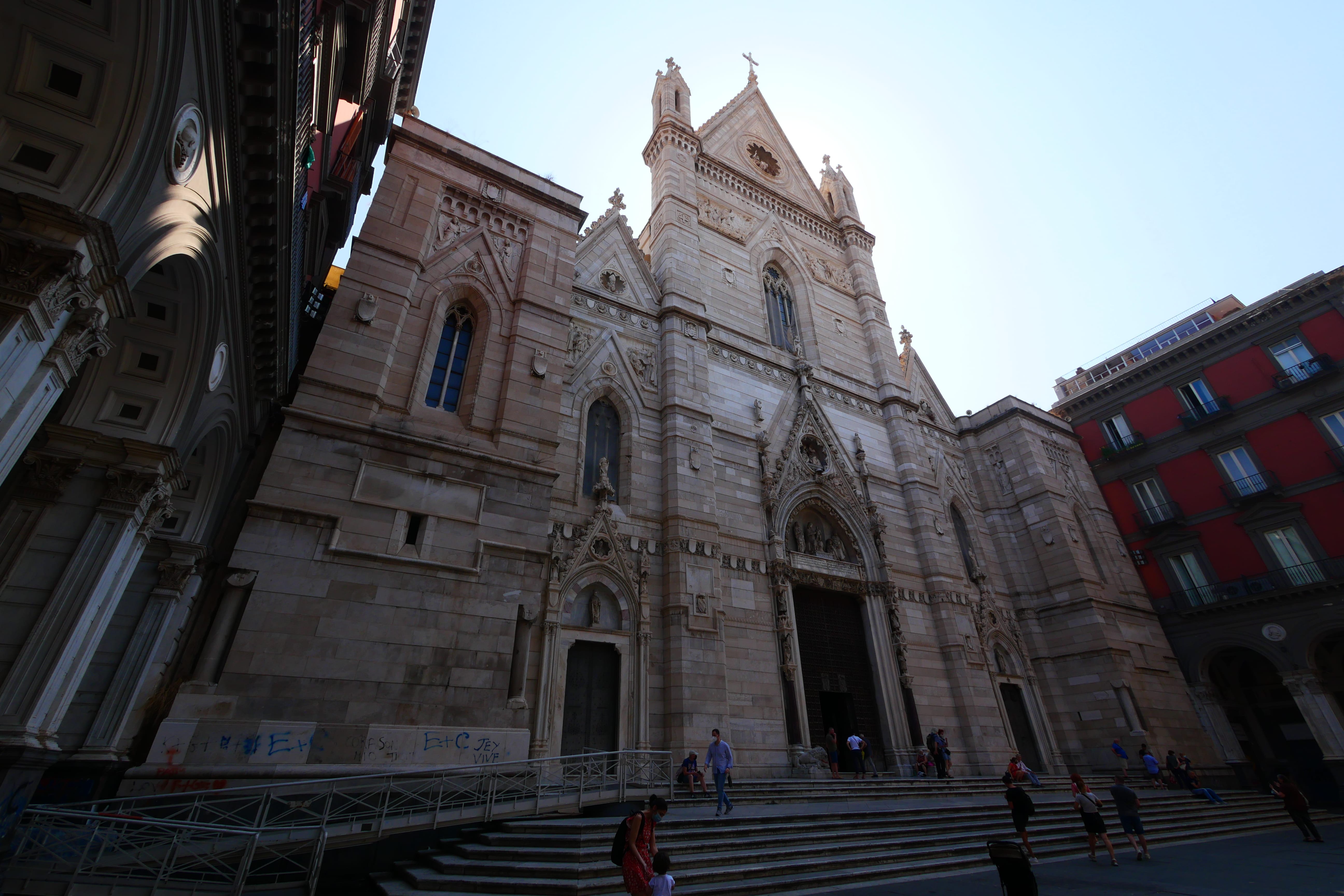 Direction les visites à présent. Pour une fois, nous n’avions pas fait de plans précis et avions décidé de nous laisser porter par nos déambulations. Nous sommes rapidement arrivés dans le centre historique qui est très typique du Sud de l’Italie avec ses rues pavées, ses nombreuses boutiques diverses et variées et de très beaux bâtiments. Nous finirons par arriver devant le Duomo où, comme dans de nombreuses églises d’Italie, il n’est pas possible d’entrer sans une tenue appropriée. Cela signifie notamment d’avoir les épaules et les genoux couverts. Une exception est souvent acceptée en ce qui concerne les genoux à condition que ce ne soit pas trop court, mais en ce qui concerne les épaules, cela reste assez strict. Il est souvent possible de prendre un foulard à l’entrée, en moyennant une petite contribution, pour tout de même faire la visite.