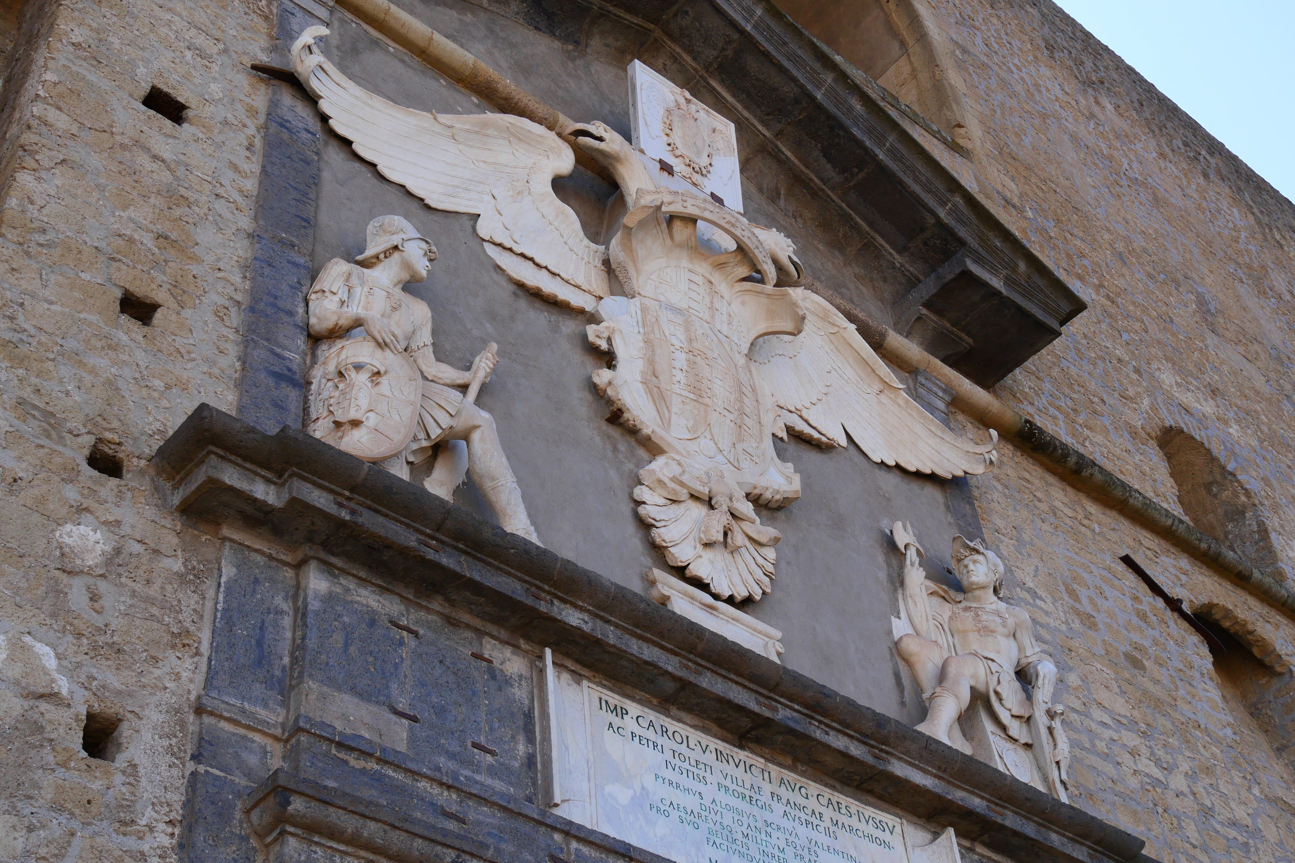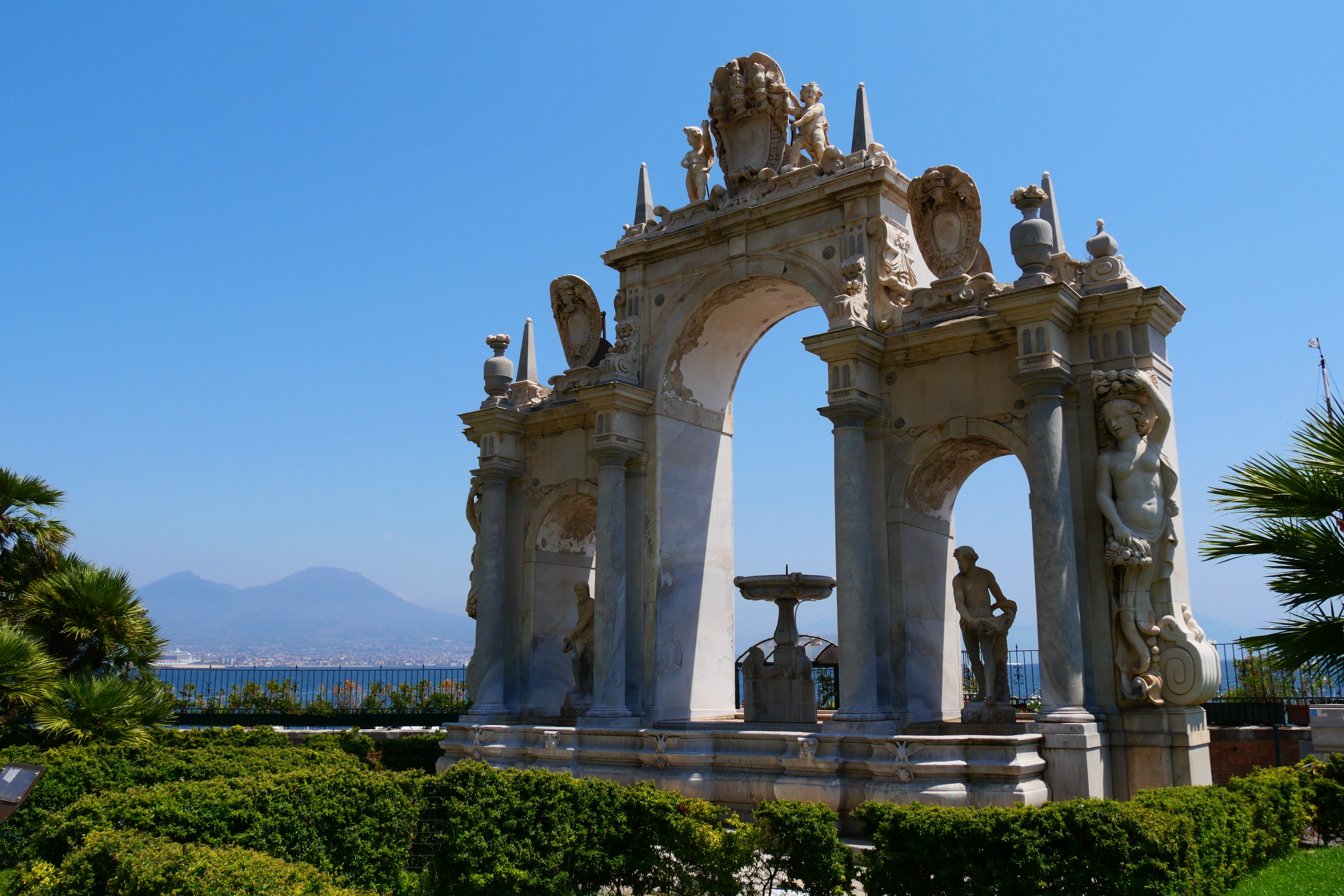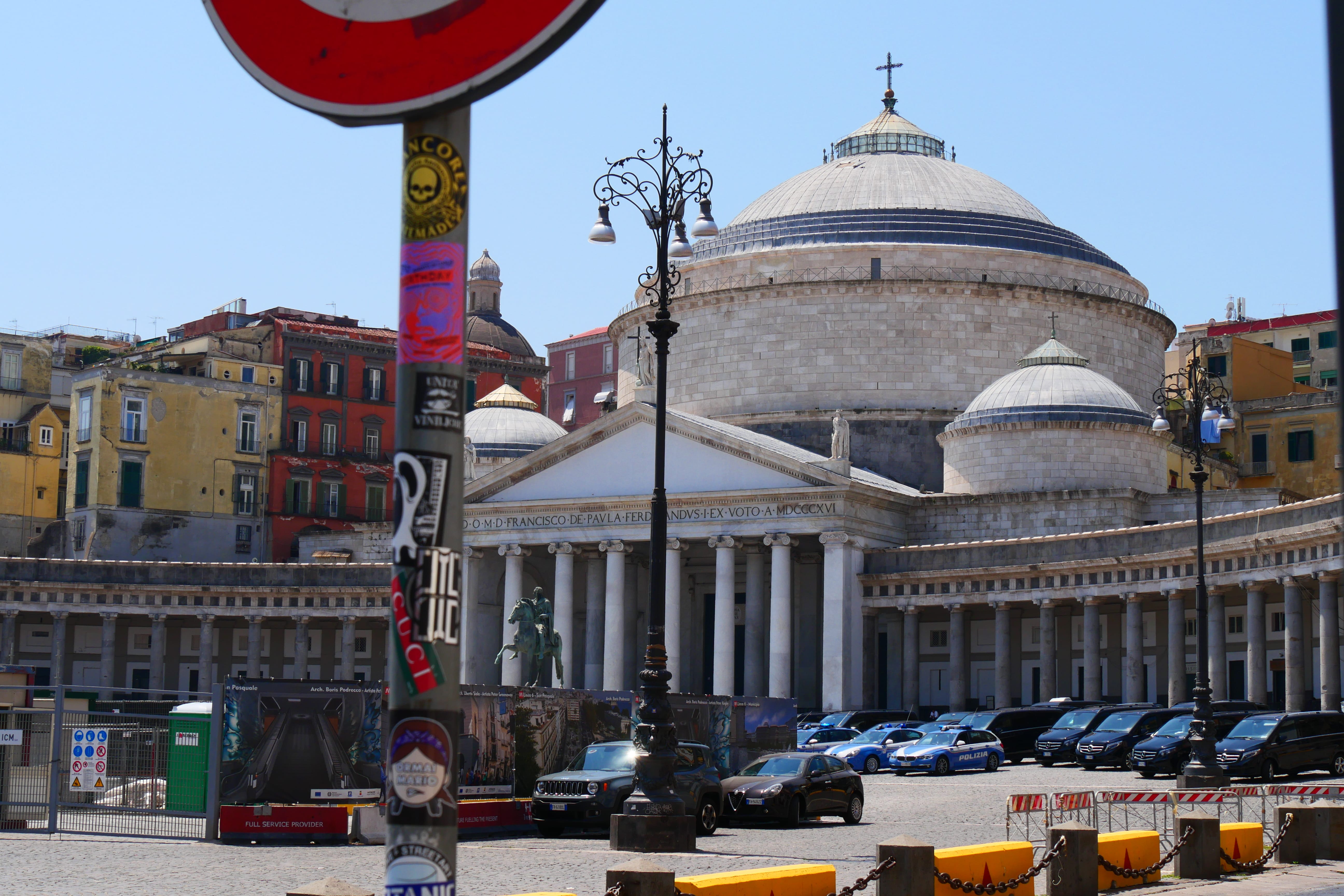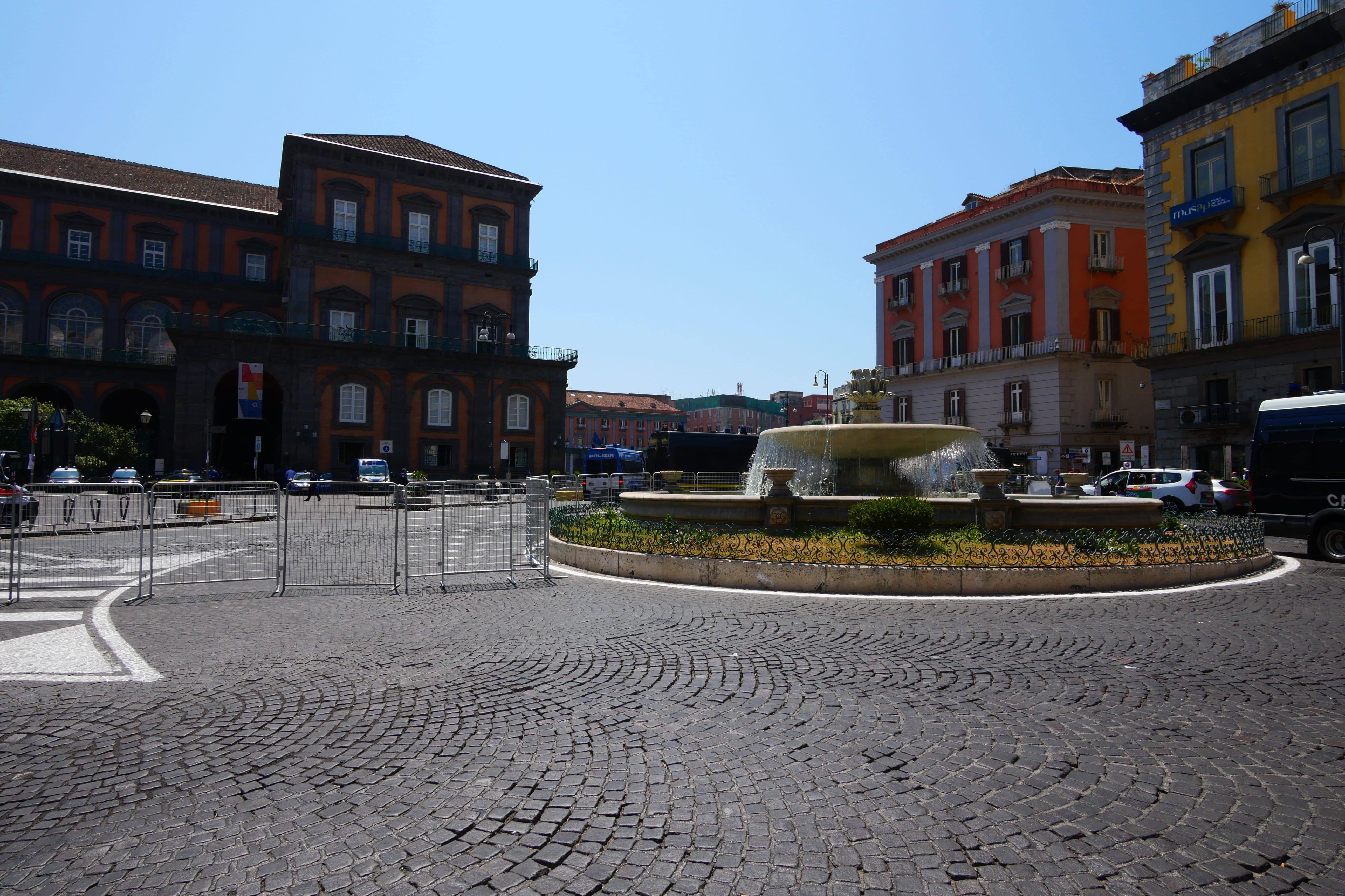 Impossible de venir à Naples sans y manger une vraie pizza napolitaine. Impossible également de faire le tri pour savoir où il serait mieux d’aller la trouver. Nous avons donc fait un choix de proximité. Puisque nous étions tout près de la Piazza del Plebiscito, nous avons sélectionné la Pizzeria Pavia à quelques dizaines de mètres de là. Se trouvant dans une ruelle à l’écart, elle était très petite, peu voire pas fréquentée par les touristes, et pratiquait des prix défiant toute concurrence. Une pizza Margherita toute simple à 3,50€ et une pizza Capricciosa à 6,50€ plus tard, satisfait de notre repas et de cette expérience, nous repartons en direction de la mer. Se dressent sur le front de mer deux châteaux : le Castel dell’ Ovo et le Castel Nuovo. Le premier est un château fort construit pour la première fois au VIIe siècle, le plus ancien de Naples. Le second, date de l’époque médiéval et a une structure plus gothique et plus particulière avec ses 5 tours.