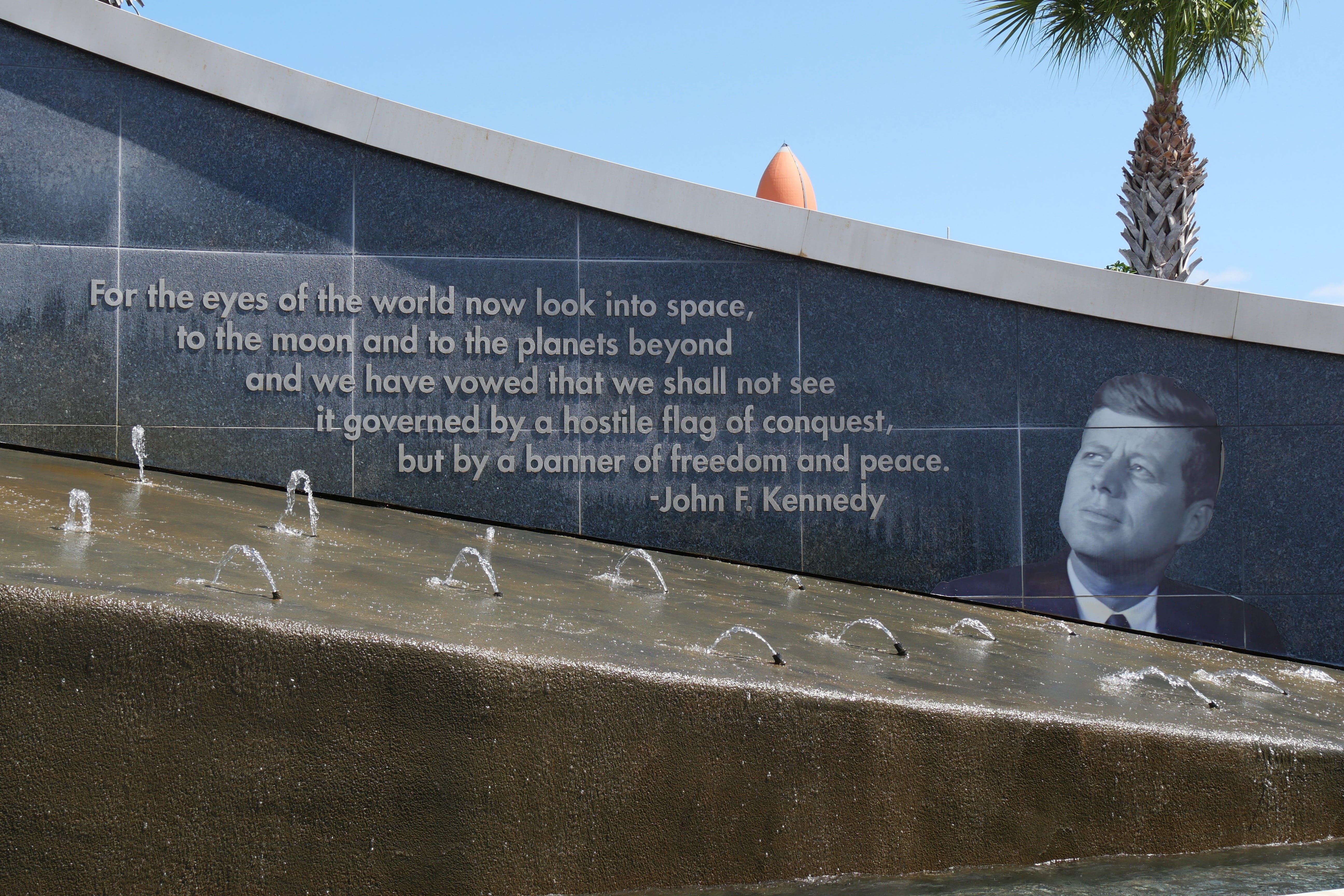 Après avoir récupéré nos affaires et notre repas de midi (indispensable pour ne pas débourser trop dans le parc), nous abandonnons la Mustang sur un immense parking, sans un recoin d’ombre et découpé en portions aux effigies et noms des premiers astronautes américains. Le ton est donné dès l’arrivée à l’entrée du parc, un logo Nasa, les paroles de JFK et les historiques fusées mettent rapidement dans l’ambiance, et l’on passe rapidement les contrôles, prêts à découvrir ce parc qu’Il attendait avec impatience. Nous n’irons pas par quatre chemins, notre enthousiasme initial retombera au fur et à mesure que l’on sentira que finalement, malgré la présence d’incontournables vraiment très impressionnants, plusieurs « attractions » nous auront semblé être davantage du remplissage qu’une chose à voir absolument.