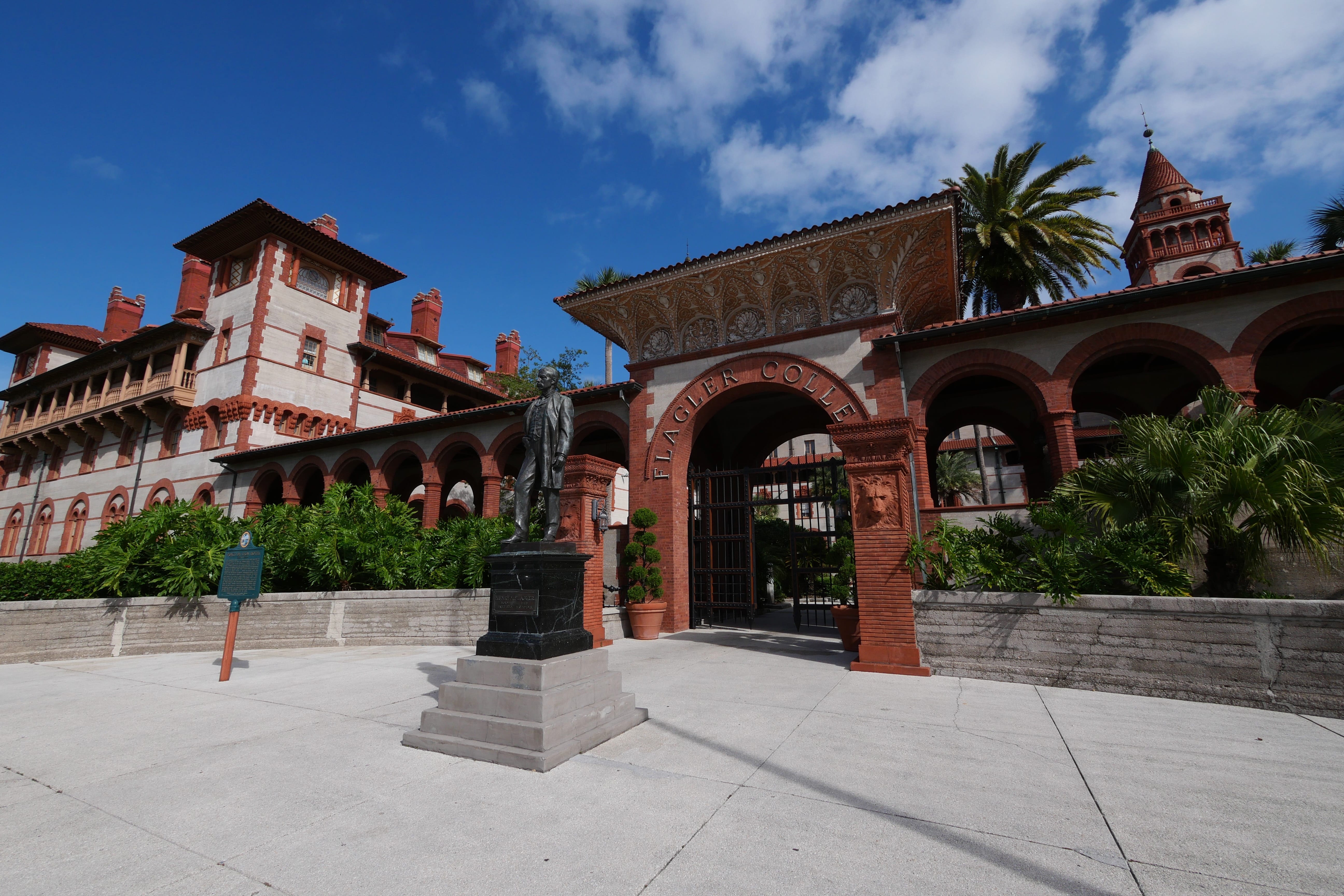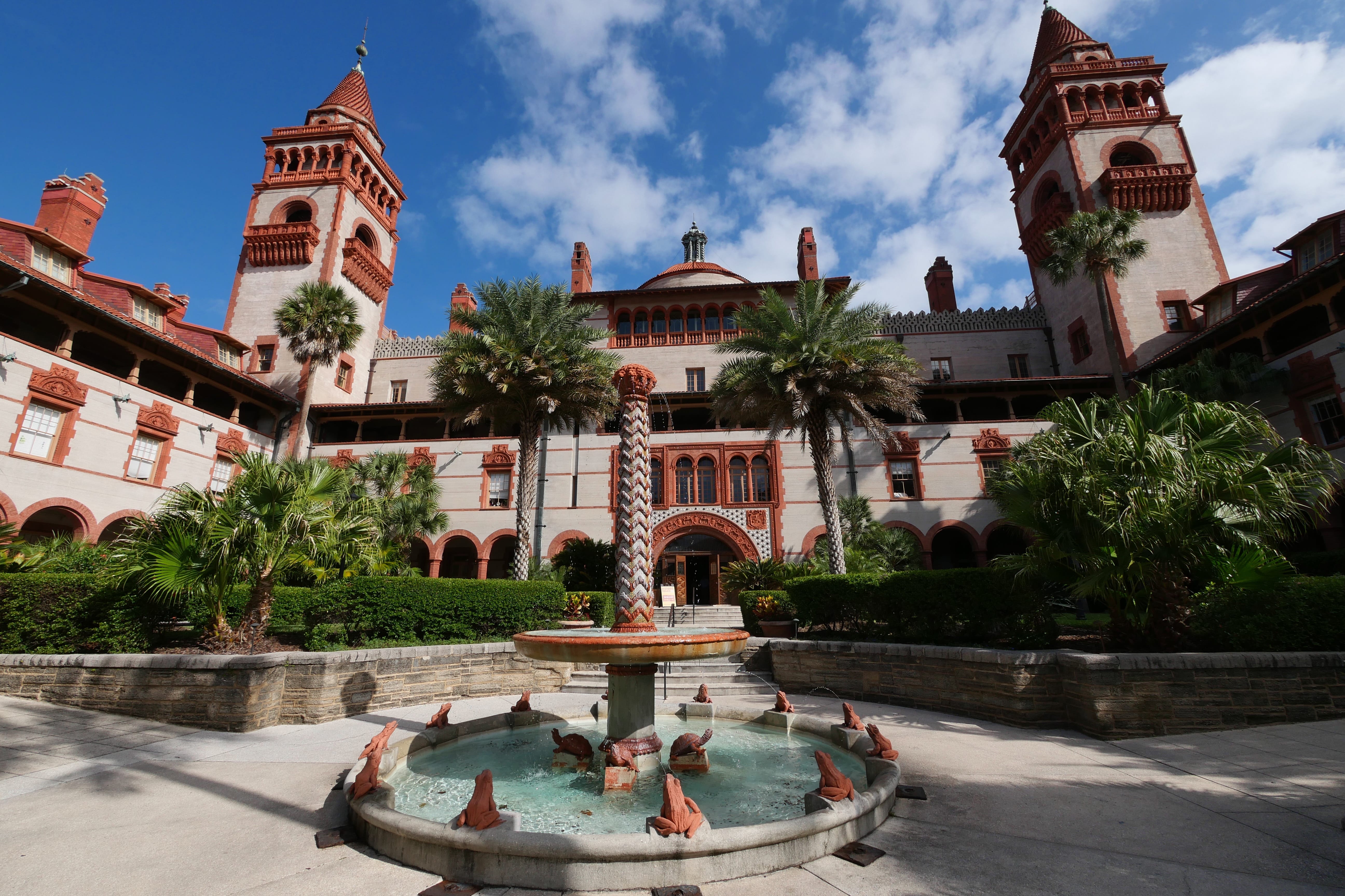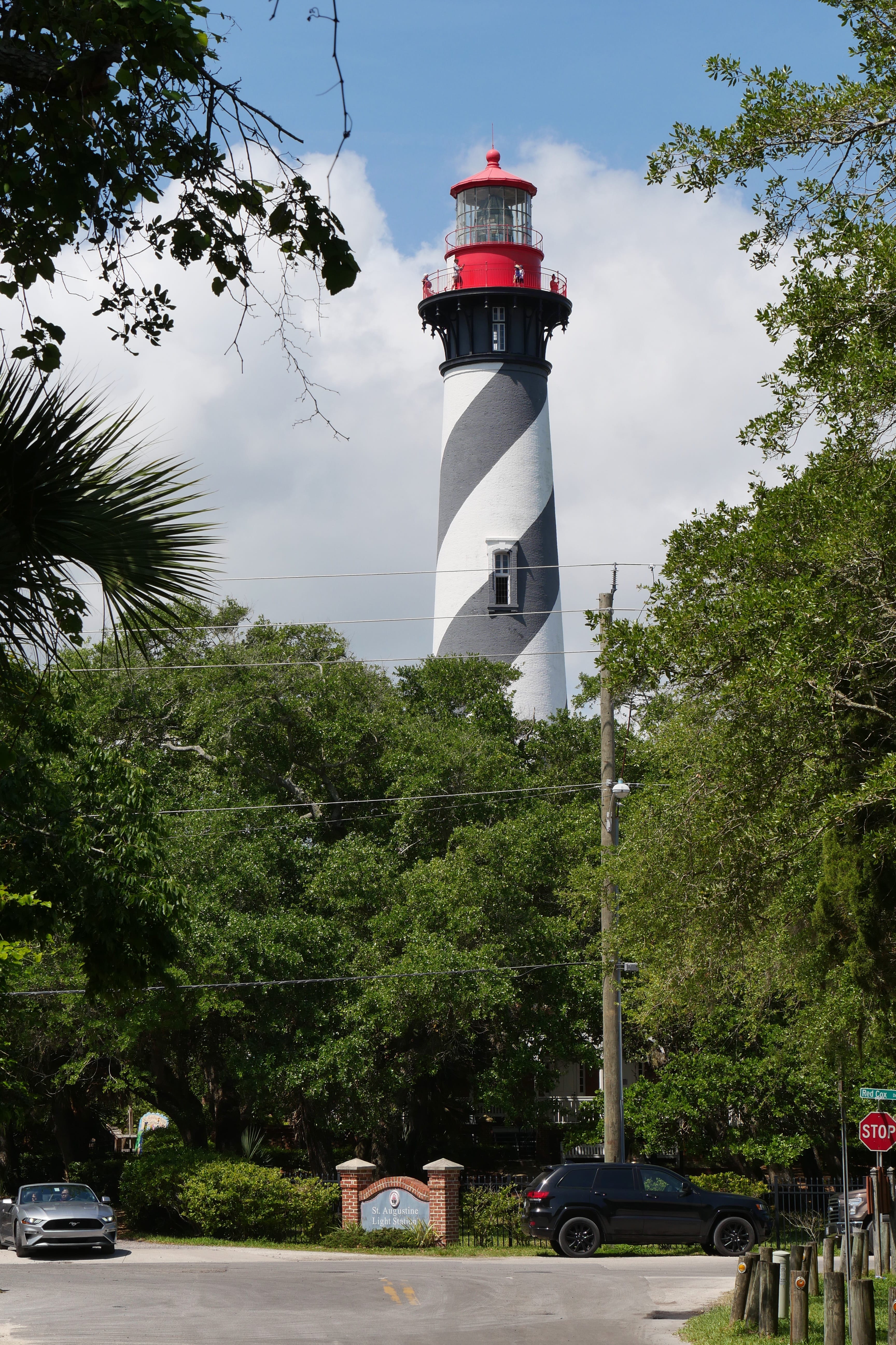 Notre conseil de visite sera de trouver une place de parking dans une rue calme (comme à peu près toutes celles de Sainte-Augstine lors de notre visite, certes matinale) et d’ensuite se concentrer sur les alentours de St George Street, où se concentrent les principaux points historiques de la ville. Nous passerons devant la plus vieille école en bois des Etats-Unis (nous n’avons pas vérifié, mais c’était écrit dessus…), le cimetière Huguenot et le Castillo San Marcos, pris d’assaut par les groupes scolaires ce jour-là. Nous irons jusqu’à entrer dans le Flagler College, l’université de Sainte-Augustine, ancien hôtel de luxe construit à la demande de Henry Morrison Flagler, industriel très influent de son époque, notamment dans le ferroviaire. Il a participé au développement de la Floride et est associé à la fondation des villes de Miami et Palm Beach. C’était pour nous l’un des incontournables de Sainte-Augstine. Nous finirons notre visite en reprenant la voiture, pour aller déjeuner près du phare. Si l’on pensait initialement pouvoir au moins en faire une photo depuis le pied de l’édifice, il n’en fut rien et c’est parce qu’on ne voulait pas débourser $15 chacun pour voir un phare que nous finirons par rebrousser chemin pour s’en éloigner et lui tirer le portrait malgré tout.