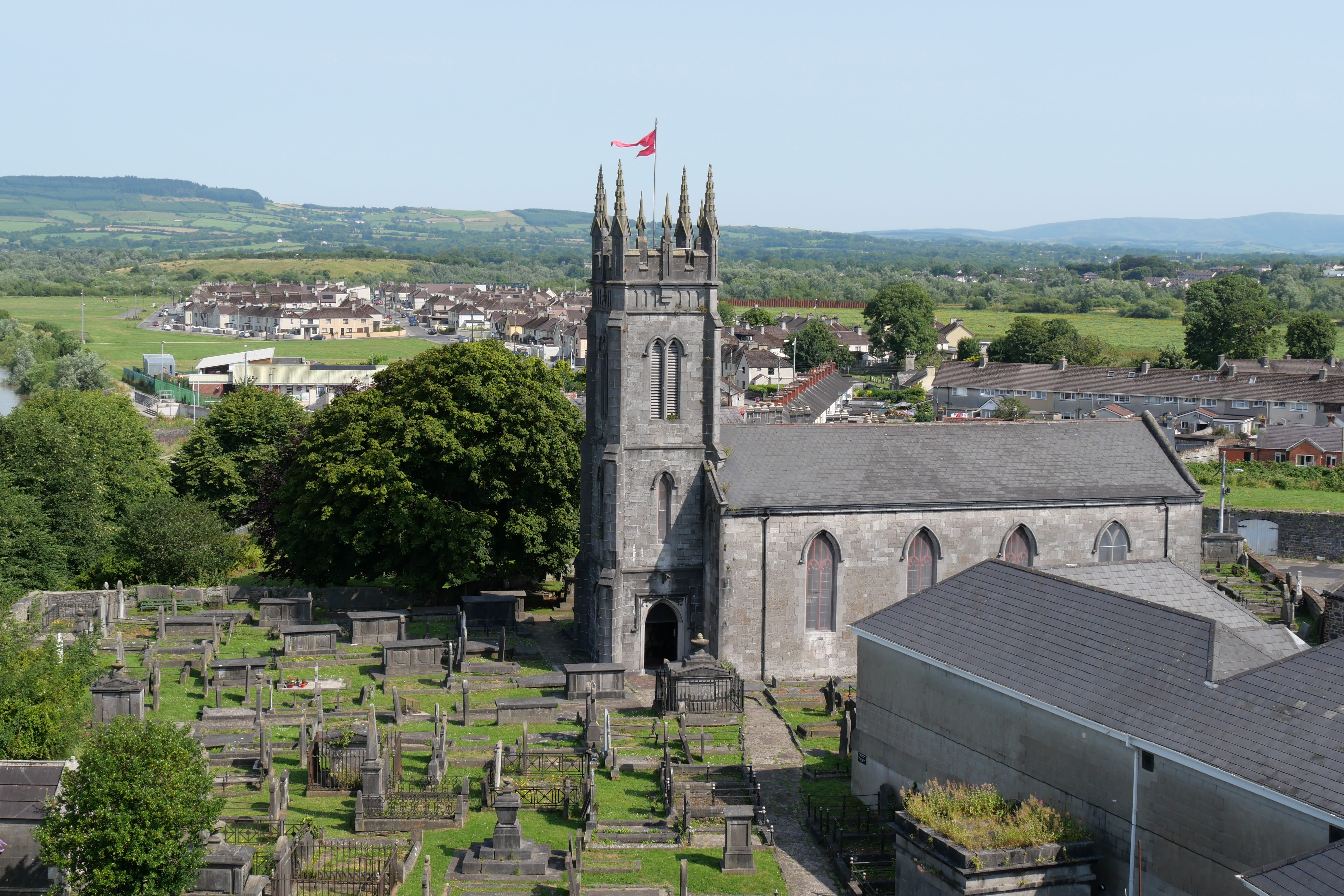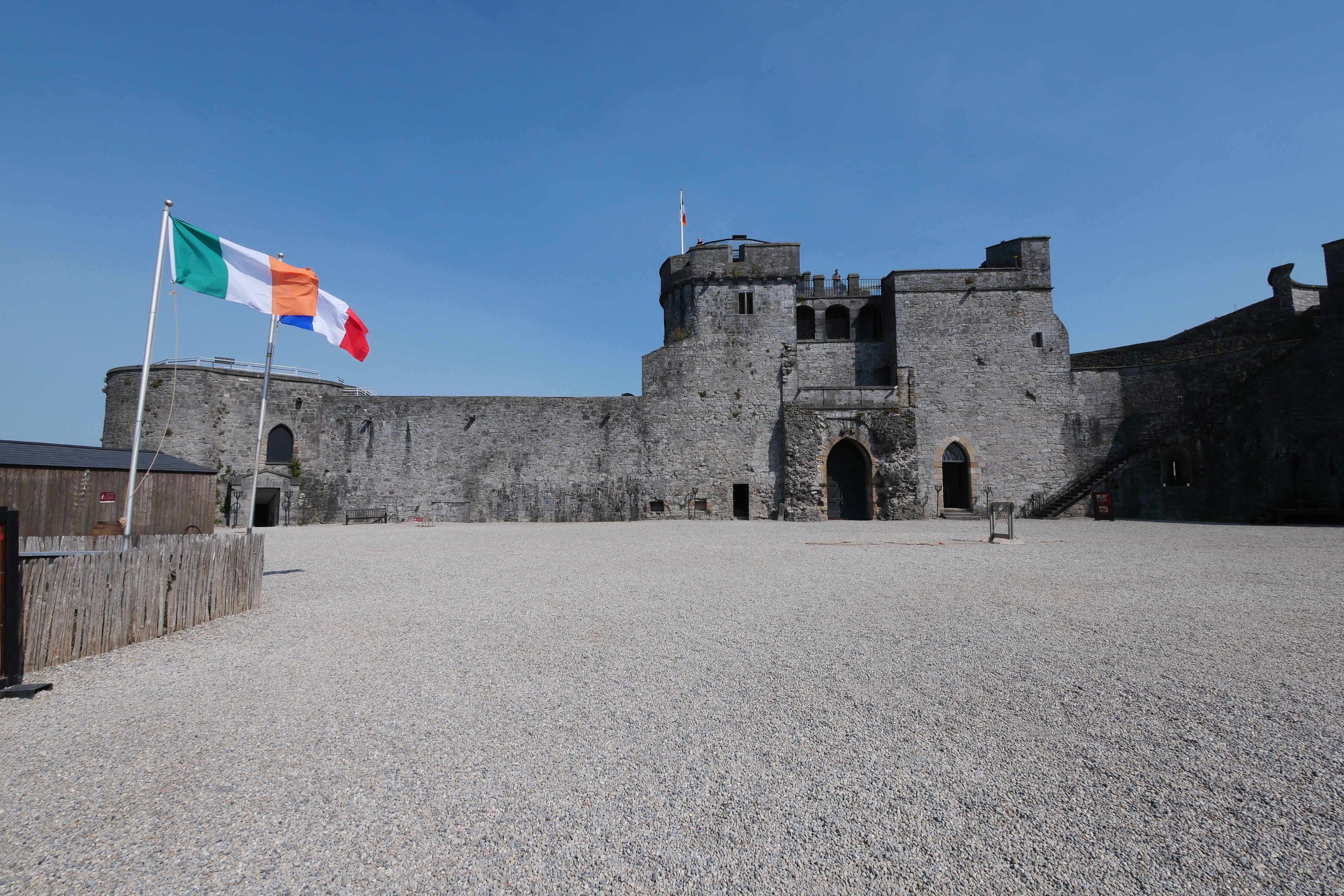 Après ces quelques jours à arpenter la péninsule de Dingle, c’est à Limerick que nous nous rendons pour cette nouvelle journée de voyage. Située dans la province de Munster, on peut facilement la comparer à Cork en termes de taille. Nous lui avons consacré la matinée, avec une visite planifiée du château, le King John’s Castle, dès l’ouverture afin d’optimiser nos possibilités de visite. Nous l’avons trouvée particulièrement intéressante pour le détail qu’elle apporte à l’histoire de l’Irlande, avec de nombreuses infographies et dessins mettant en scène l’évolution au fil des siècles. On y a un peu mieux compris la très complexe histoire irlandaise grâce à tout cela, en prenant le temps de s’impliquer évidemment, la visite n’étant pas guidée. En ce qui concerne le château en lui-même, c’est plutôt mitigé comme ressenti. En effet, ce dernier est relativement simple architecturalement parlant. On y retrouve les murs d’enceinte, quelques tours accessibles, et les ruines d’un hall dans la cour. Si on retiendra les différents points de vue offerts sur la ville, on ne gardera pas forcément un souvenir impérissable des vestiges. C’est en essayant de rejoindre le centre-ville pour avoir un aperçu plus global de Limerick que nous passerons à proximité de St Mary’s Cathedral qu’Elle visitera pendant qu’Il préfèrera l’attendre, la visite étant une nouvelle fois payante, et les édifices religieux parcourus étant déjà nombreux à notre palmarès depuis notre arrivée. Elle en ressortira avec quelques clichés et une impression également mitigée, qui résumera notre avis plus général sur la ville. Nous regretterons ne pas avoir eu l’occasion de découvrir les courses de lévriers, étant une grande spécialité de la ville, mais relativement limitée en termes d’horaires, d’autant plus en cette période de relative canicule où certains évènements avaient même été annulés pour préserver les chiens.
