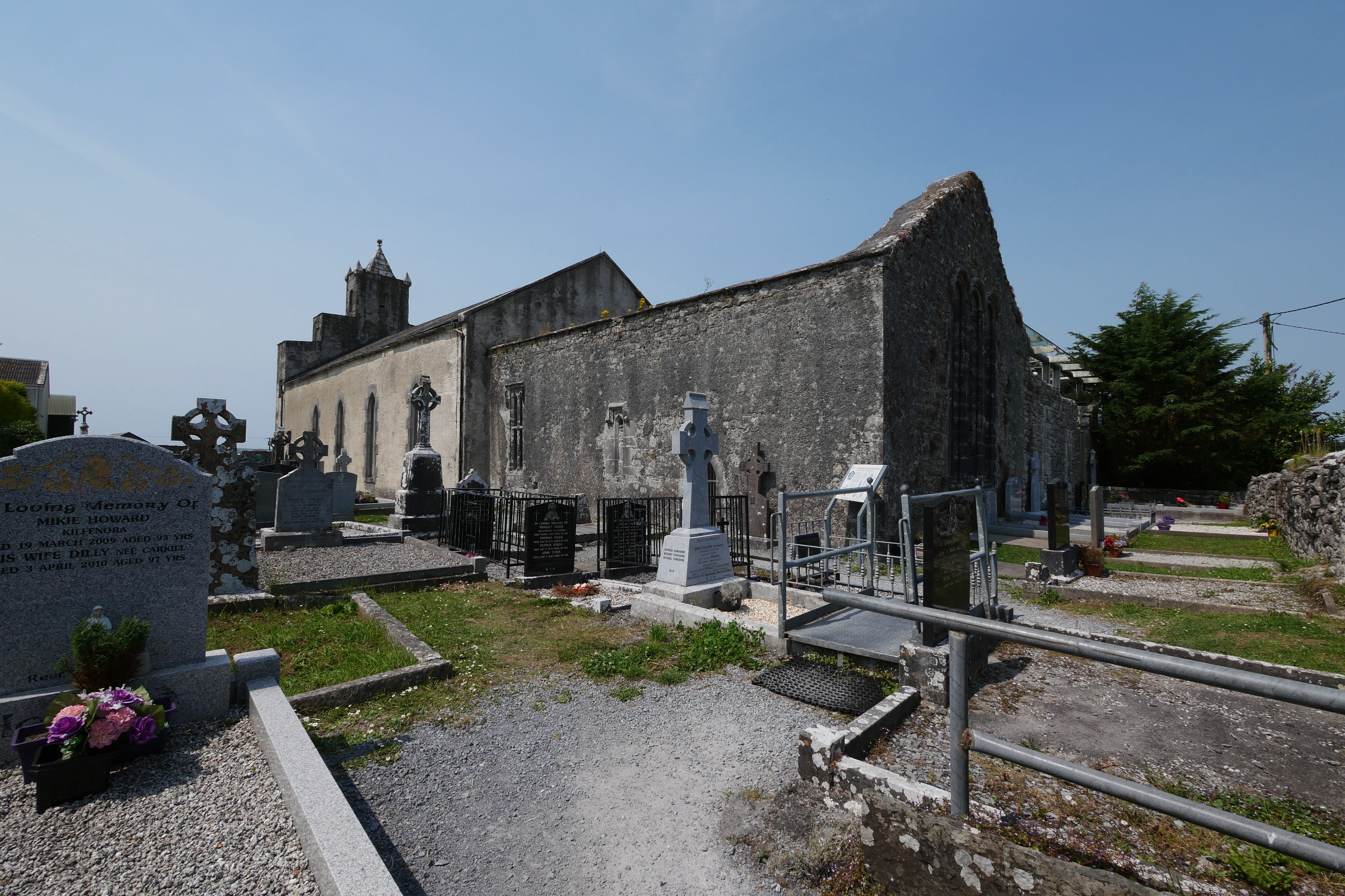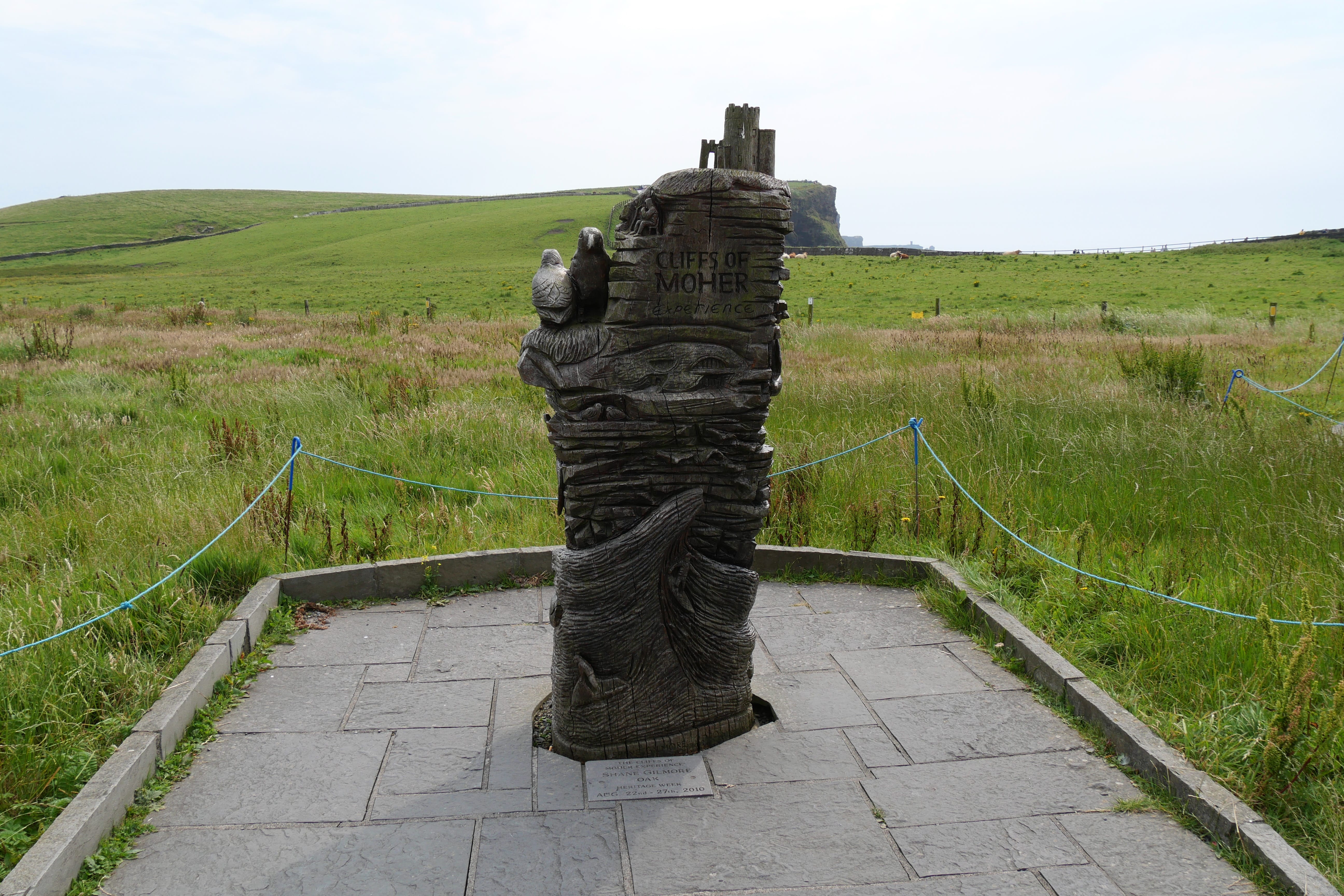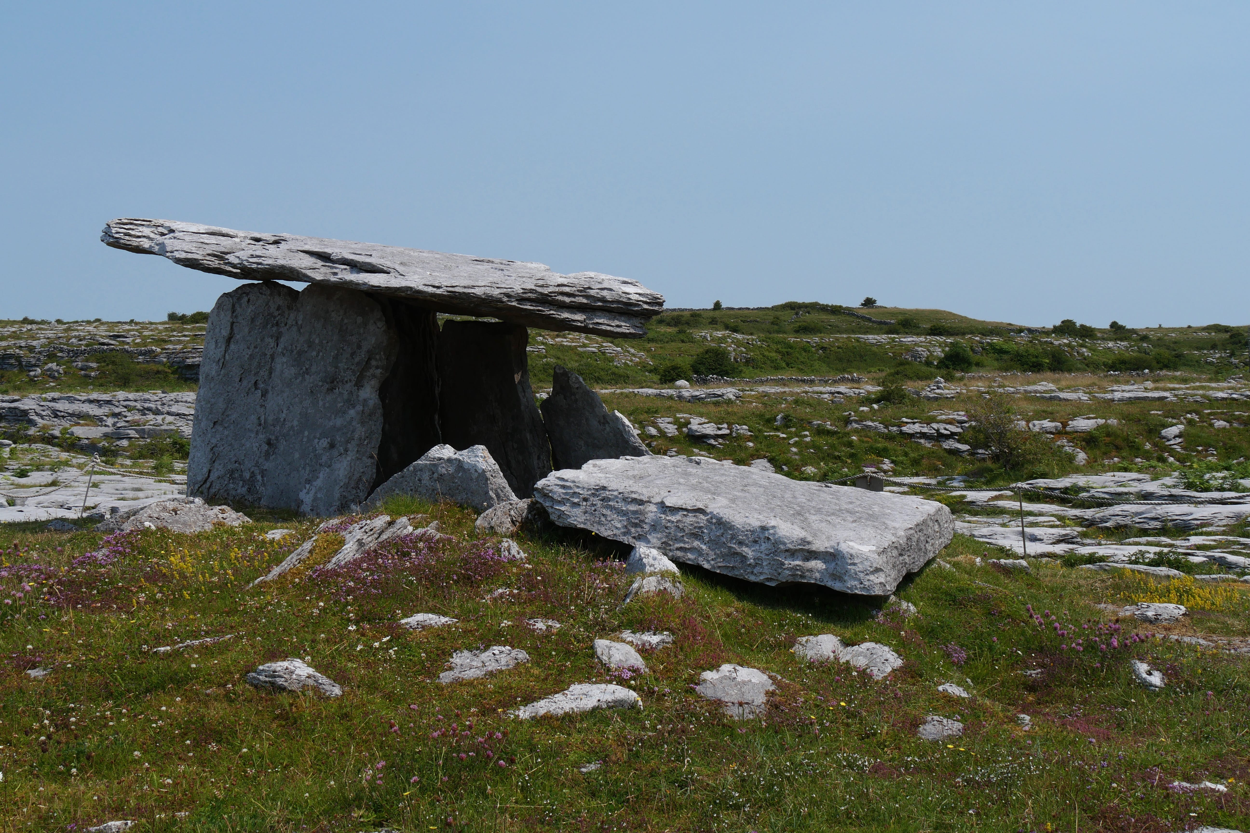 Nous reprendrons la route avec pour objectif principal les célèbres Falaises de Moher. Celles-ci n’étant pas à proximité directe de Limerick, nous avons décidé d’agrémenter le trajet de plusieurs points d’intérêts. C’est ainsi que nous découvrirons Leamenh Castle, un château en ruines aux portes du désert de Burren, n’étant pas accessible directement, simplement visible de la route. On s’arrêtera pour manger au Dolmen de Poulnabrone, méritant vraiment le détour, tant pour le dolmen en lui-même que pour les très particulières formations rocheuses au sol, typiques du désert de Burren. On se prend au jeu de passer de pierre en pierre, assez impressionnés par les crevasses entre les roches. Nous ne pourrons que vous conseiller la très petite route reliant le dolmen à la cathédrale de Kilfenora en passant par Ballytomulty. Nous l’avons prise un peu par hasard, voulant éviter de reprendre une route déjà empruntée à l’aller, et nous avons été agréablement surpris par le dépaysement offert par ce tronçon. La cathédrale de Kilfenora est surtout intéressante pour quelques détails sculptés, statues et croix celtiques, il n’y aura pas de quoi vous retarder trop longtemps et vous pourrez ensuite filer vers les falaises.