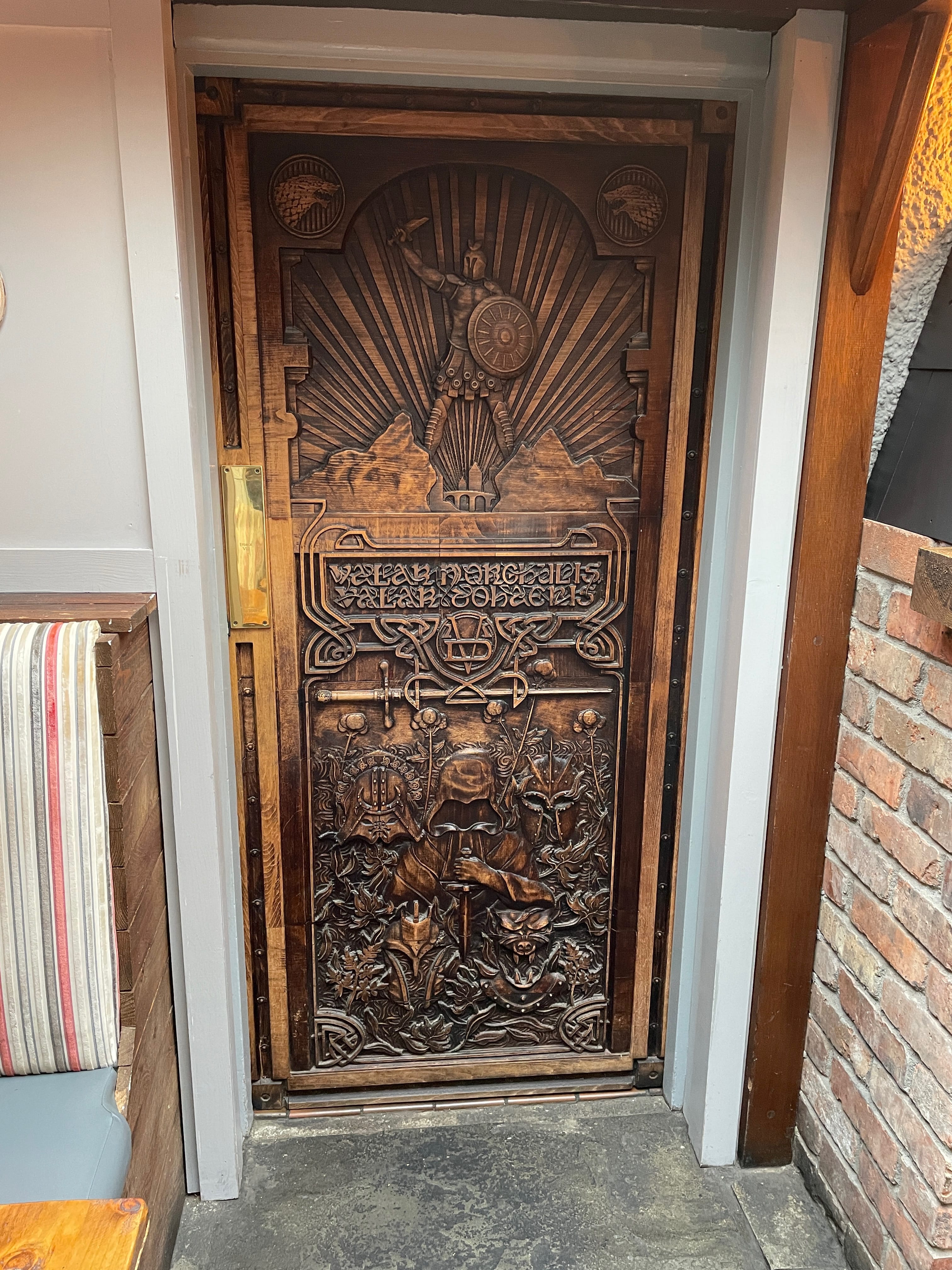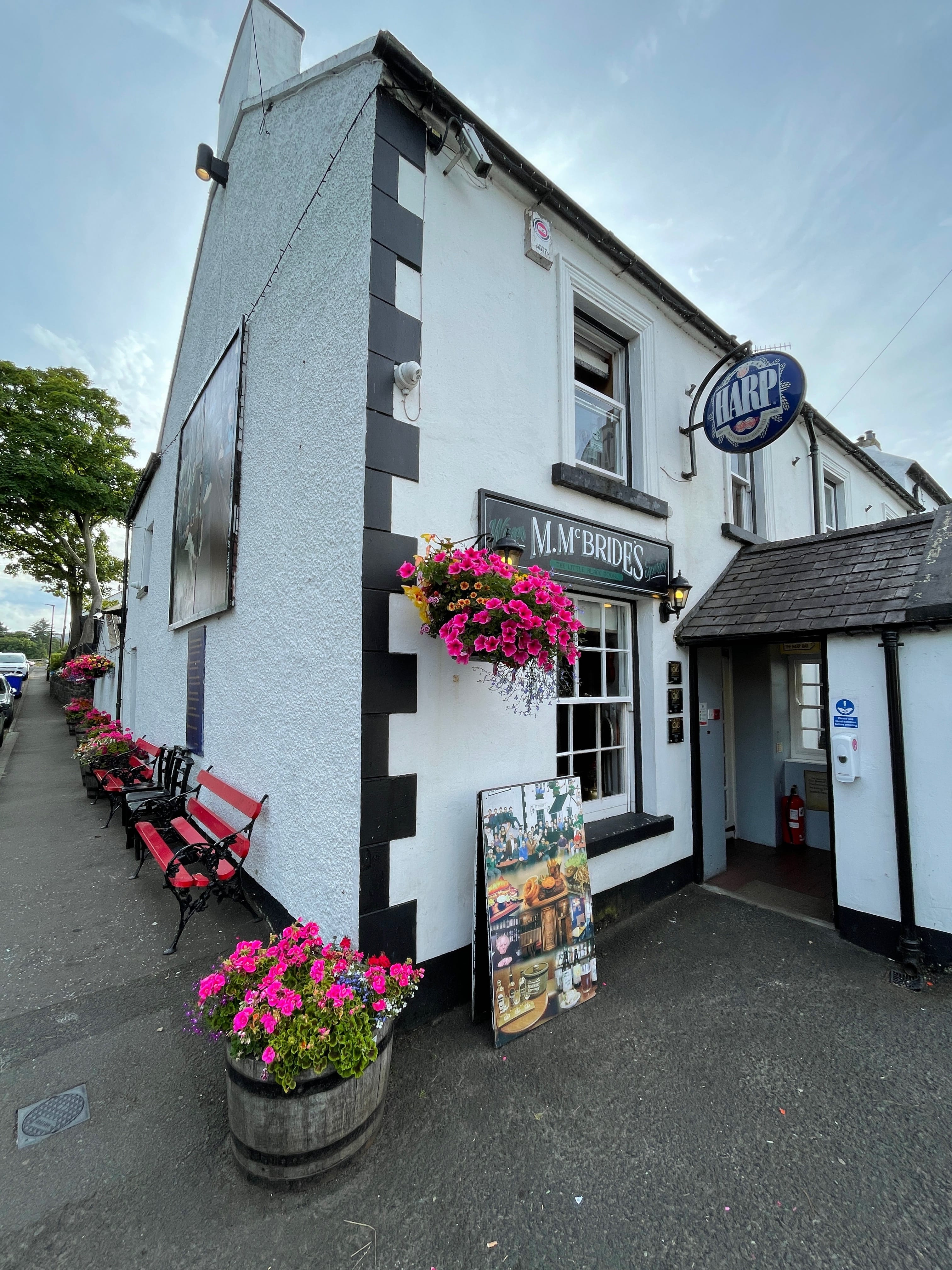Sans le savoir vraiment, nous avions prévu ce soir-là de dormir à Cushendun, qui abrite des grottes qui ont également servi de lieu de tournage (c’est là que Mélisandre a donné naissance à l’ombre tueuse, pour les connaisseurs… c’est-à-dire, pas moi..!). C’est là également que se trouve le pub Mary McBride’s, détenteur de l’une des portes que nous sommes allés découvrir avant de très bien y dîner, dans une salle à l’étage qui dénote avec l’ambiance du pub au rez-de-chaussée mais de façon très positive.