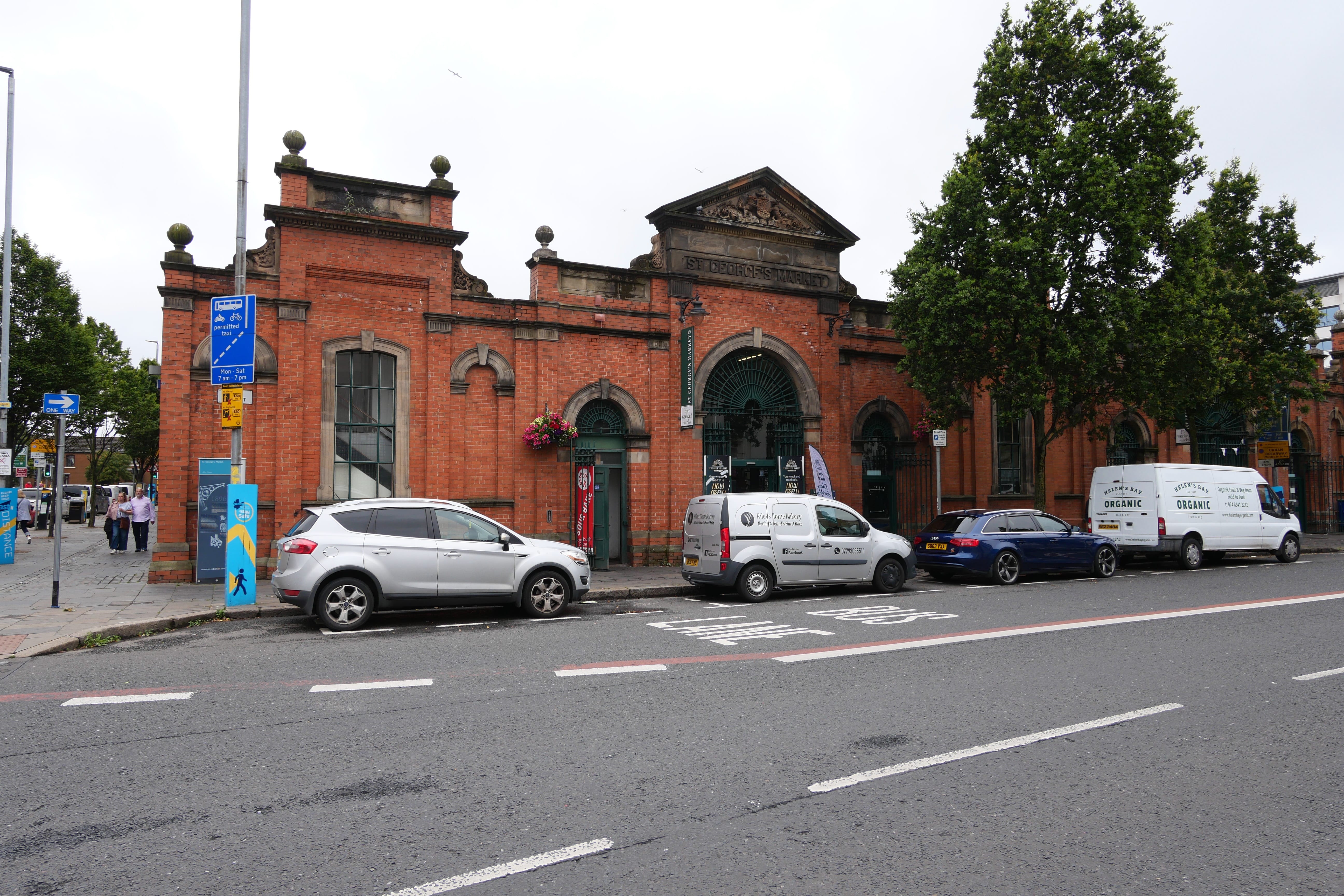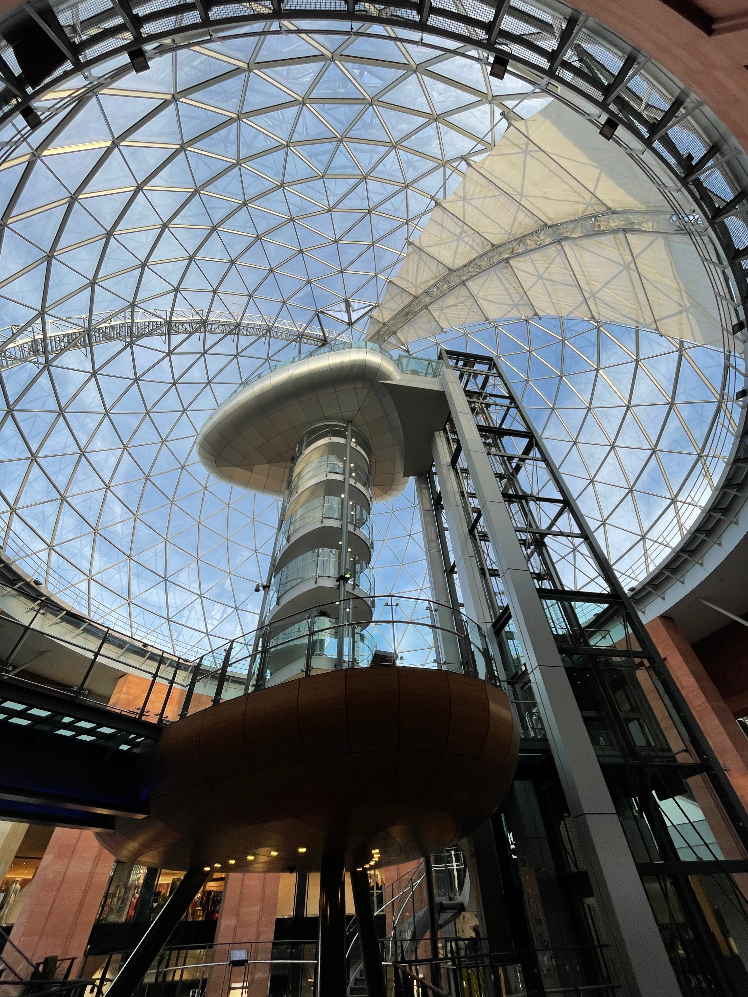 Après avoir ainsi passé un peu moins de 3h dans le musée, nous rejoignons à nouveau le centre-ville et nous dirigeons vers St George’s Market avec l’espoir de trouver à manger pour un prix raisonnable. Attention, il n’est ouvert que du vendredi au dimanche et les stands de Street Food ne sont présents que le week-end. Il y en a pour tous les goûts et il est possible de trouver un bon plat pour moins de £10 par personne. C’est après nous être restaurés que nous retournerons donc au Victoria Square, avec peu d’espoir quant à la vue, étant donnée l’averse qui s’est abattue sur nous dès la sortie du marché couvert jusqu’à la galerie commerçante. En effet, en arrivant à la plateforme, nous ne verrons pas grand chose mais tant pis, c’est le jeu !