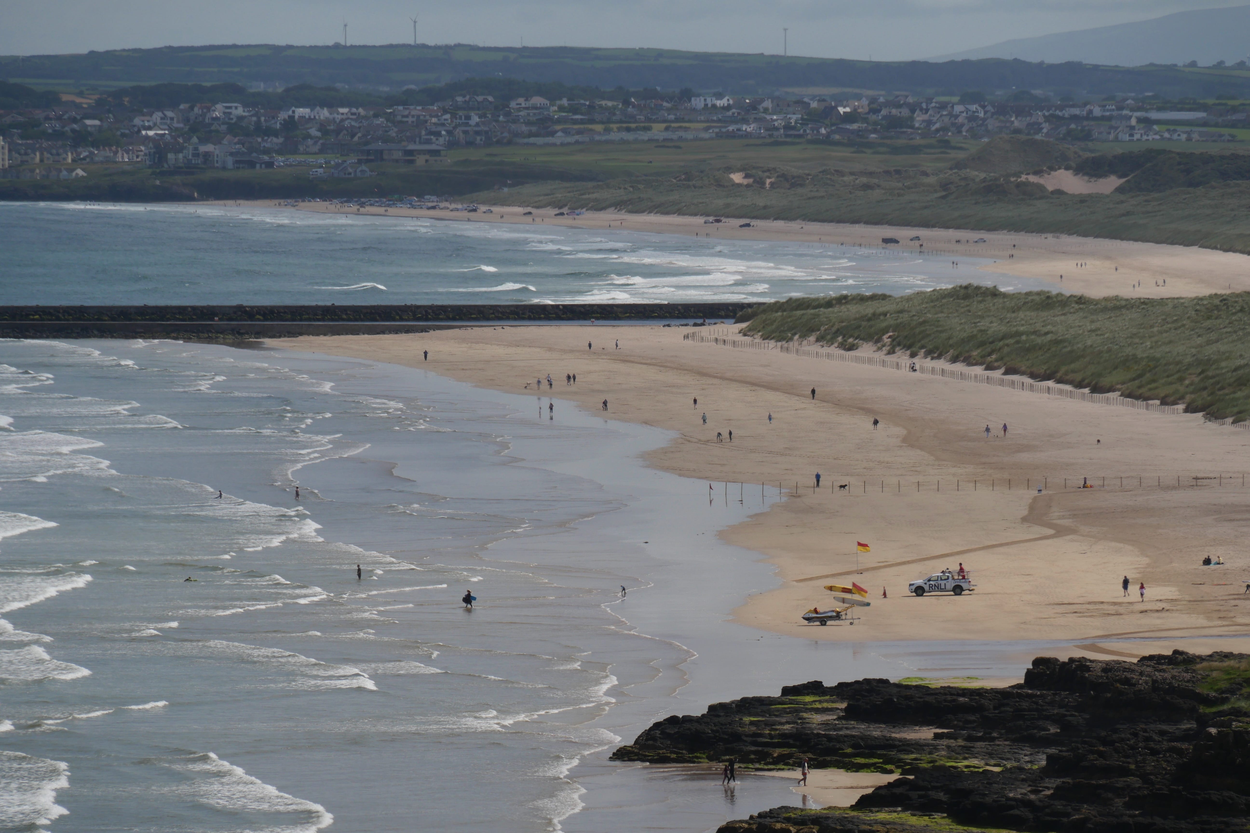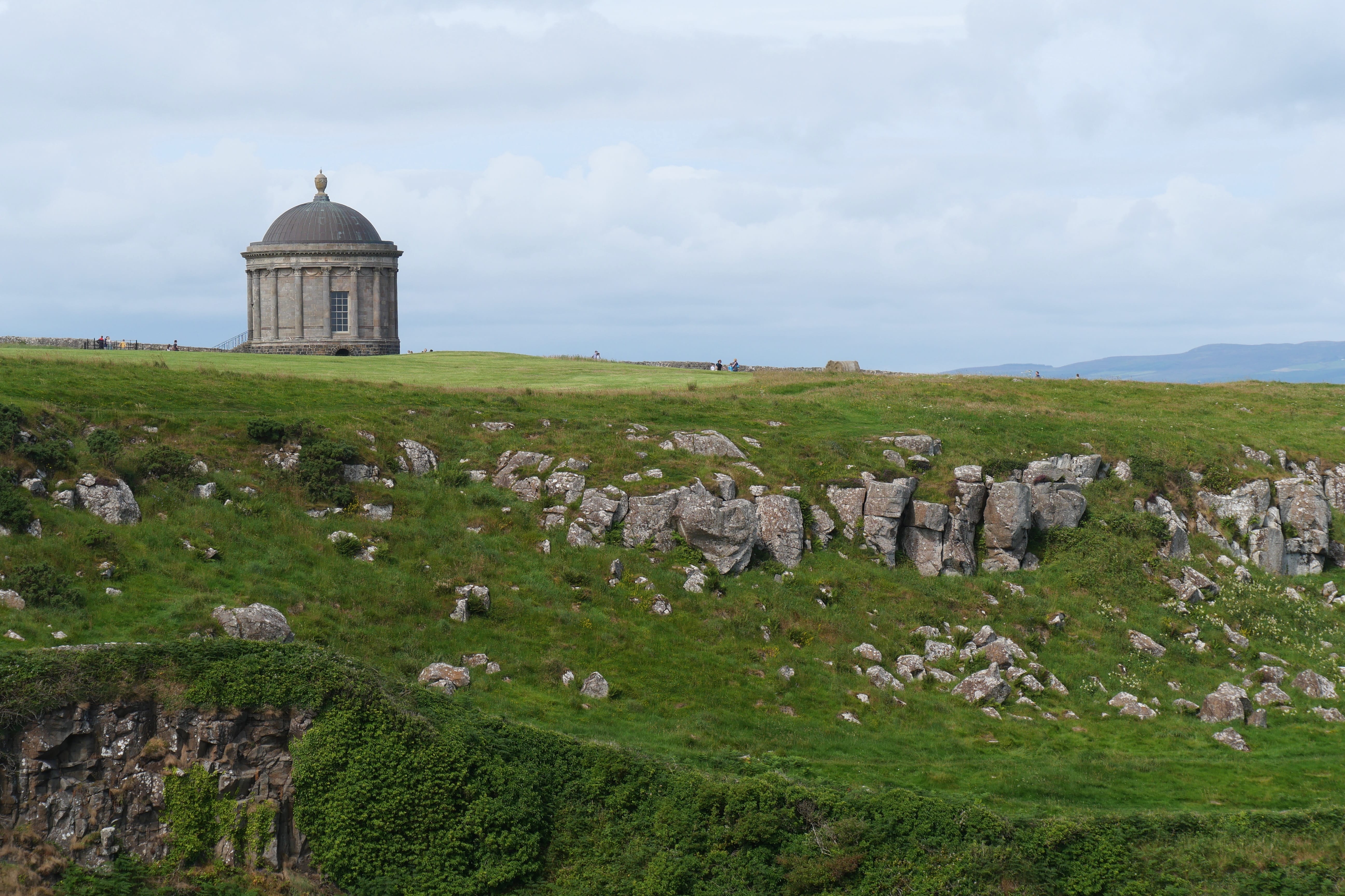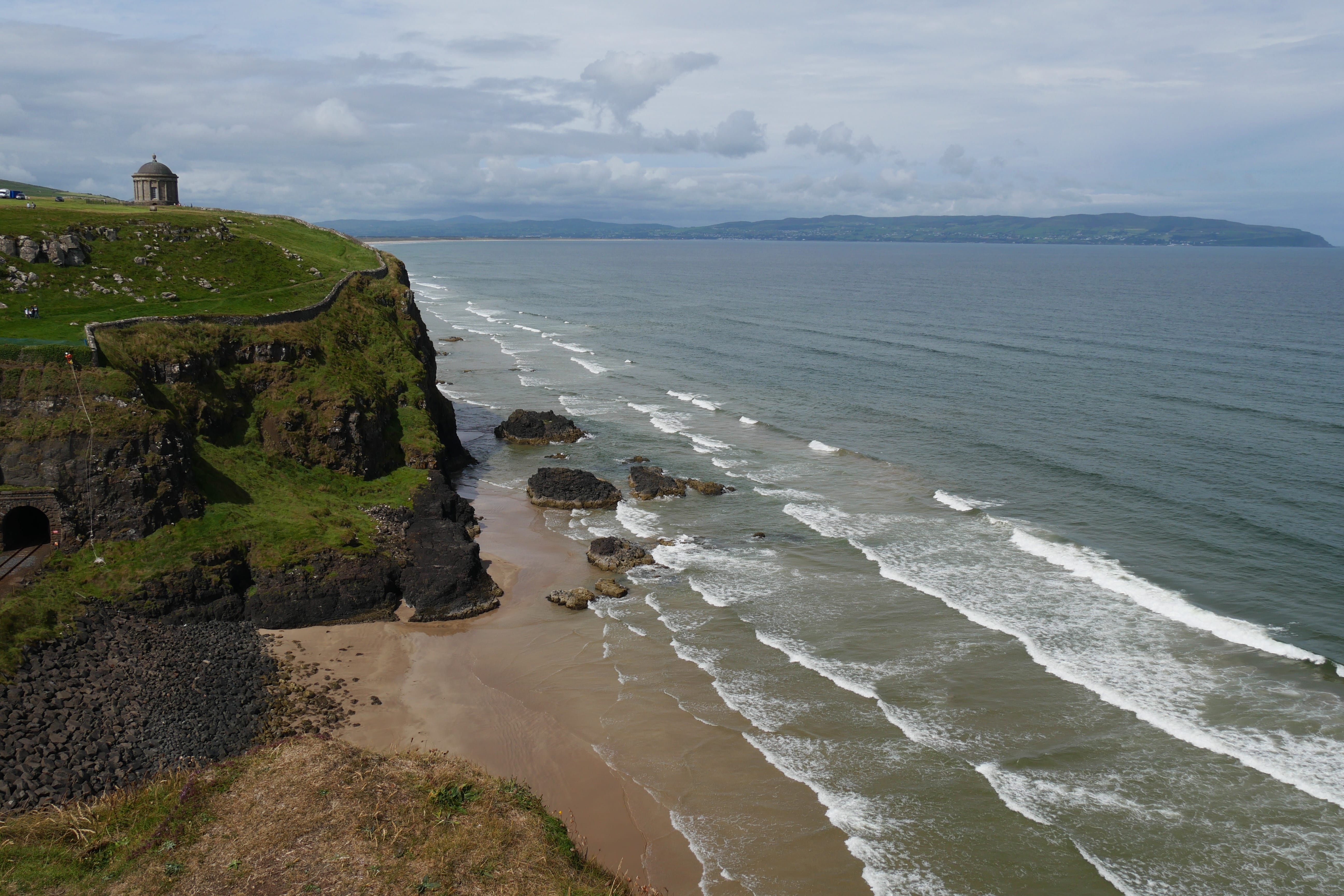 Notre première arrêt sur ces terres septentrionales se fera à Castlerock pour aller apercevoir le Mussenden Temple et Downhill Demesne. Ne comprenant pas tout à fait où il fallait se garer pour y accéder et ne sachant pas si l’accès y était réglementé (après quelques recherches pour cet article, il s’avère qu’il aurait fallu simplement s’acquitter de £5 pour le parking), nous finirons donc par nous garer un peu plus loin, au Black Glen Car Park, et par faire une petite balade sur la falaise du même nom, jusqu’à voir le temple d’un peu plus loin que prévu (suite à une erreur sur notre parcours). Cela nous offrira cependant une vue plongeante sur les plages et la ville de Castlerock et nous suffira pour cet arrêt, n’ayant pas davantage de temps à lui accorder.