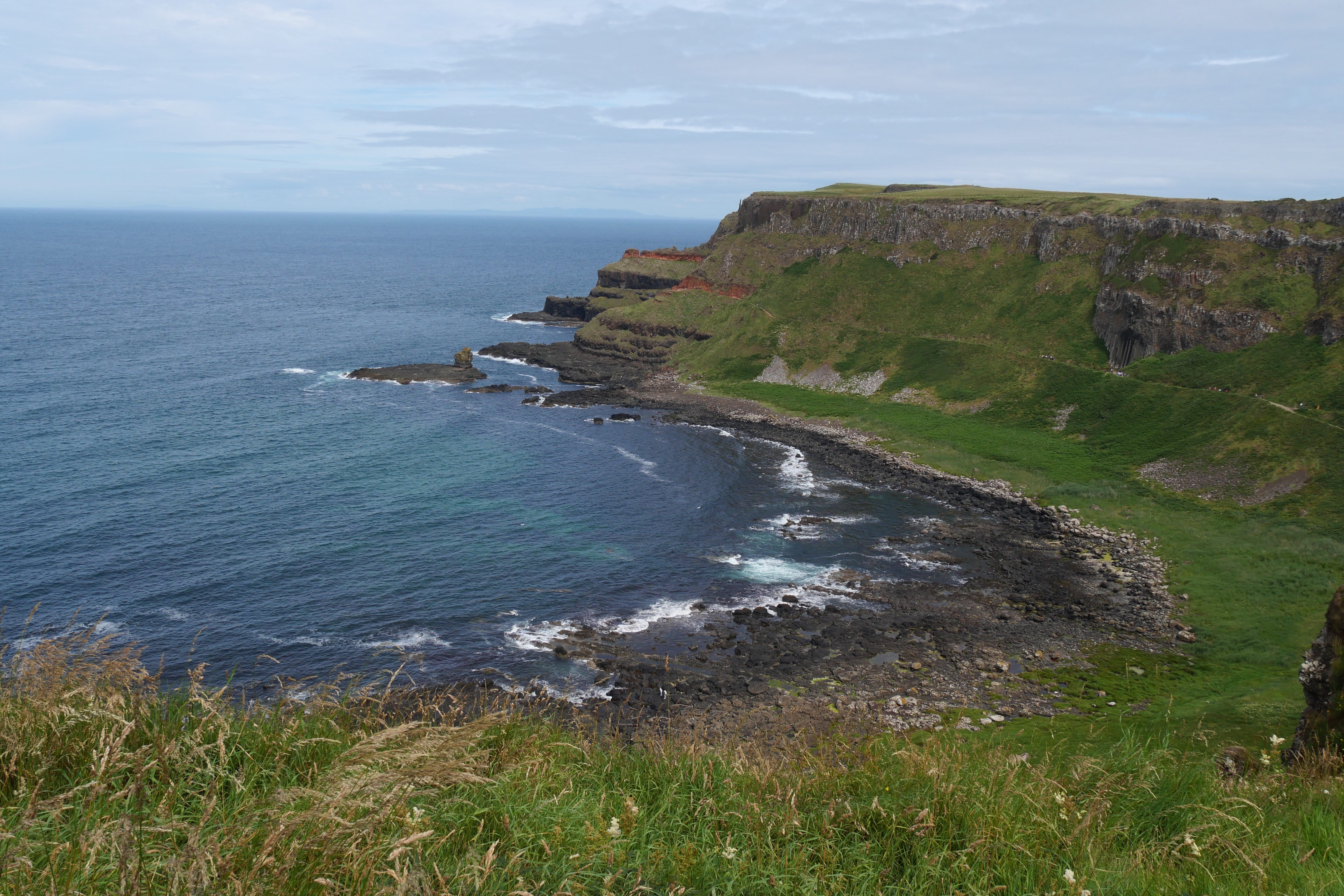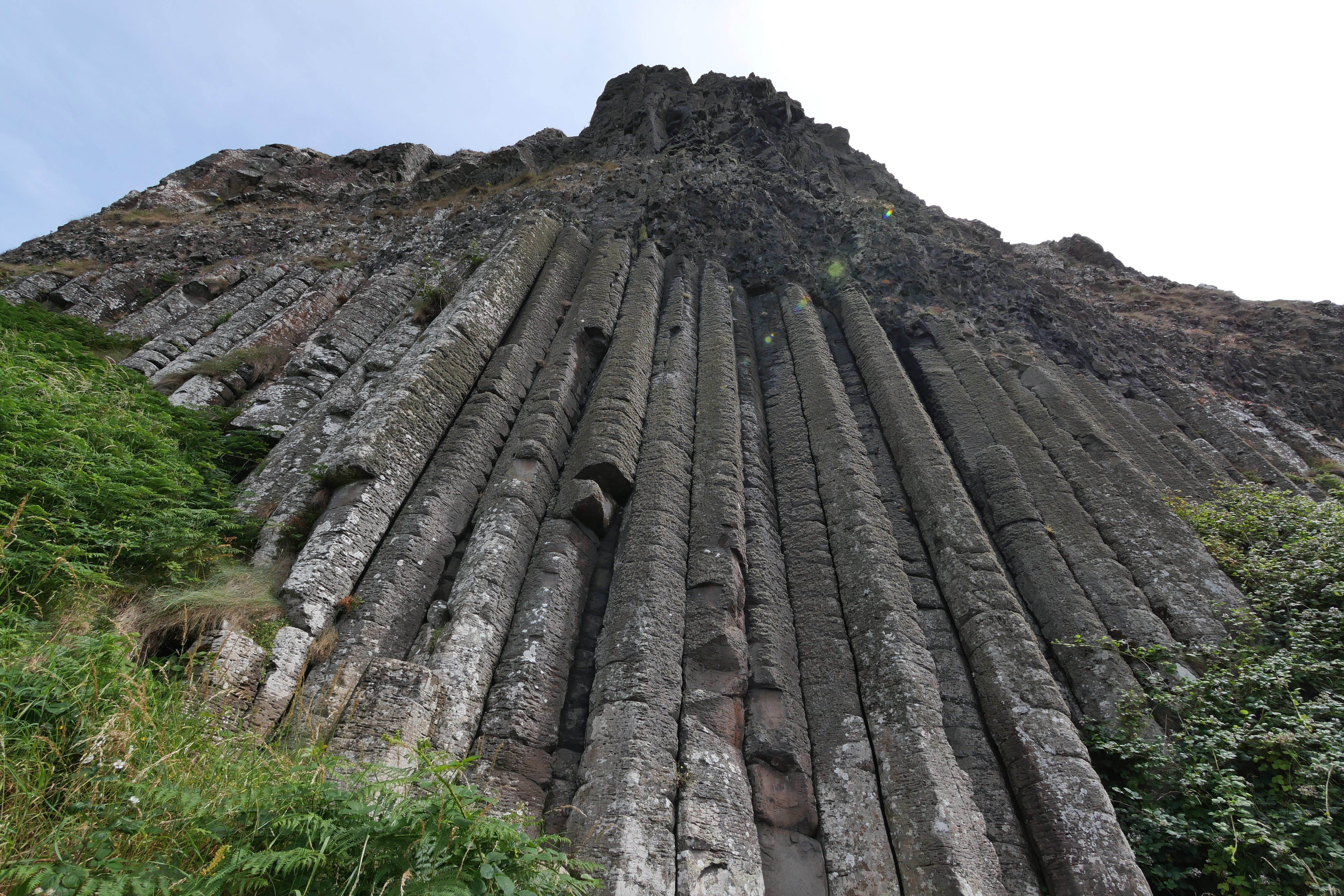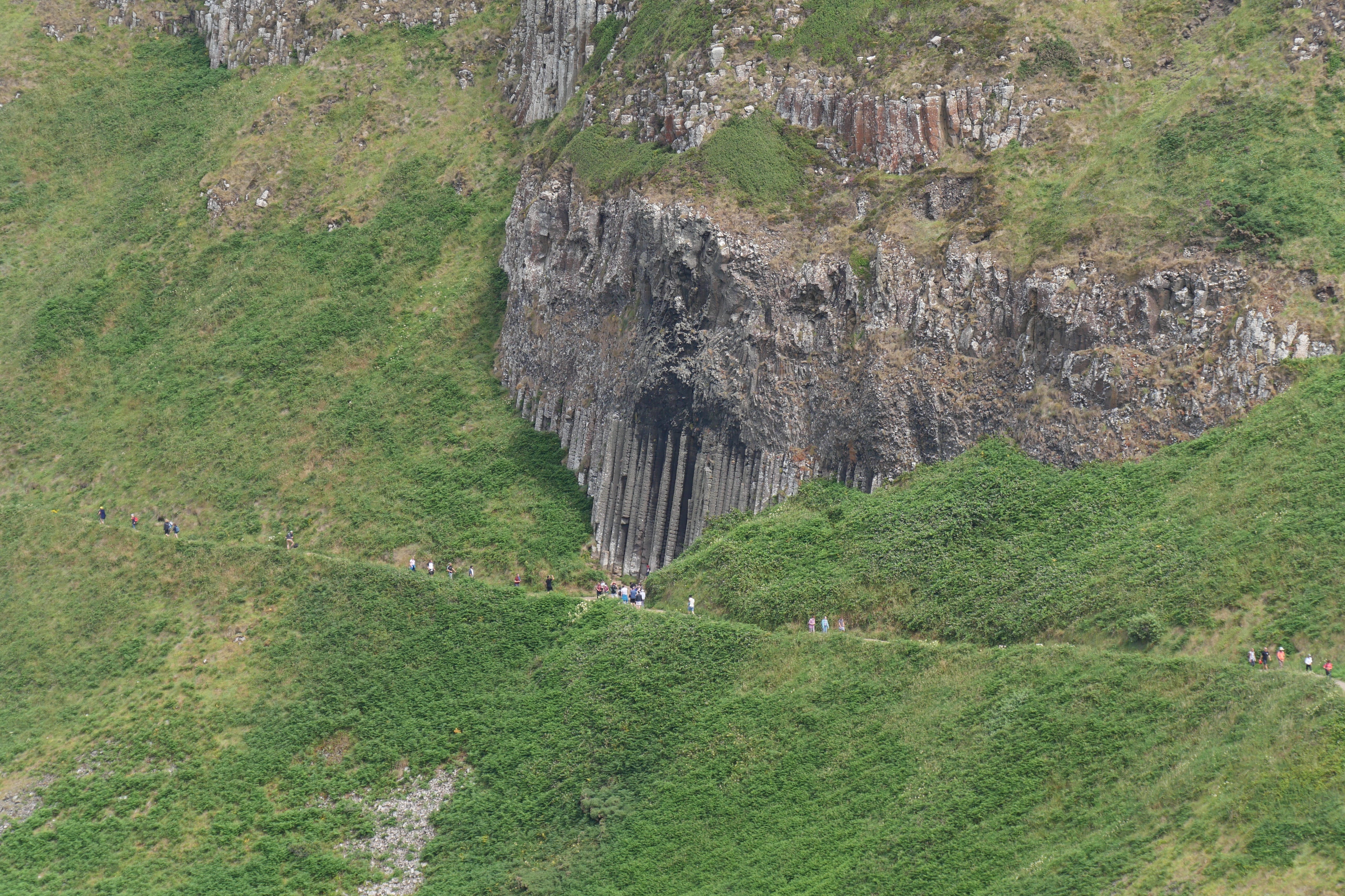 Ensuite, pour atteindre le pied des falaises et pouvoir admirer les formations de basalte si célèbres, vous pouvez rejoindre le Visitor Center à pied et prendre la navette qui vous y emmènera sans effort mais pour 2€ par personne. Ou bien, au bout du parking où nous nous étions garés, il est possible de passer par dessus la clôture grâce à un marchepied. Ensuite, prenez à droite jusqu’à un petit portail en bois puis à gauche vers les trails aménagés. Il faudra suivre le trail rouge vers la droite pour pouvoir admirer la vue en contrebas. Les Sheperd’s steps vous permettront ensuite de descendre progressivement. Comme pour rappeler le nom d’orgues basaltiques donné à ces incroyables formations, vous pourrez observer dans la montagne un magnifique œuvre de la nature en forme de tuyaux d’orgue.