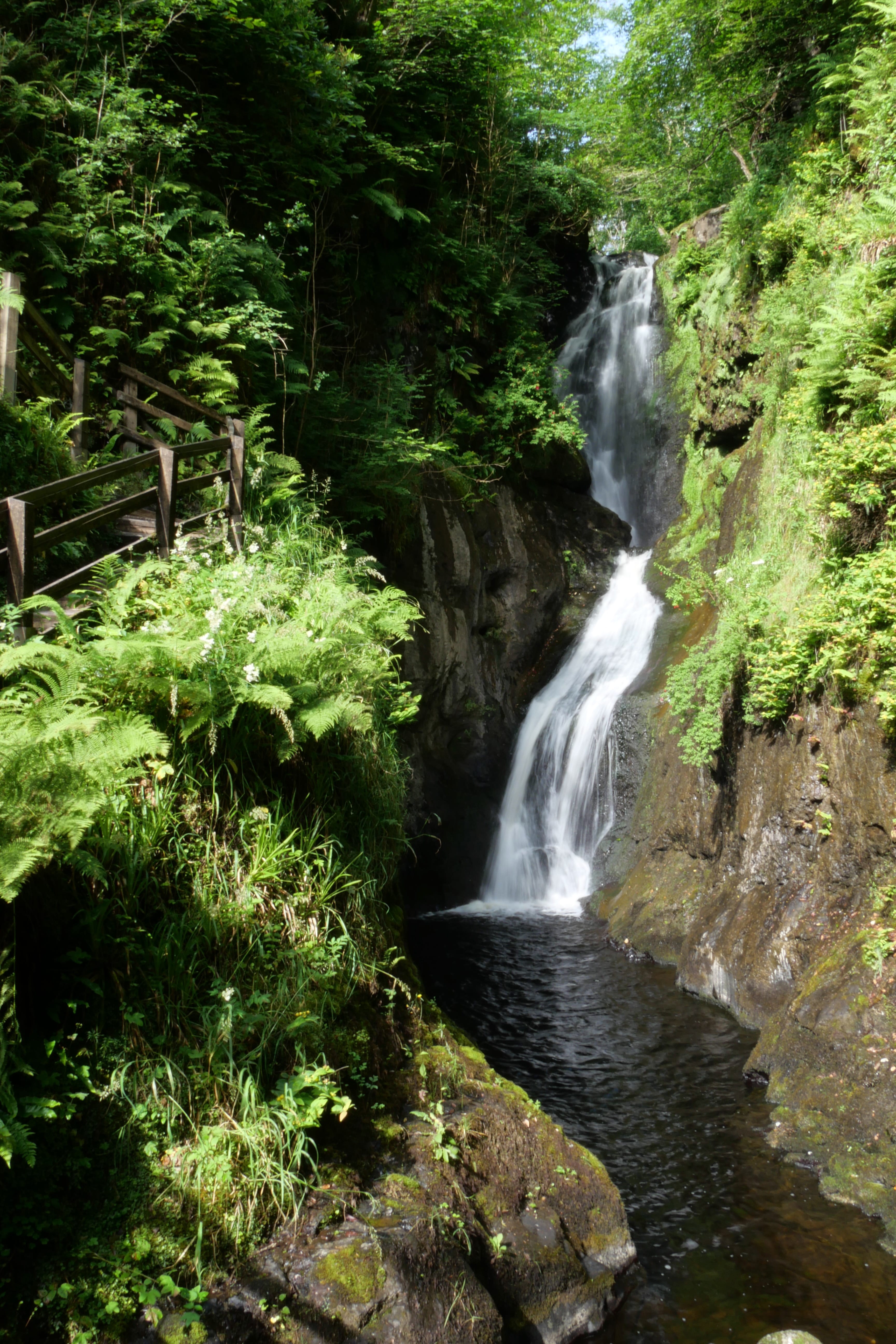 Nous avons commencé une nouvelle journée par une balade dans Glenariff Forest Park. Le parking y coûte £5 et vous pouvez y rester aussi longtemps que vous le souhaitez. Quatre trails y sont balisés : the Scenic Trail (9km/2-3h) qui est le plus complet, the Waterfall Walk (2,5km/1-1h30) que nous avons choisi de faire pour voir les mignonnes chutes d’eau et the Viewpoint Trail et the Rainbow Trail qui font tous les deux moins d’un kilomètre et qu’on peut raccrocher au précédent si on a un peu plus de temps et qu’on ne souhaite pas faire la plus grande randonnée. Nous y avons passé un plutôt bon moment même si l’humidité et la chaleur ont rendu cette marche interminable. Nous aurions aimé pouvoir prolonger en empruntant le Scenic Trail mais nous avions une réservation qui nous attendait déjà un peu plus au Sud.