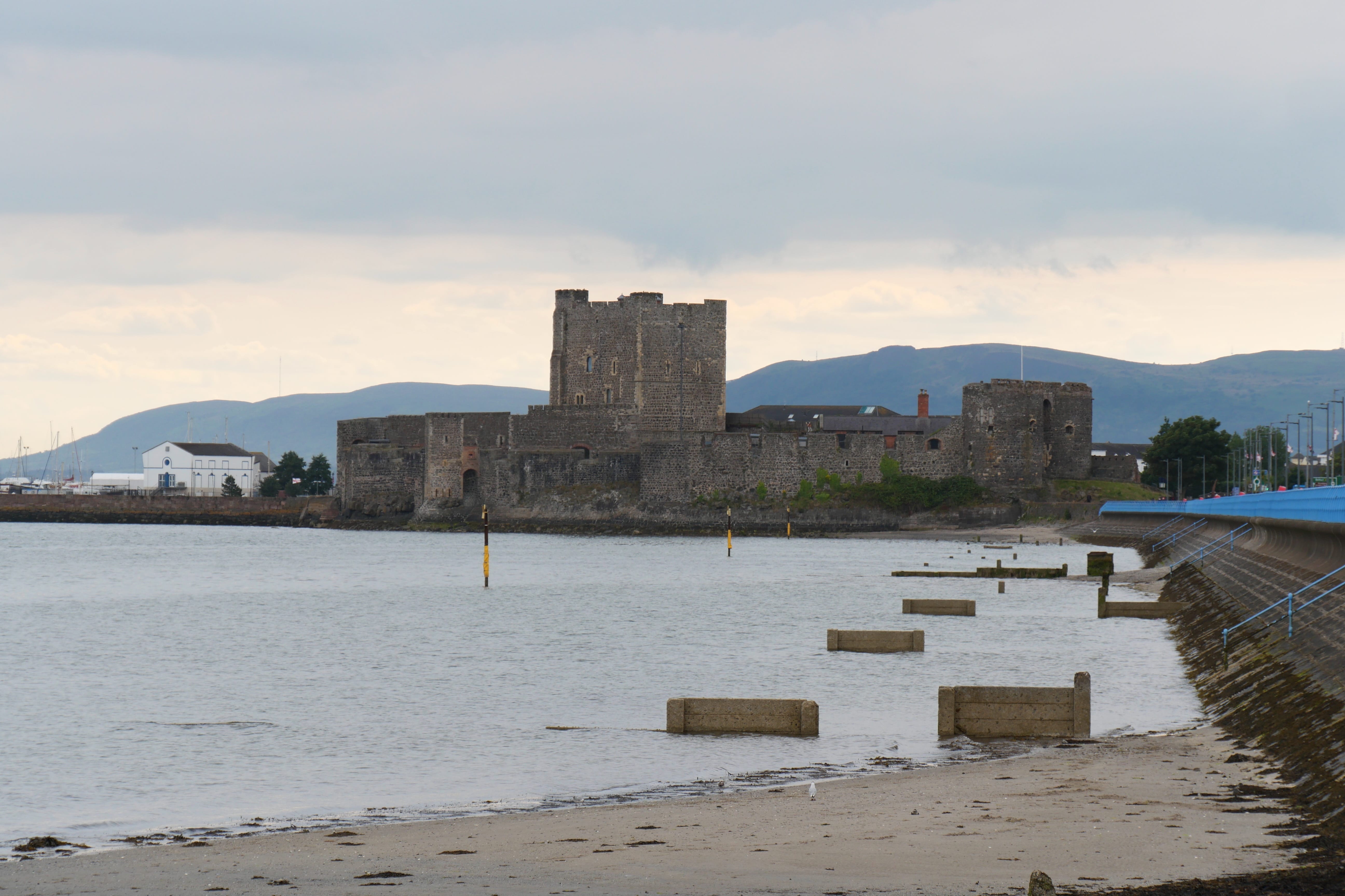 Dernier paysage de la journée avant d’arriver à Belfast, le château de Carrickfergus. Nous ne l’observerons que de loin, la journée ayant été longue et la visite n’étant plus possible à l’heure où nous y serons passés.