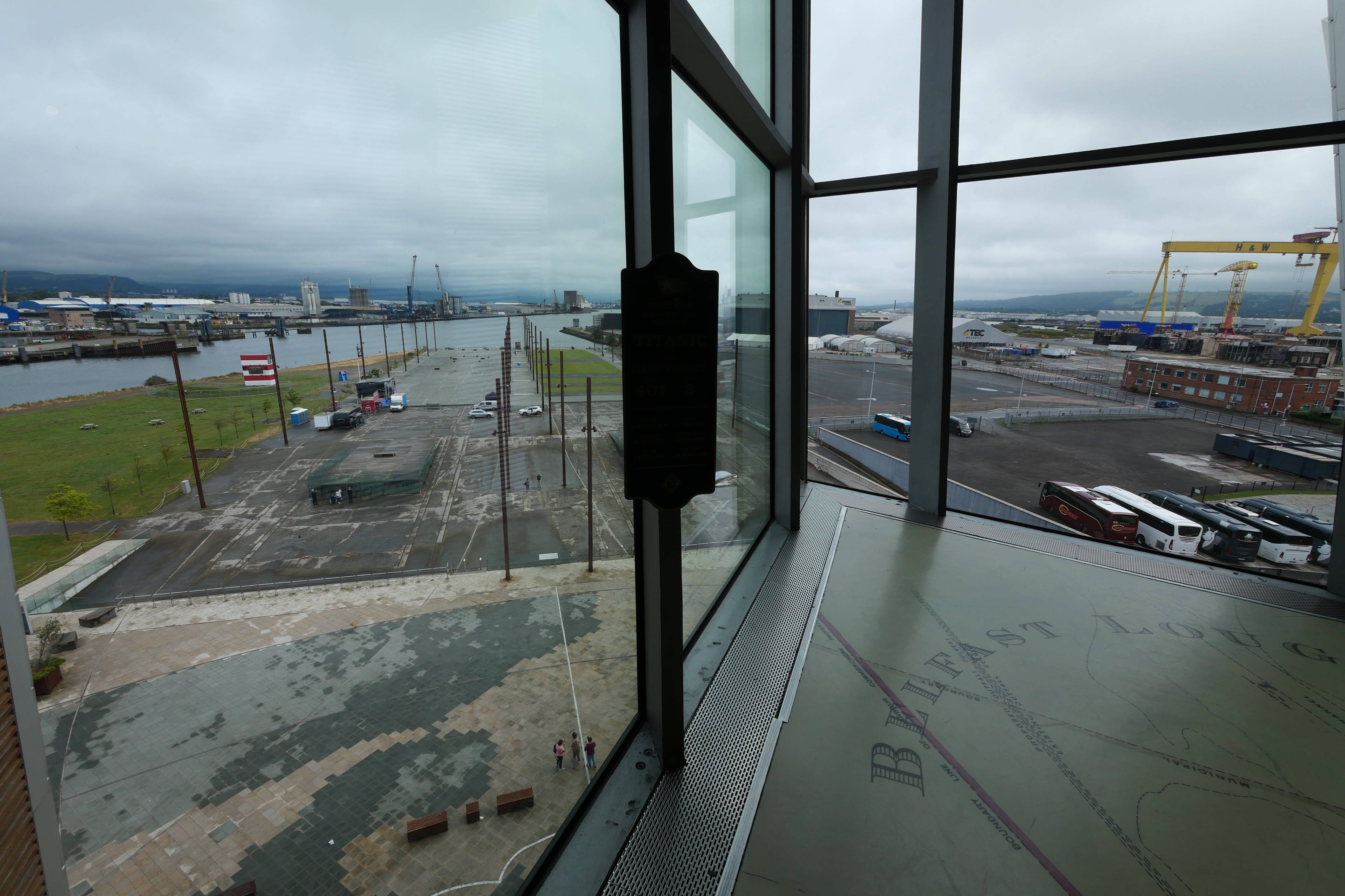 Finalement, malgré nos appréhensions, la visite en vaut vraiment la peine ! On commence par un étage consacré à l’histoire de Belfast, pour comprendre comment et pourquoi l’industrie du lin et du tabac s’est développée, et s’est transformée de plus en plus en industrie des chantiers navals. Des audioguides sont disponibles pour comprendre l’exposition mais nous ne pourrions pas vous en donner l’efficacité car nous nous sommes contentés de lire les panneaux qui étaient relativement clairs et intéressants. Nuance tout de même sur le format de la visite pour cette première partie, où malgré les départs groupés espacés de quelques minutes, et le fléchage pourtant bien fait au sol, nous nous retrouvons amassés à chaque panneau explicatif, sans jamais trouver un bon rythme. On arrive donc progressivement à la construction du chantier naval Harland and Wolff qui donnera naissance à de nombreux paquebots dont le célèbre Titanic, un géant des mers pour son époque. Une baie vitrée surplombant la place sur laquelle le musée a été construit, offre d’ailleurs une vue sur l’endroit exact où le bateau et son jumeau ont été assemblés au début du XXe siècle.