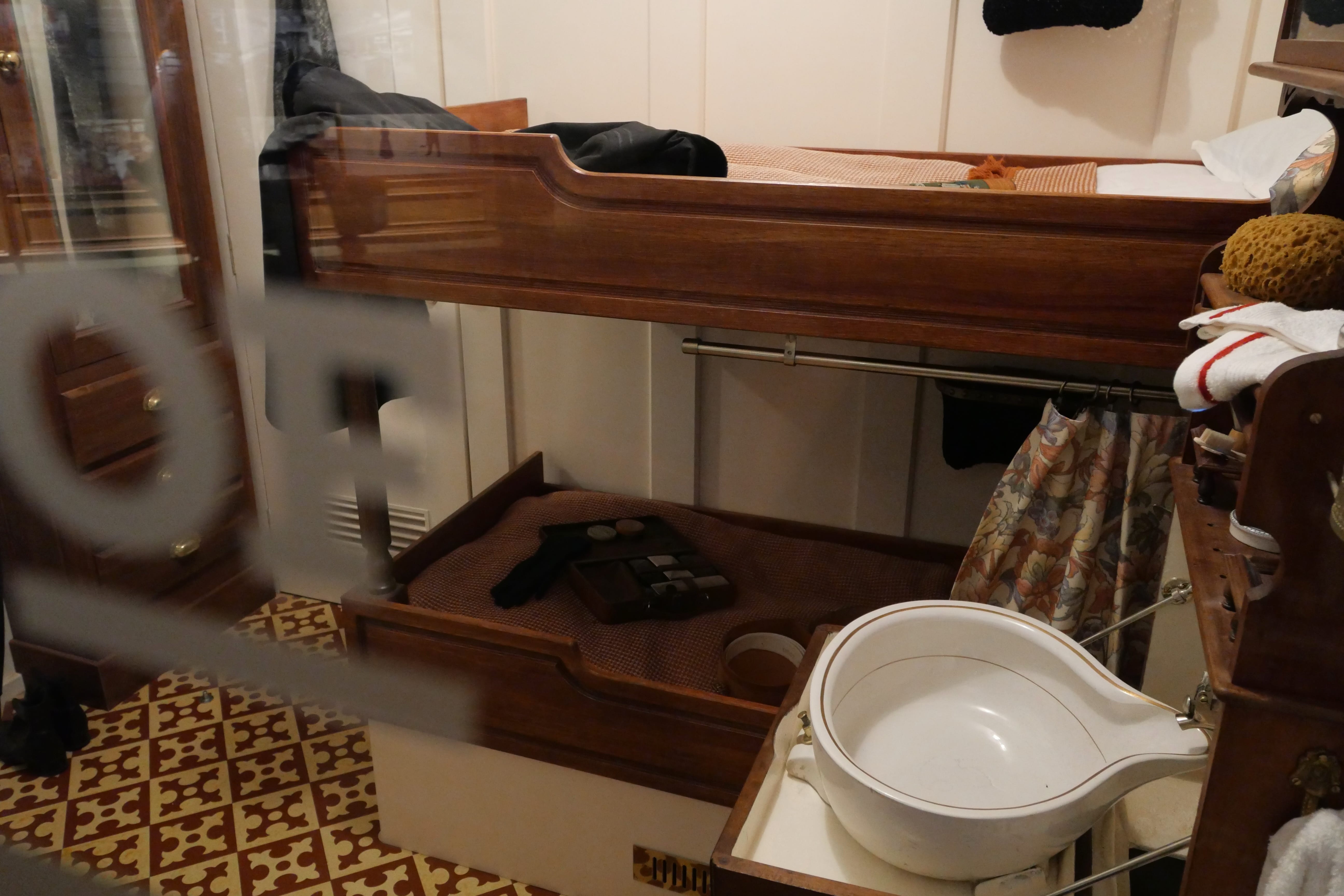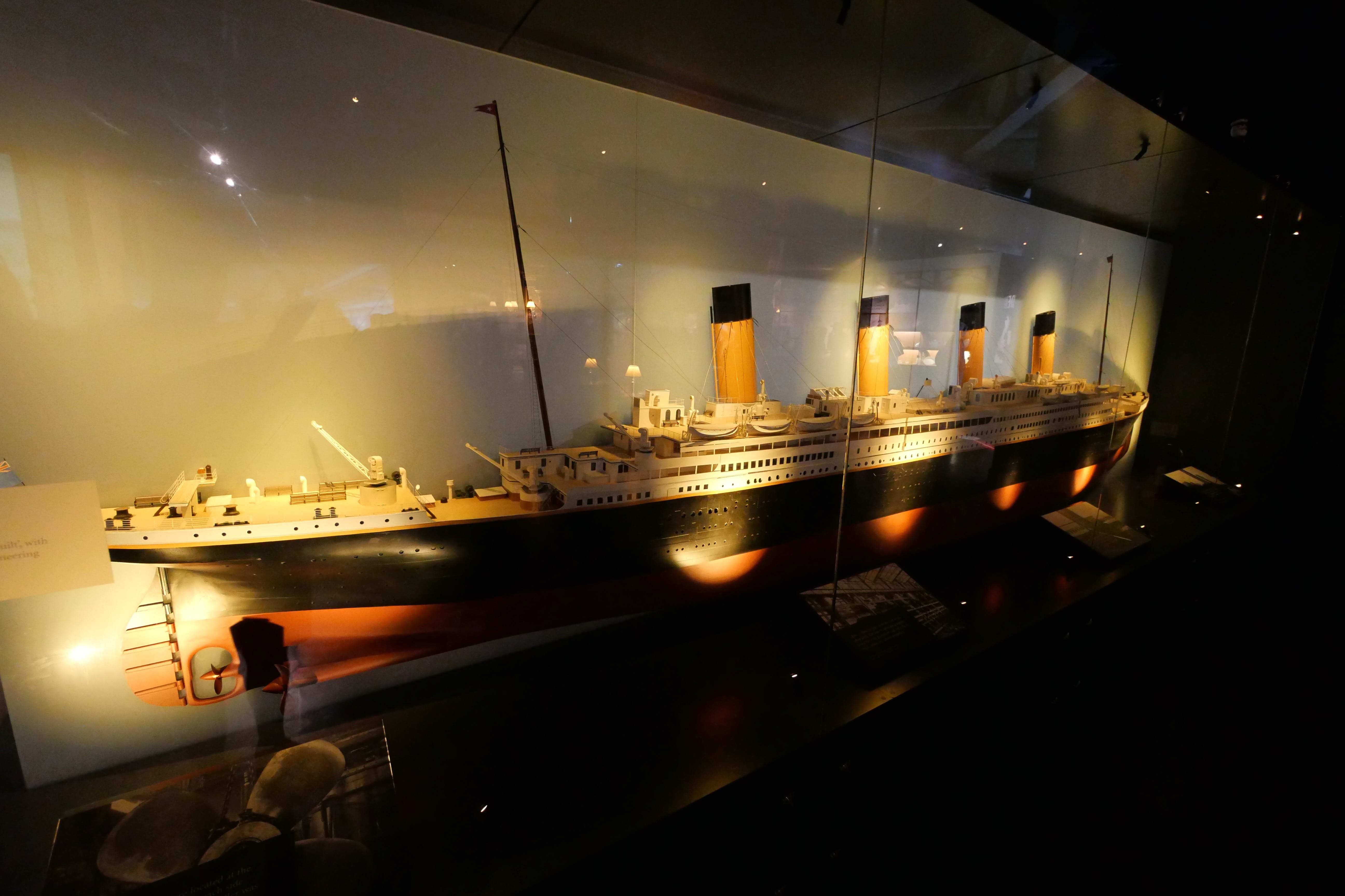 La dernière partie du musée est consacré au Titanic en lui-même, avec des reconstitutions de cabine, des explications plus précises sur sa construction, des objets et lettres ayant été retrouvés ou ressemblant à ceux qui avaient été choisis pour être utilisés à bord. Cette partie est beaucoup plus prenante et émouvante dans le sens où, c’est à ce moment-là que l’on se souvient de son destin tragique et qu’on en reprend pleinement conscience. Seule déception de cette visite, la non possibilité de faire une photo sur les fameuses marches que Rose descend dans le film. En effet, ces escaliers ont été reconstitués il y a quelques années, mais ce jour-là nous ne pouvions pas y accéder. Nous regrettons encore une fois, comme pour d’autres visites, que ces informations ne soient pas notifiées ni sur les sites internet sur lesquels nous réservons, ni à l’entrée des sites de visites. Même si cela ne remet pas toujours en cause notre venue, il serait préférable de pouvoir se préparer à certaines éventuelles déceptions et de faire les visites en totale connaissance de cause.