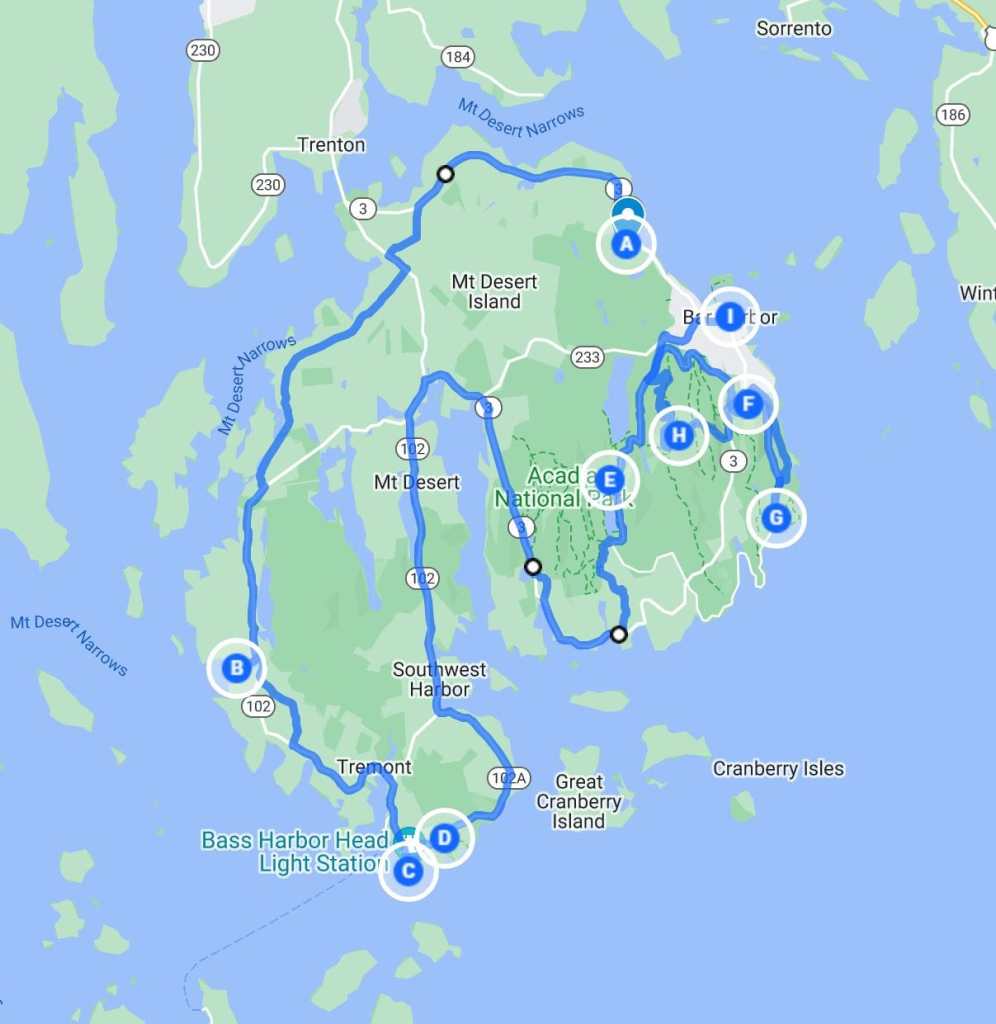 - A – Hulls Cove Visitor Center