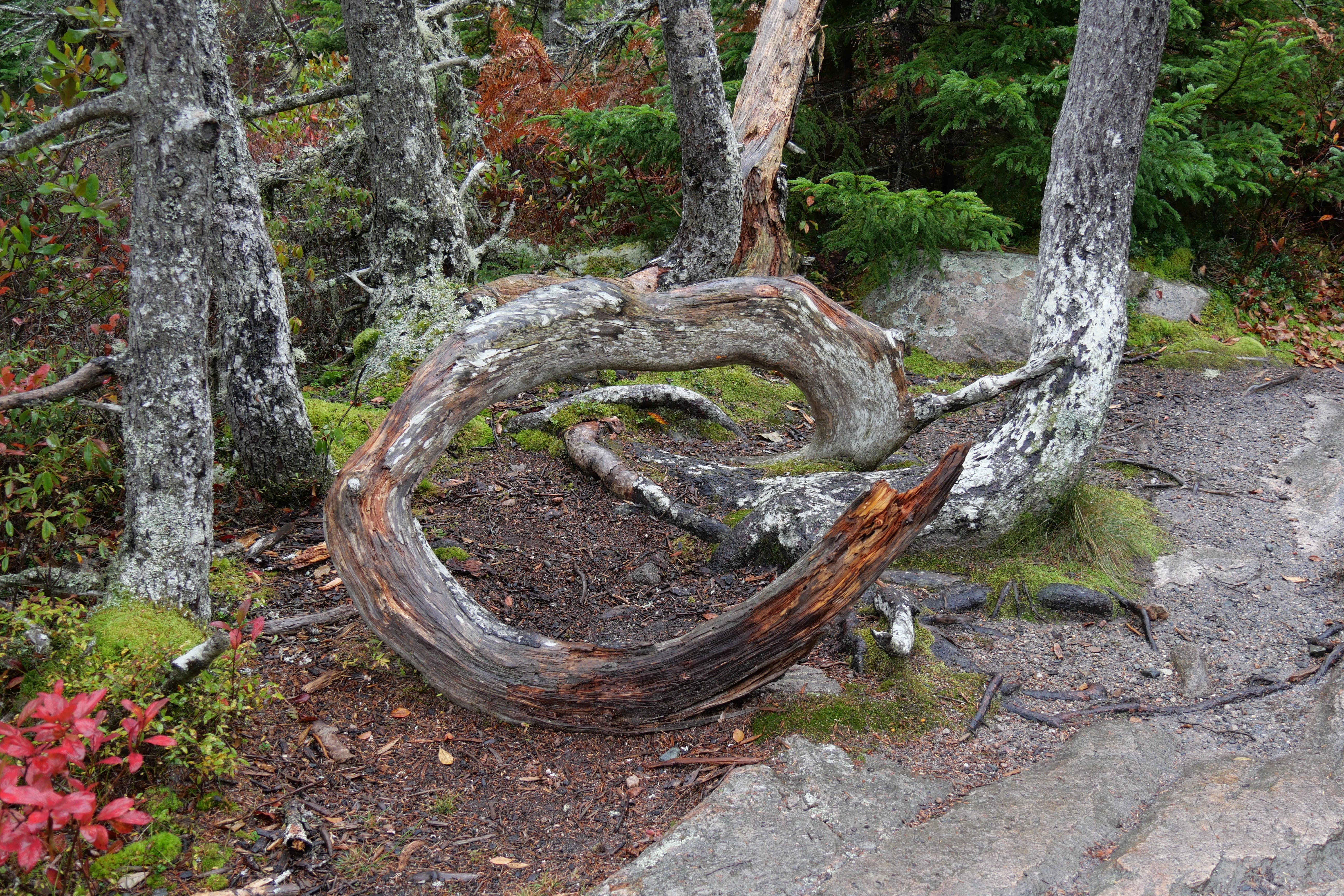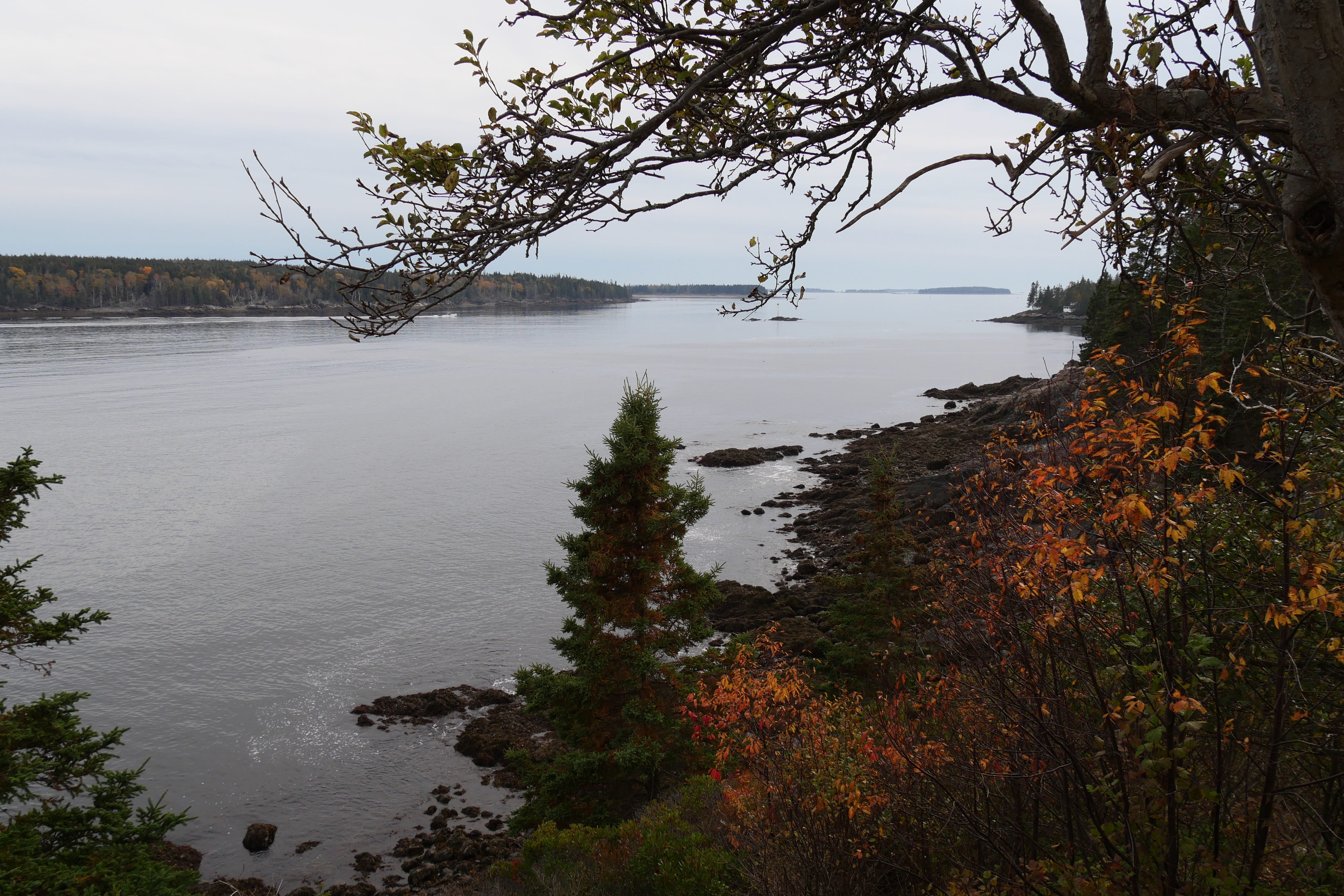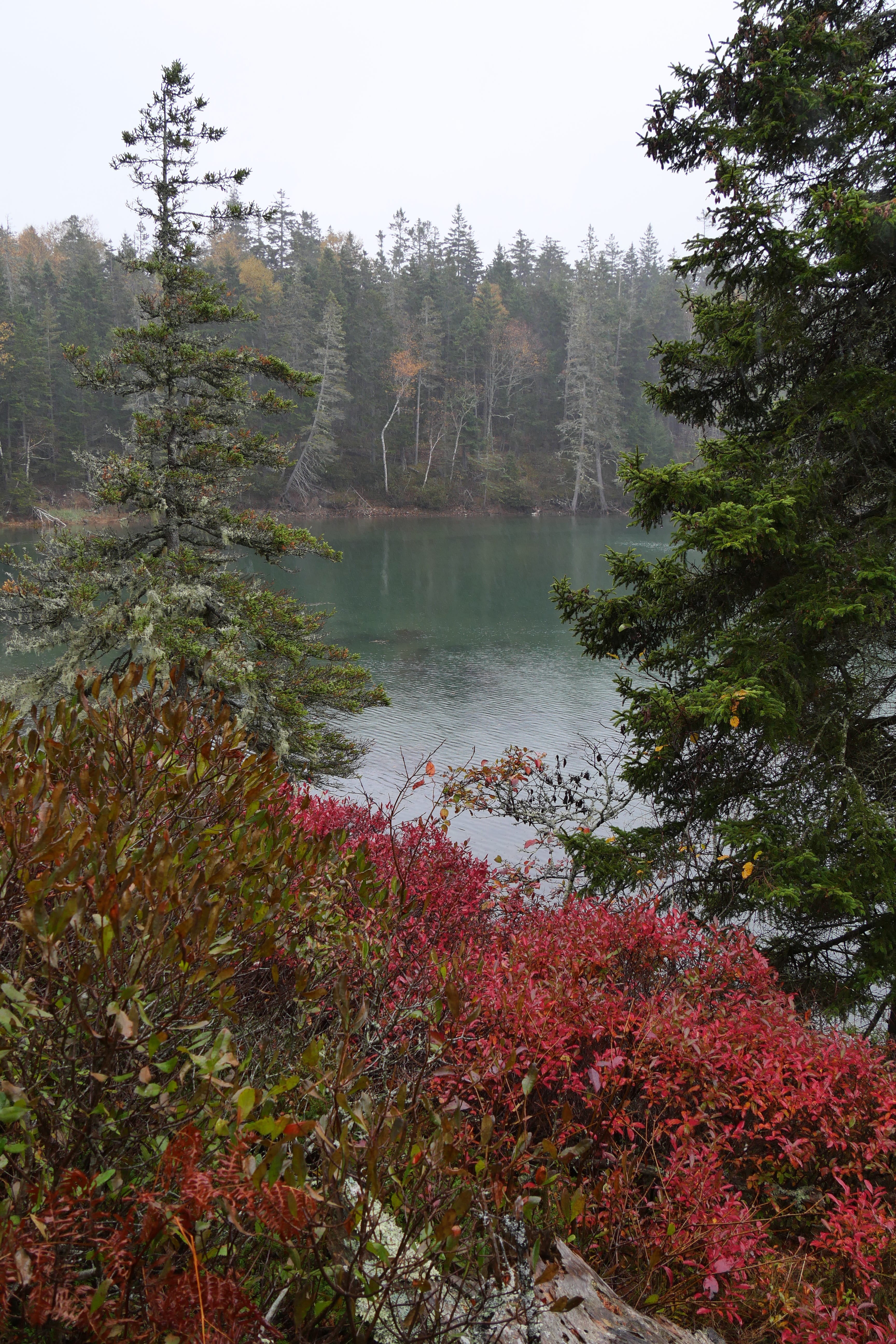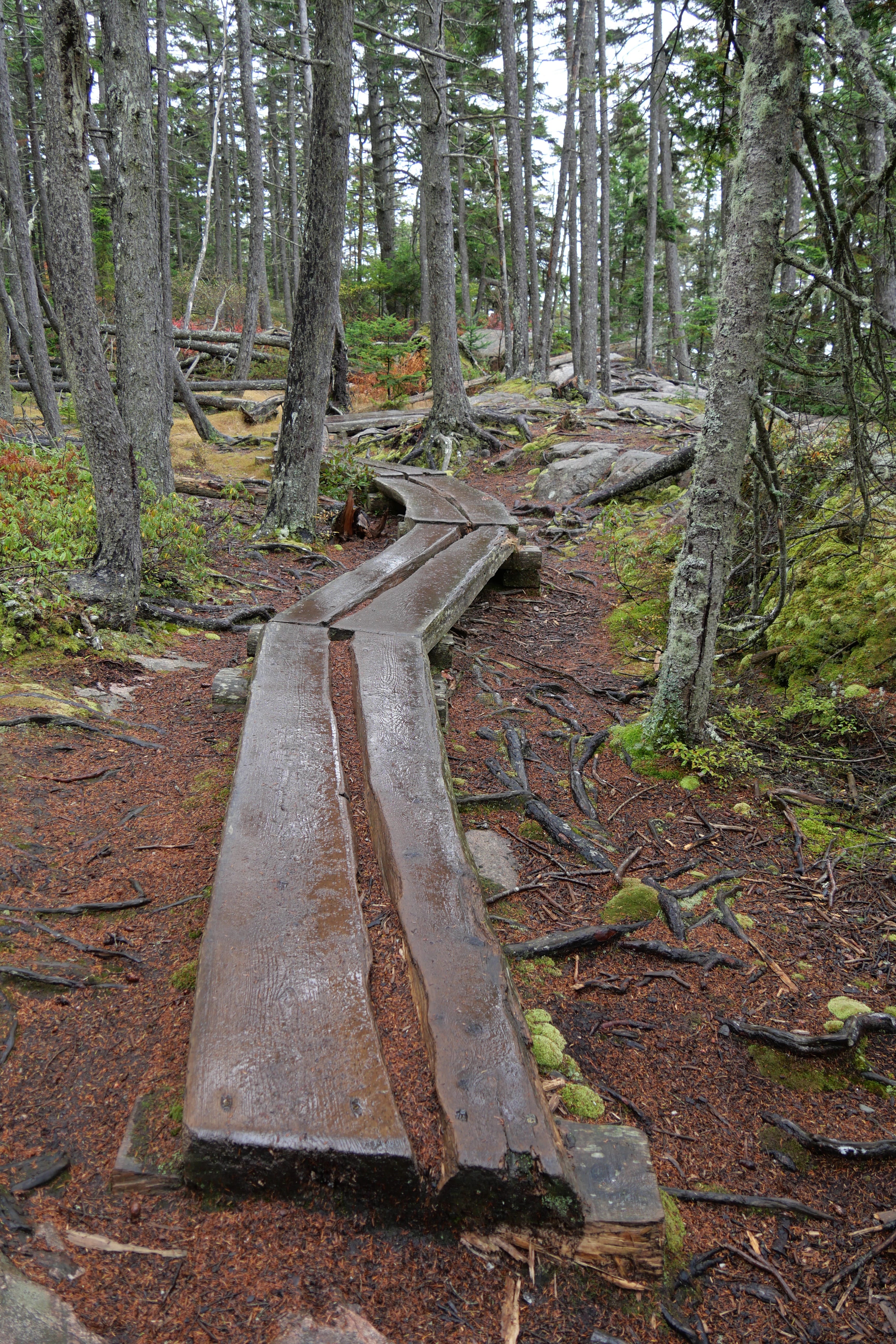 La ranger de l’accueil nous avait précisé que la zone au Sud d’Acadia n’était pas la plus jolie à faire en termes de randonnées/paysages, et qu’il est plus question de petites bourgades et de résidences secondaires que de départs de trails ou paysages particulièrement significatifs. On sort d’ailleurs du parc en y allant, même si l’on reste sur la presqu’île. Si l’on a hésité un peu, en sortant du Visitor Center, à maintenir cette boucle, nous l’avons quand même faite, et c’est tant mieux car cela aura été notre seule contact avec la faune locale, en l’occurrence des biches traversant le très sommaire chemin nous amenant tranquillement vers Seal Cove Picnic Area, sympathique, sans plus. Bass Harbor Head Light Station aura su maintenir l’ambiance humide de la journée en ne nous laissant qu’un court répit le temps de quelques clichés. C’est en faisant la petite randonnée de Ship Harbor Trail que nous passerons le meilleur moment de cette journée, quasiment seuls au monde sur ce petit sentier sinueux débouchant sur des plages de cailloux face à des étendues d’eau paisibles, ou se concluant au bord de l’Océan relativement animé ce jour là. La suite de la journée n’aura été que de partie remise en partie remise. Et encore aujourd’hui, on a un peu du mal à cacher notre frustration lorsque l’on pense à ce que l’on a manqué, faute de visibilité, et ça n’aura pas été faute d’essayer.