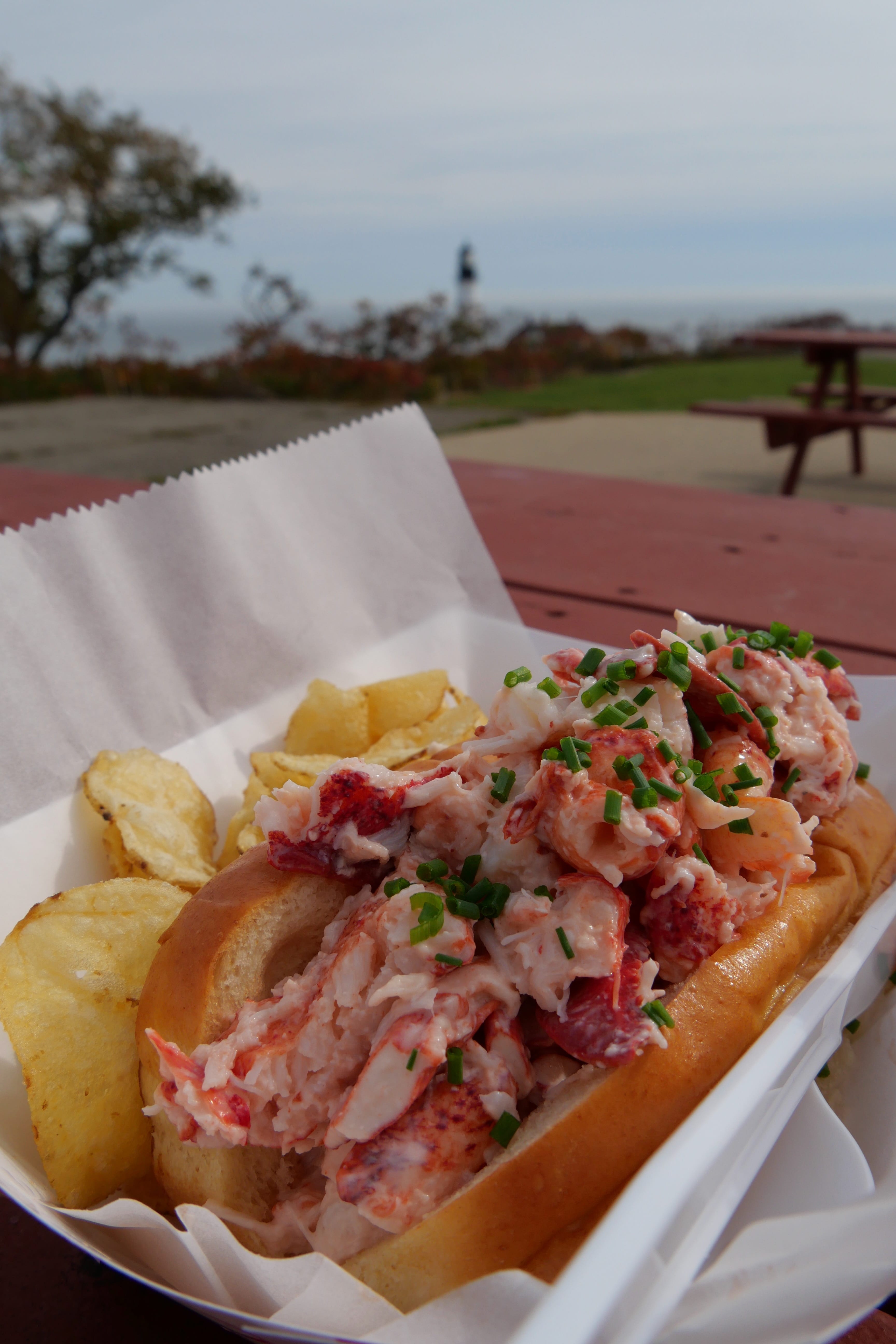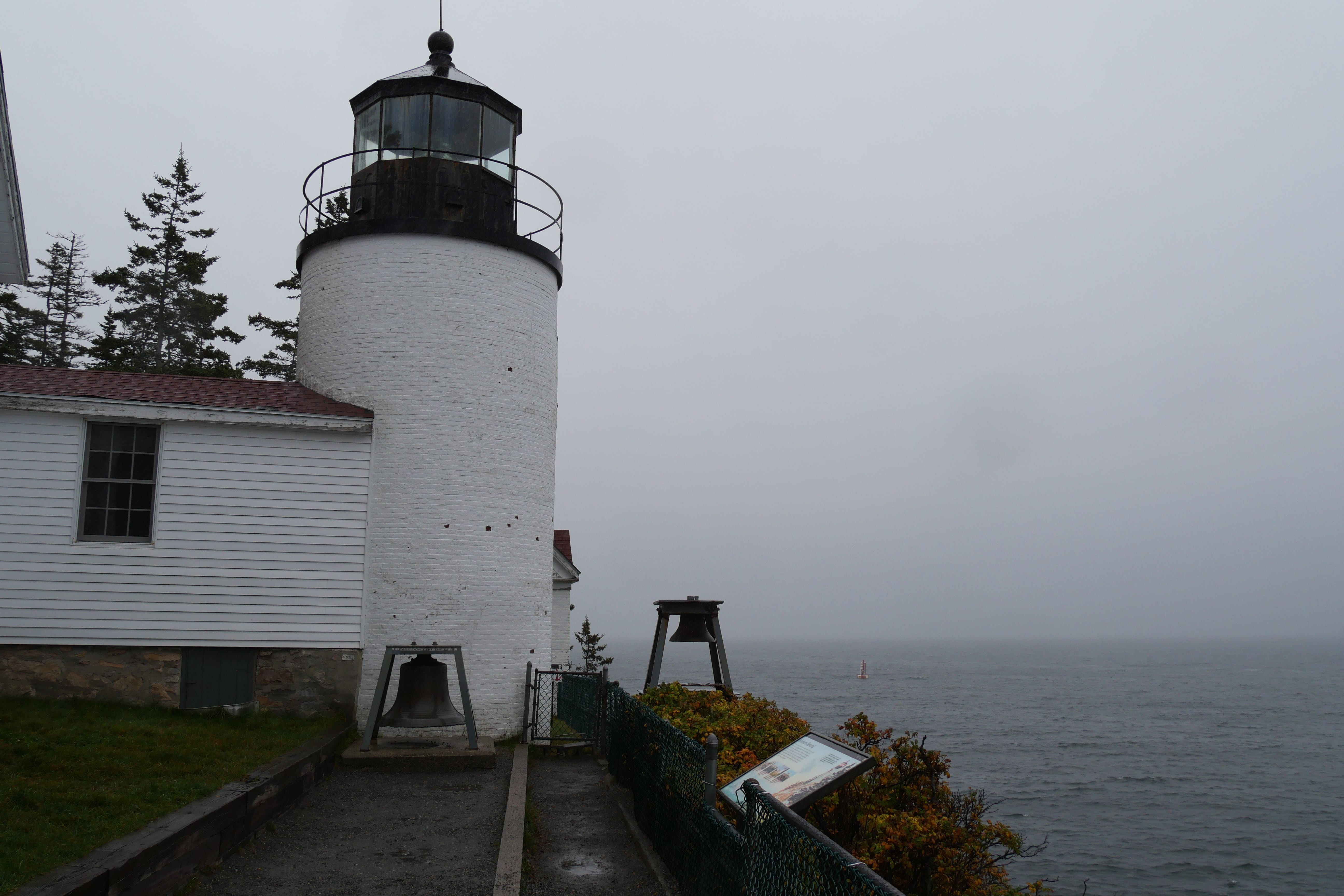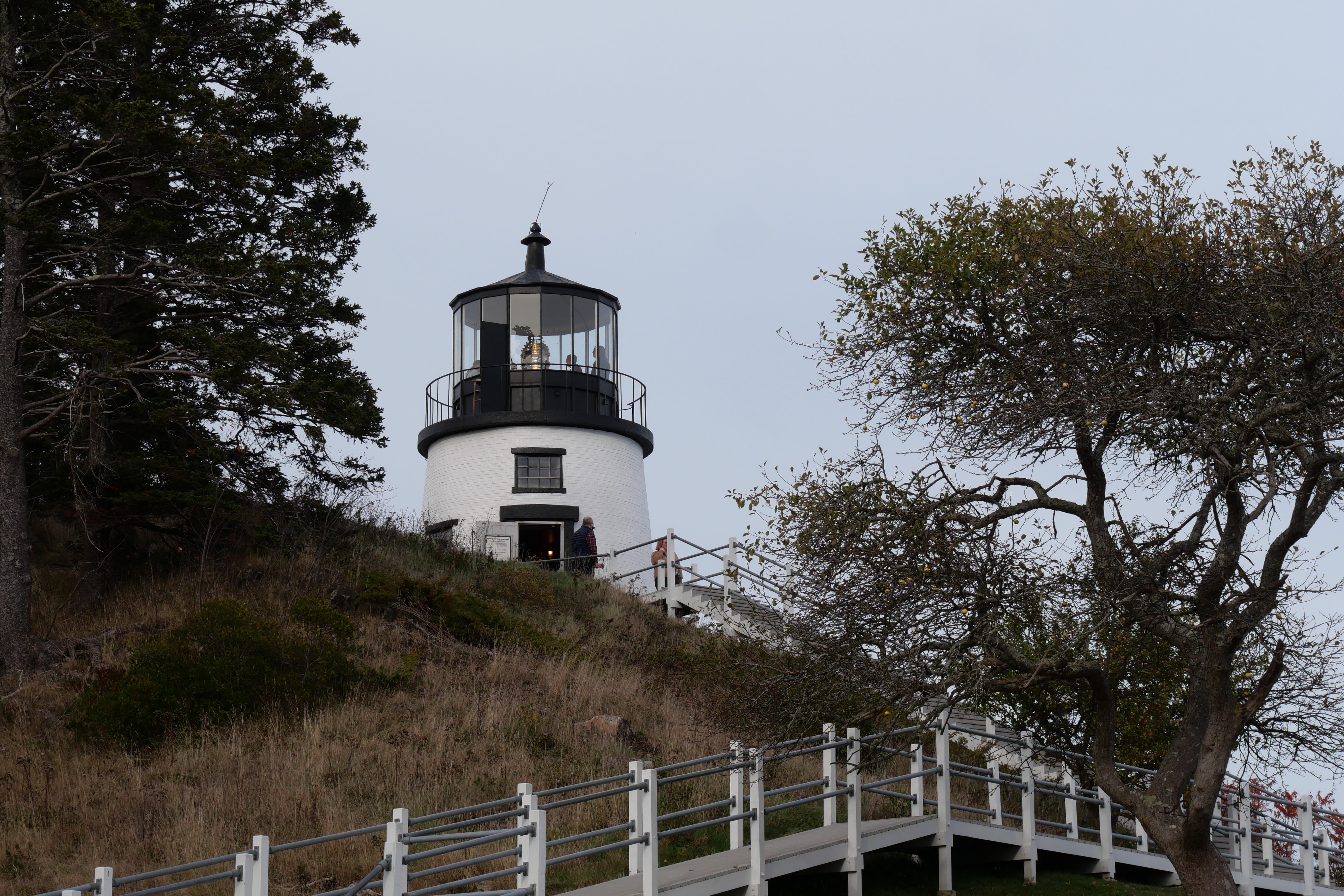 Ce premier arrêt sera l’occasion pour nous de goûter à l’une des spécialités du Maine, le homard, décliné ici en sandwich froid, tout en profitant d’un doux soleil et d’une belle vue en surplomb sur le phare. L’arrêt vaut clairement le détour, entre le tour du phare bien accessible à pied, la belle vue sur le littoral, les îles non loin ainsi que le phare de Ram faisant face à Portland Head. A noter également qu’une inscription mentionne le naufrage d’un navire à cet endroit en 1886, le Annie C. Maguire. On reprend ainsi la route, vers d’autres phares, principales attractions de ce littoral. On passera ainsi un court instant à contempler le Bug Light Park, avant de faire une pause un peu plus marquée pour celui de Owls Head, dans lequel nous aurons d’ailleurs l’occasion de monter après une courte marche tranquille entre le parking et la maison du phare. On appréciera de pouvoir apercevoir de plus près ces énormes lampes dont nous n’imaginions pas que la chaleur dégagée était aussi importante. Nous poursuivrons notre route, Elle, n’hésitant pas à faire une petite sieste tandis qu’Il ne cessait de s’émerveiller des ces choses simples parsemant l’itinéraire, nous faisant ressentir que ce RoadTrip était bel et bien lancé. Arrivés à Otis, nous découvrirons un mode de vie un peu différent de celui que l’on connaît, pas forcément dans l’habitat en lui-même, mais plutôt dans le degré d’isolement et d’autarcie de cette partie des Etats-Unis. La météo se gâtait, et l’on verra plus tard que ce n’était que le début, malheureusement.