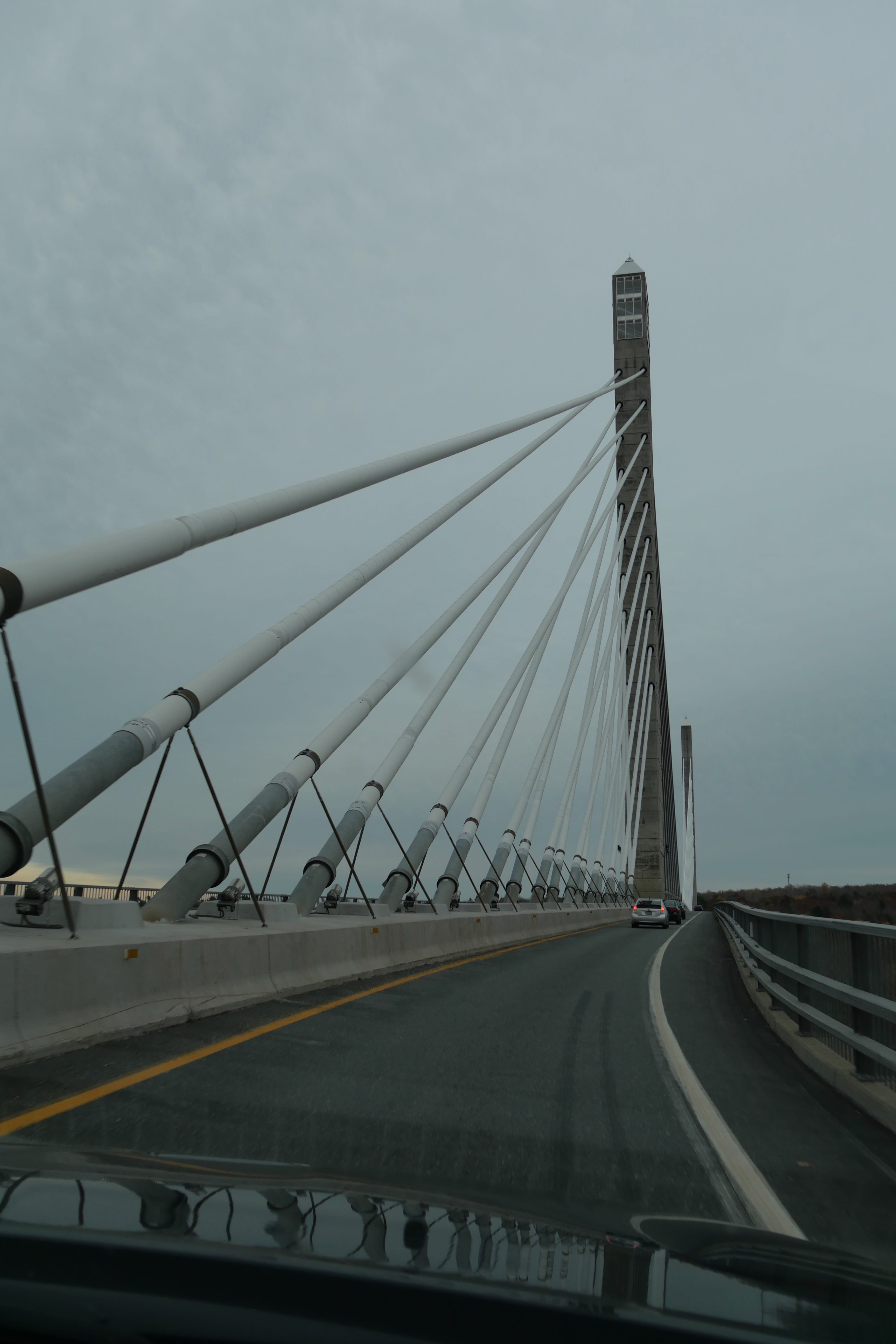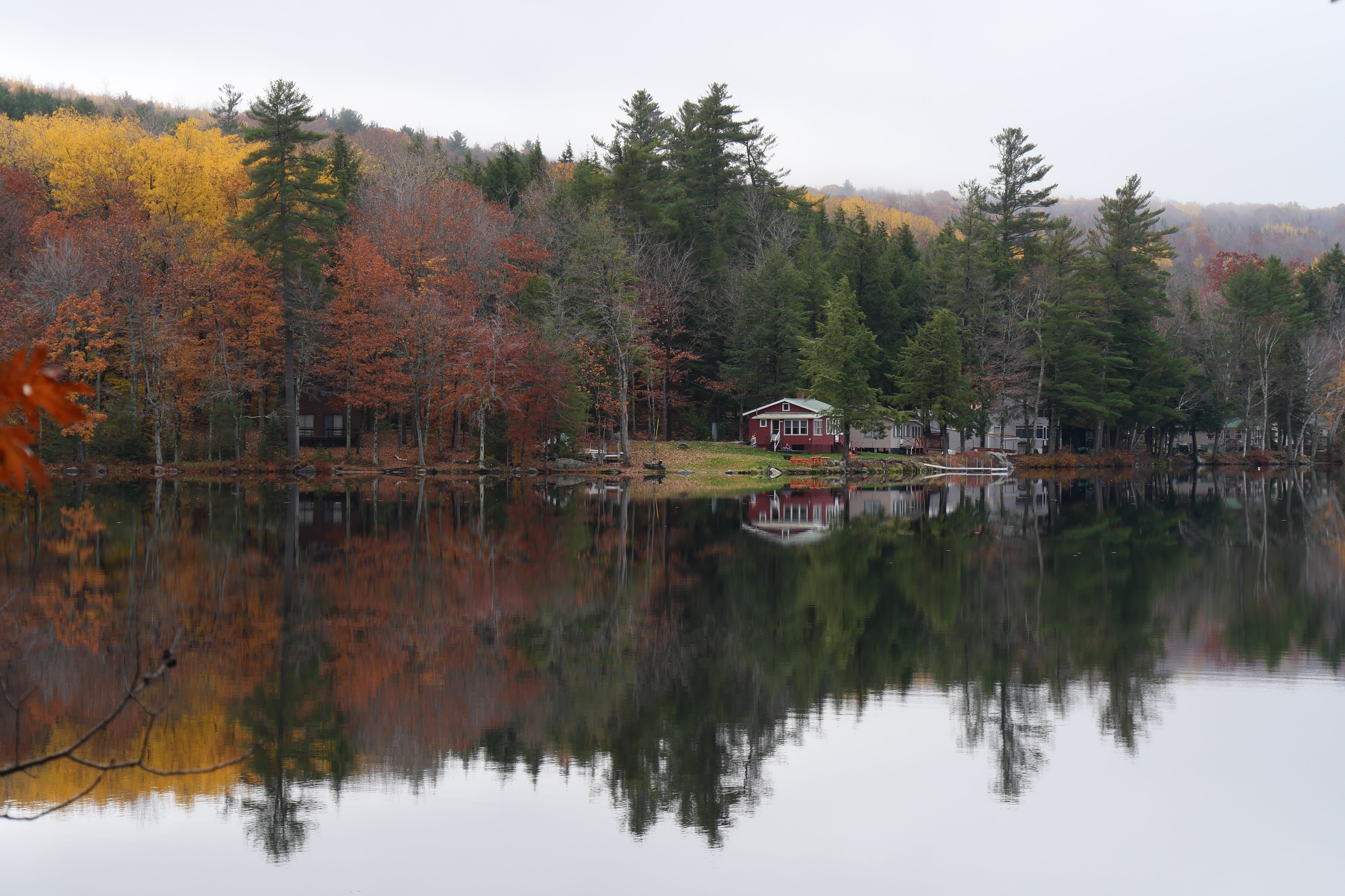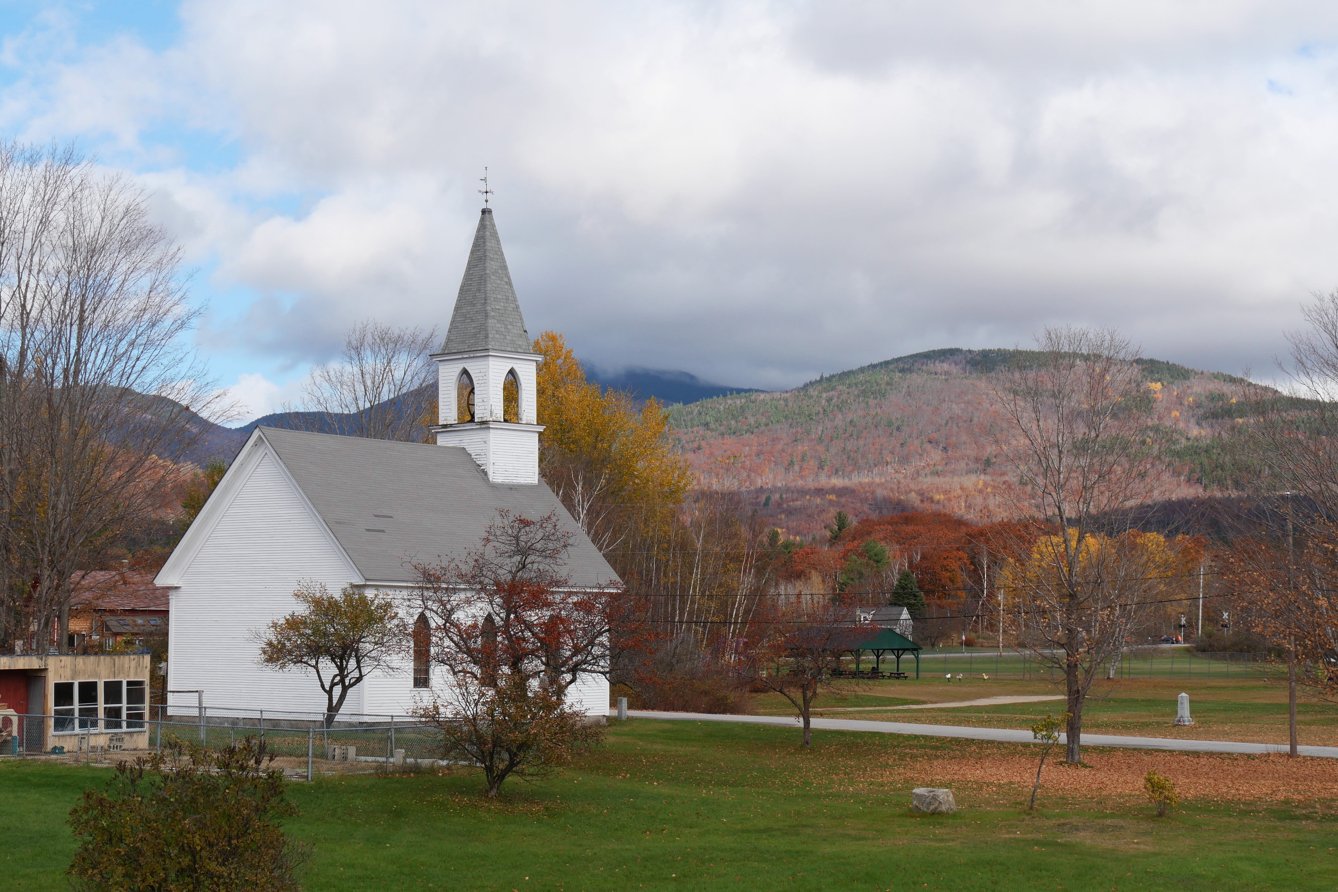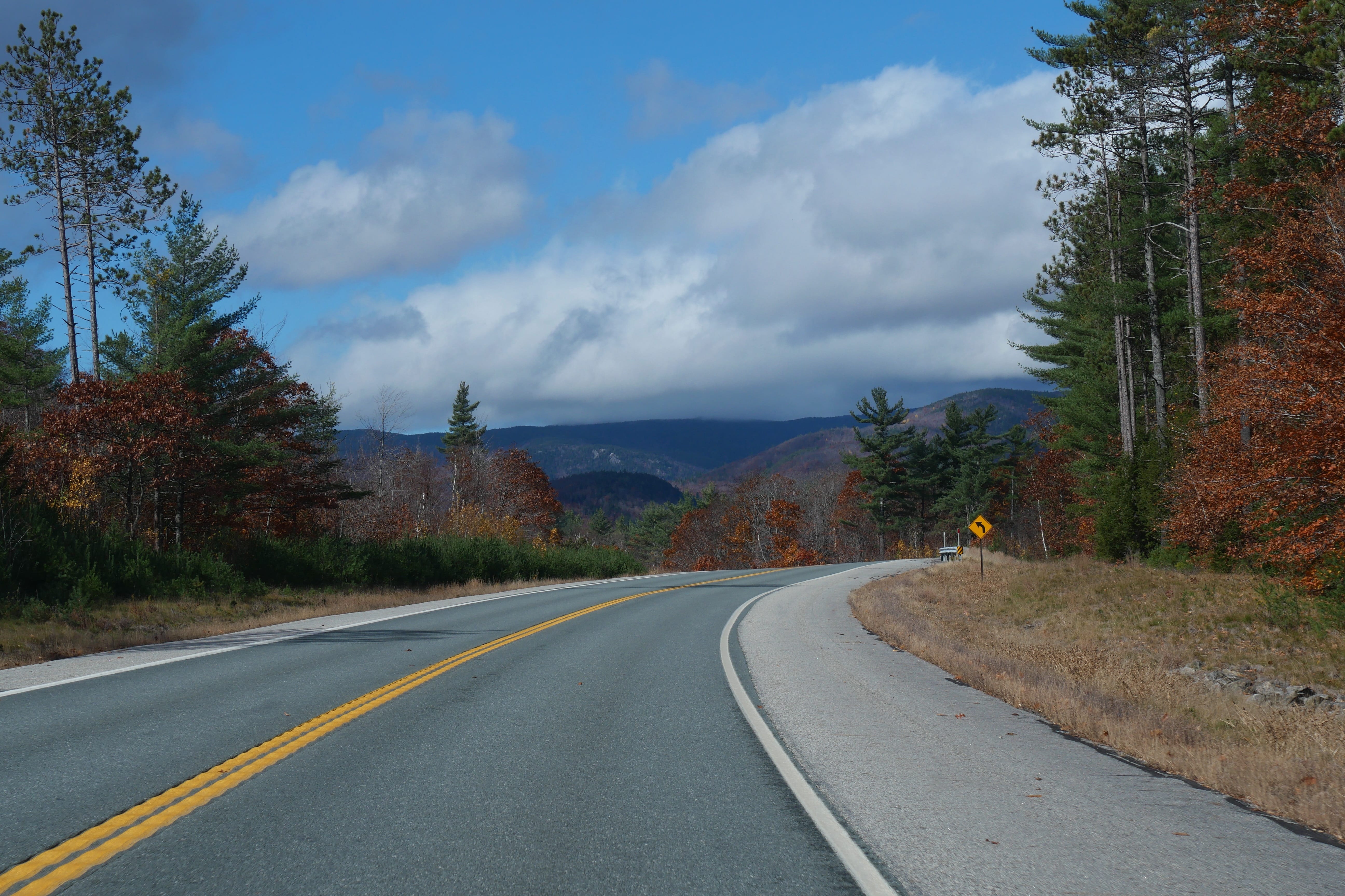 Rentrés prématurément à la chambre la veille, nous en avons profité pour revoir une partie du voyage, et c’est donc directement vers les White Mountains que nous avons pris la route. Plus que jamais, cela aura été un vrai plaisir de parcourir ces routes en pleine nature, en cette fin d’automne, enchaînant lacs miroirs et petites bourgades reculées avec vallées et montagnes imposantes. C’est d’ailleurs l’une d’entre elles, le Mont Washington (1917m), que nous admirerons d’en bas, la route vers le sommet étant fermée pour l’hiver. A noter que nous avons tout de même eu la chance qu’il se dévoile le temps de quelques kilomètres, avant que le brouillard ne finisse par envelopper à nouveau toutes les pointes alentours.