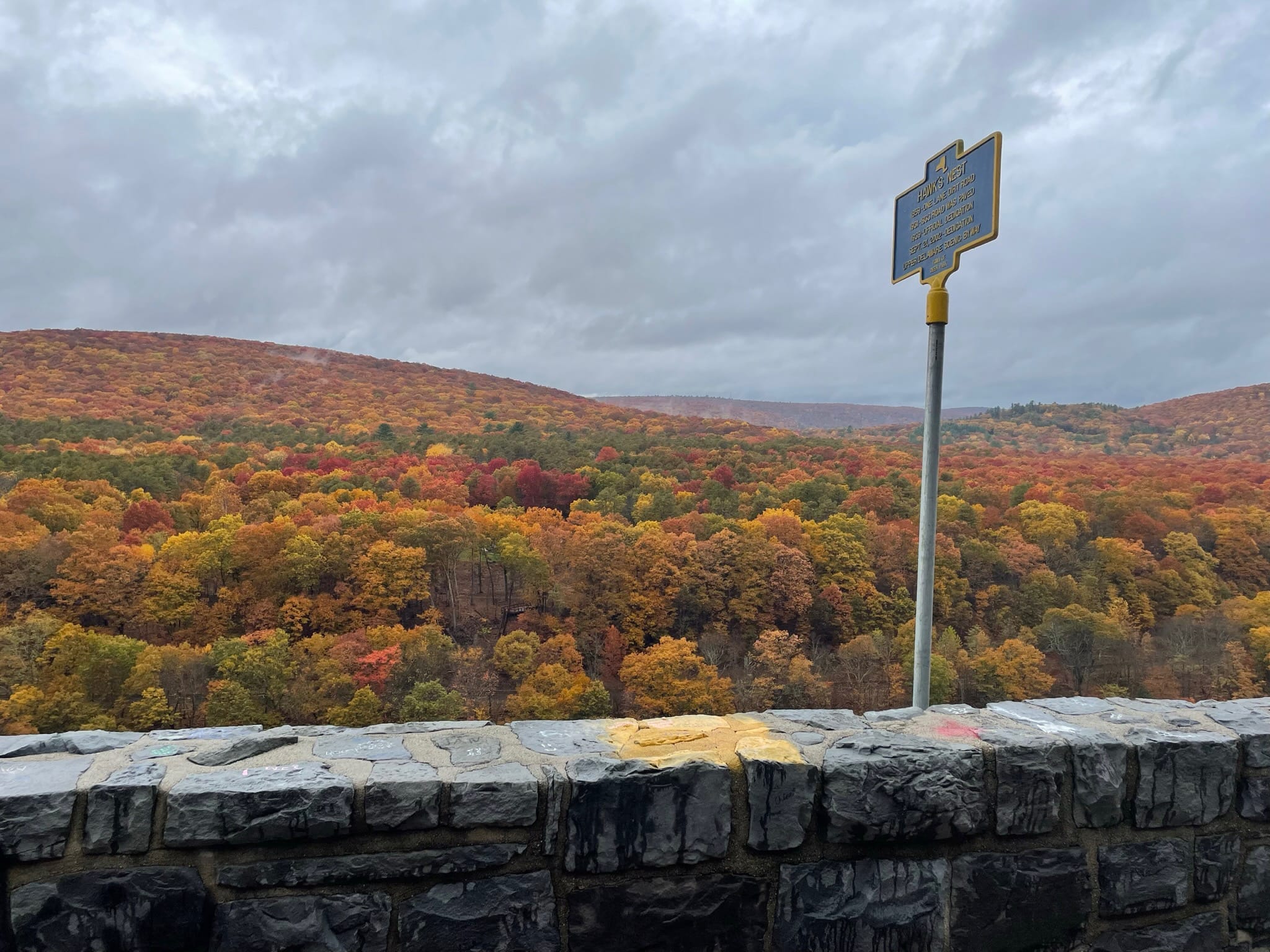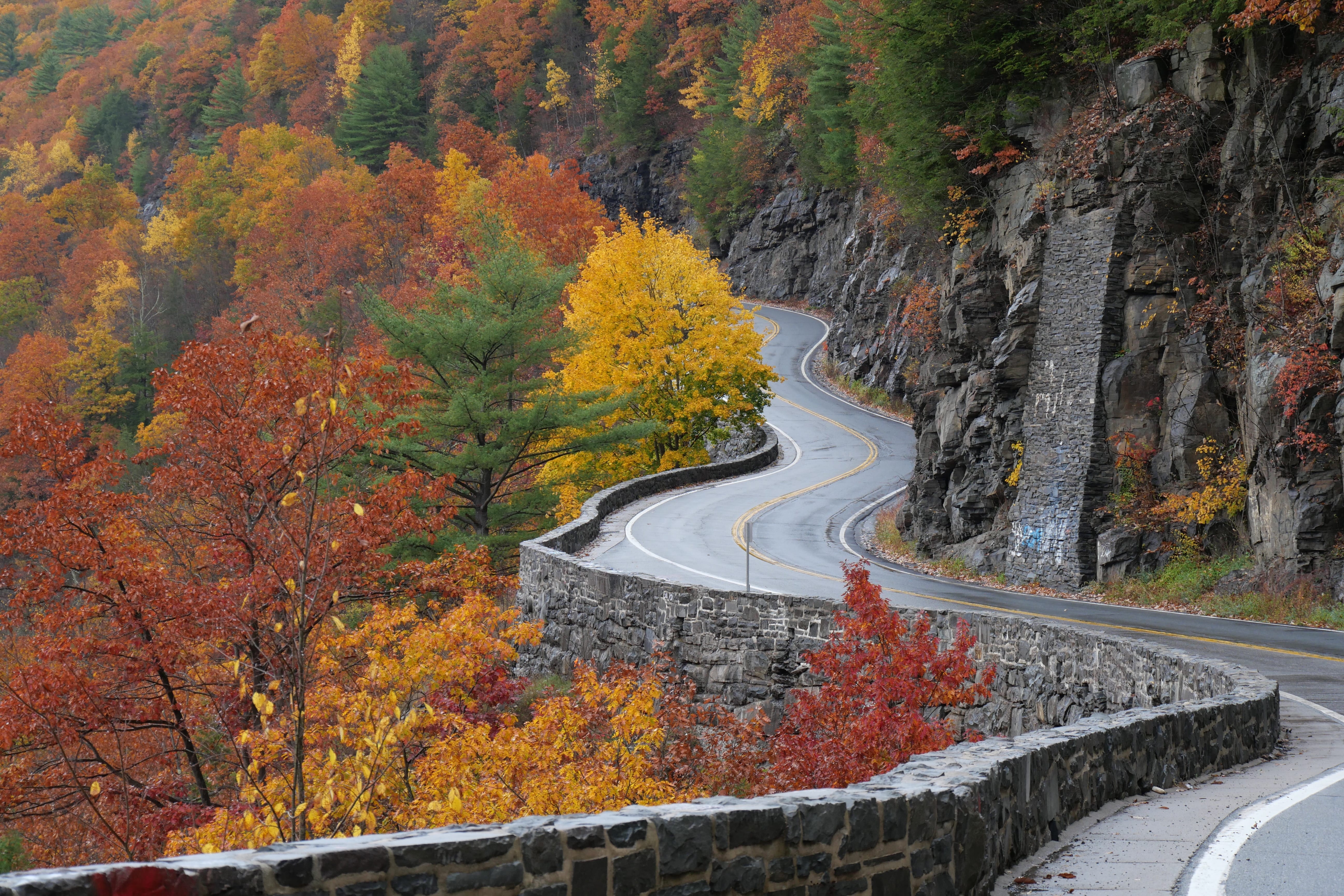 L’arrêt suivant est un arrêt un peu particulier. De ceux dont parfois nous ne nous souvenons plus d’où nous en avions entendu parler, mais qui semblent se rappeler à vous comme par magie, histoire que vous ne les oubliez pas en route. Hawks Nest Lookout dans l’état de New York est un peu de ceux-là. Il s’agit finalement d’une route panoramique surplombant le fleuve Delaware, dont la particularité est surtout cet enchevêtrement de lacets qui offrent un magnifique cliché. Nous l’avions découverte, soit sur une image aléatoire défilant sur nos ordinateurs en fonds d’écran, soit en parcourant les différents blogs de voyage nous permettant de composer à l’origine nos voyages. Le détour pour y aller n’était finalement pas si terrible, et après 8h de route, on n’est clairement plus à 15 minutes près. Notre conseil reste tout de même de ne pas oublier qu’il s’agit d’une route qu’emprunte un grand nombre de locaux, qui, même s’ils restent prudents en connaissance de cause, n’ont pas besoin de touristes plantés au milieu de la chaussée pour faire le cliché parfait. Faites donc bien attention si vous vous y arrêtez, et n’hésitez pas à prendre le temps de contempler la vue panoramique qui s’offre à vous et qui n’a rien à envier à toutes celles que nous avions pu voir jusque là.