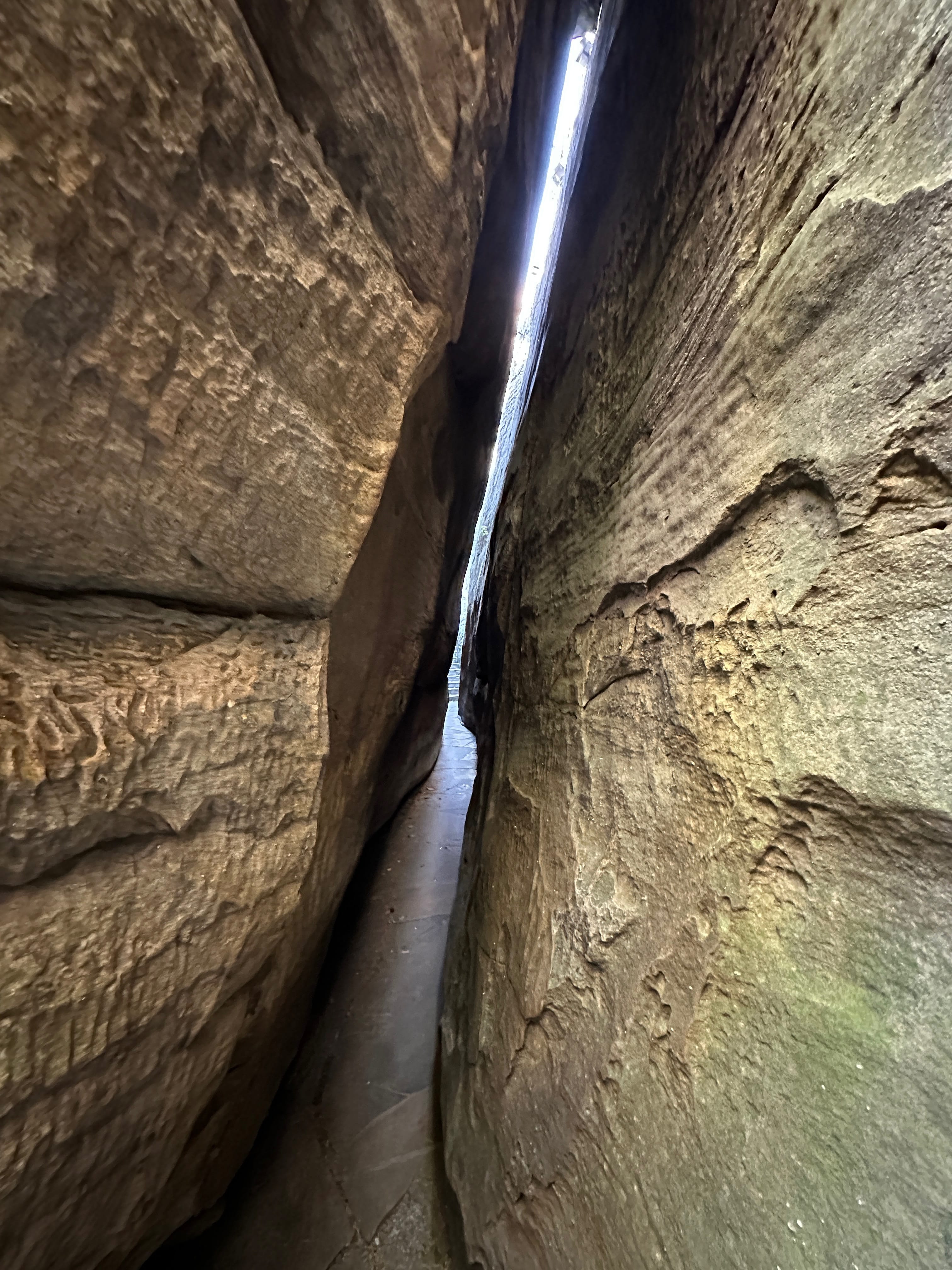 Le lendemain matin, c’est l’Historic Tour de Mammoth Cave que nous avions réservé ($20/personne). Ici, pas de possibilité de découvrir les grottes sans visite guidée, pour d’évidentes raisons de sécurité. Comme nous l’a très bien expliqué notre guide, tous les tunnels n’ont pas encore été répertoriés et des découvertes ont encore lieu chaque année lors d’expéditions. Nous en apprendrons davantage sur le parc en lui-même, ce qui sera probablement la plus intéressante facette de cette visite. De notre point de vue, si l’espace au sein de ce réseau de grottes est impressionnant, et si certains passages de notre visite étaient ludiques, nous avons été un peu déçus par la relative austérité liée directement à la nature de la roche et des sols. Ici, très peu voire pas d’infiltration d’eau (en raison de la composition du sol en elle-même – roche calcaire poreuse recouverte de schiste argileux imperméable et d’une couche de grès résistant à l’érosion), donc pas de stalactites, pas de belles formations calcaires, simplement des volumes plus ou moins impressionnants, et la trace, par ci par là, du passage de tous ceux ayant contribué à la création ou à l’entretien de ces circuits ainsi que de ses premiers visiteurs. Il semblerait que certains tours guidés mettent en valeur d’autres formations plus riches, au détriment d’autres passages que nous avons fait, il faut donc sûrement ajuster le choix en fonction de ce que vous souhaitez voir absolument.
