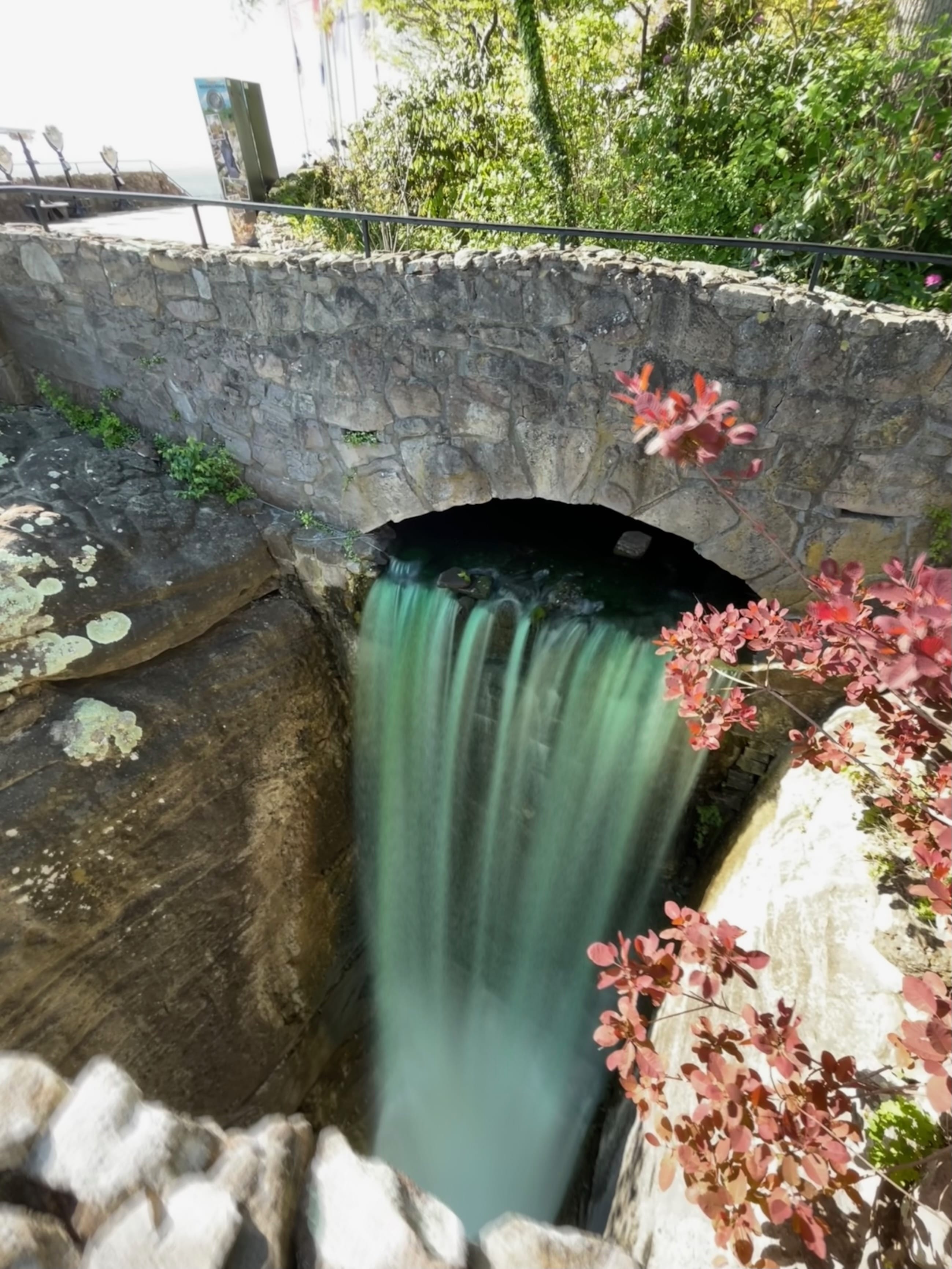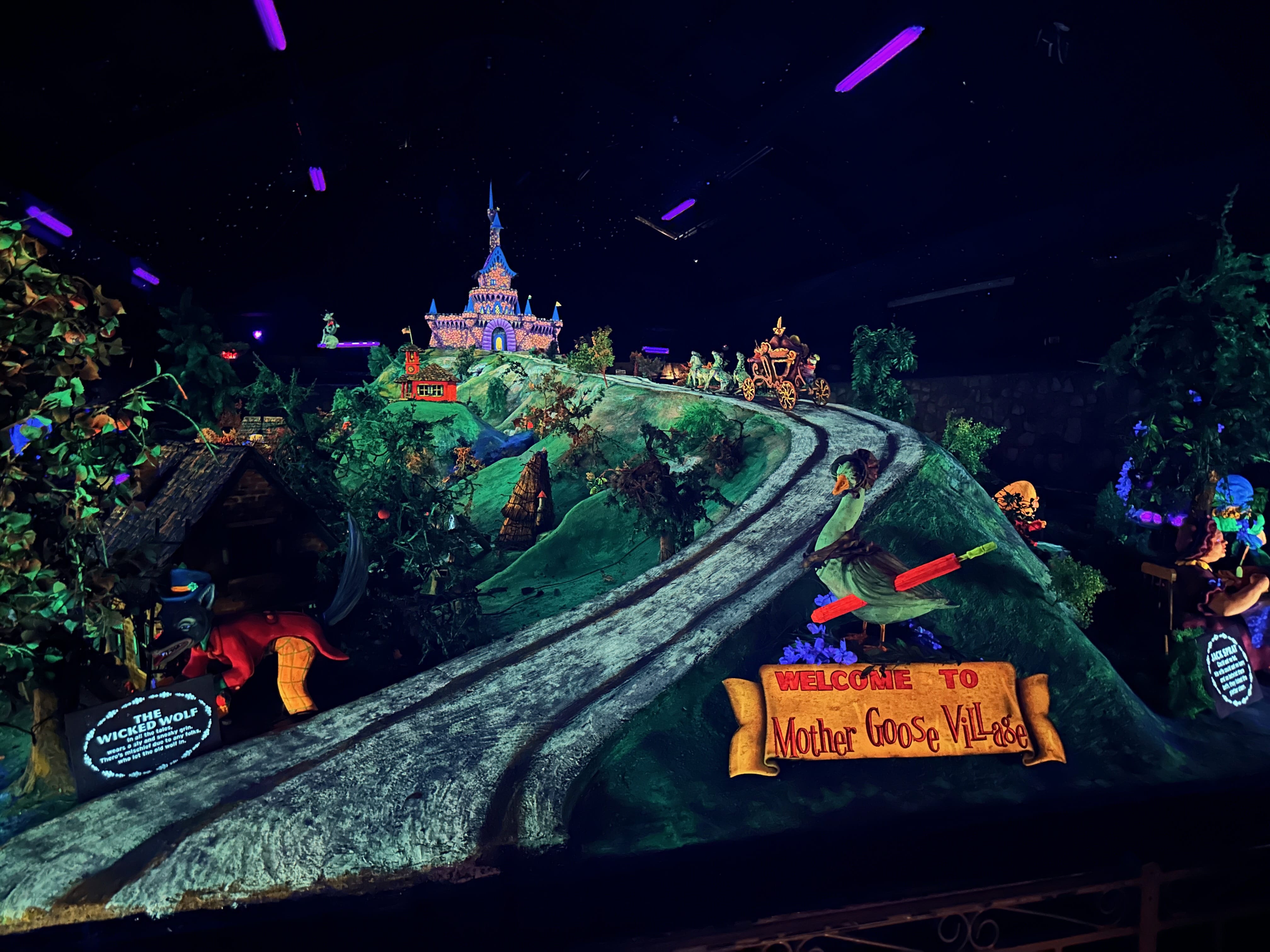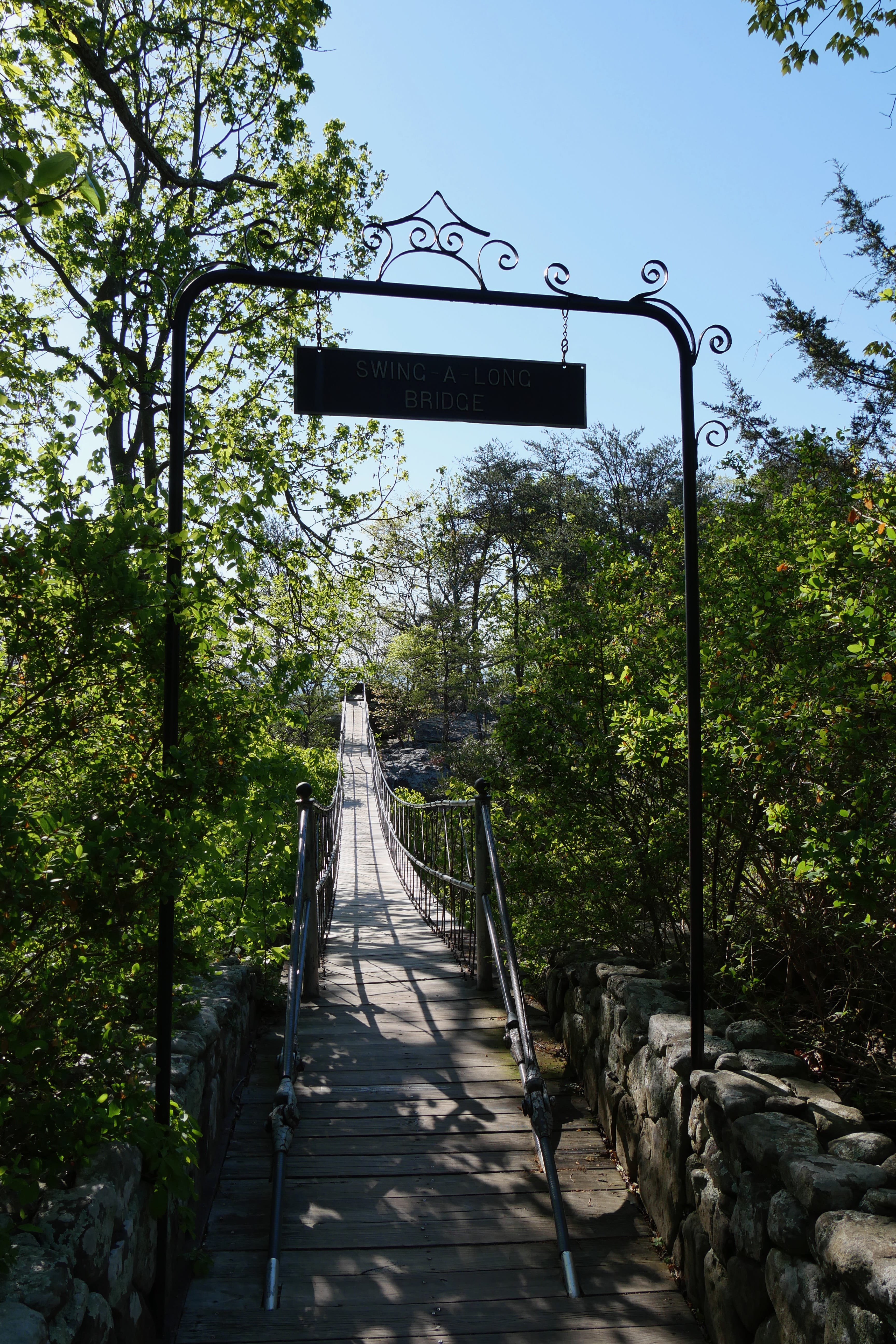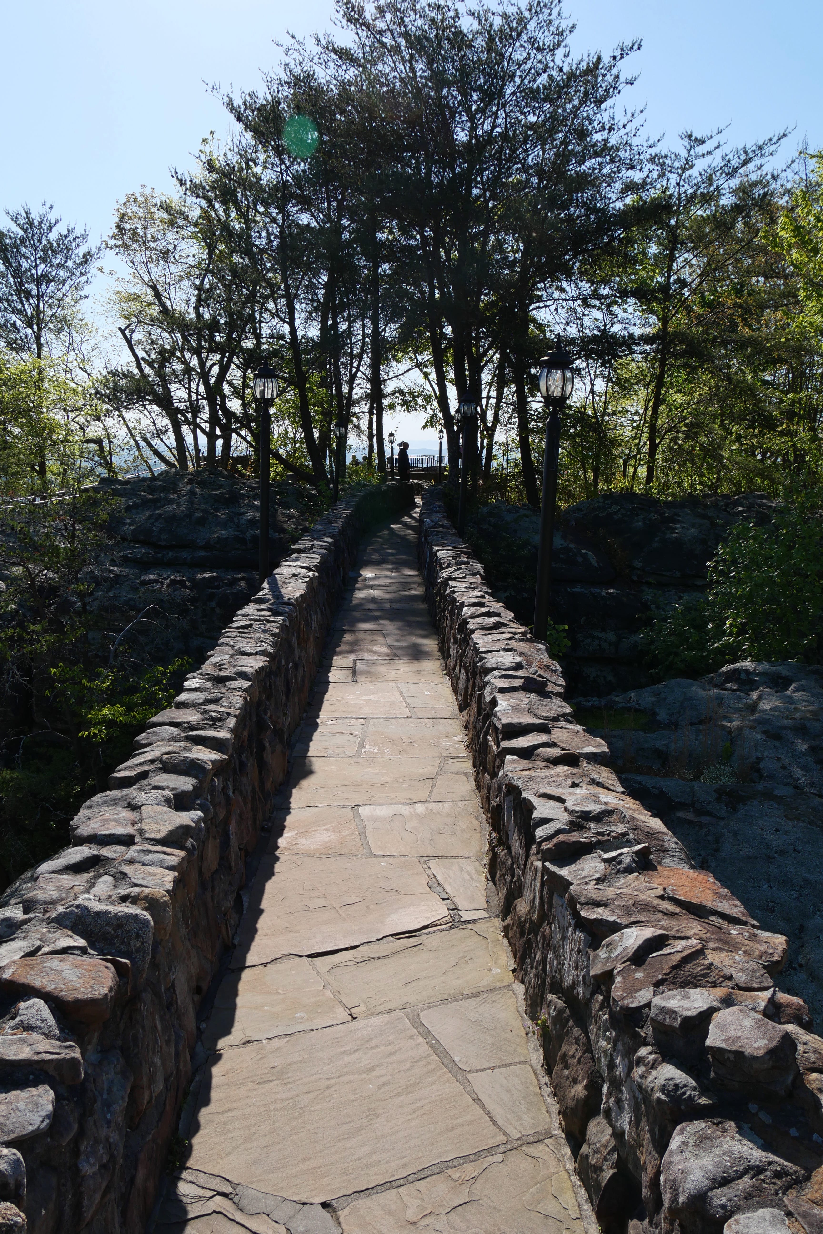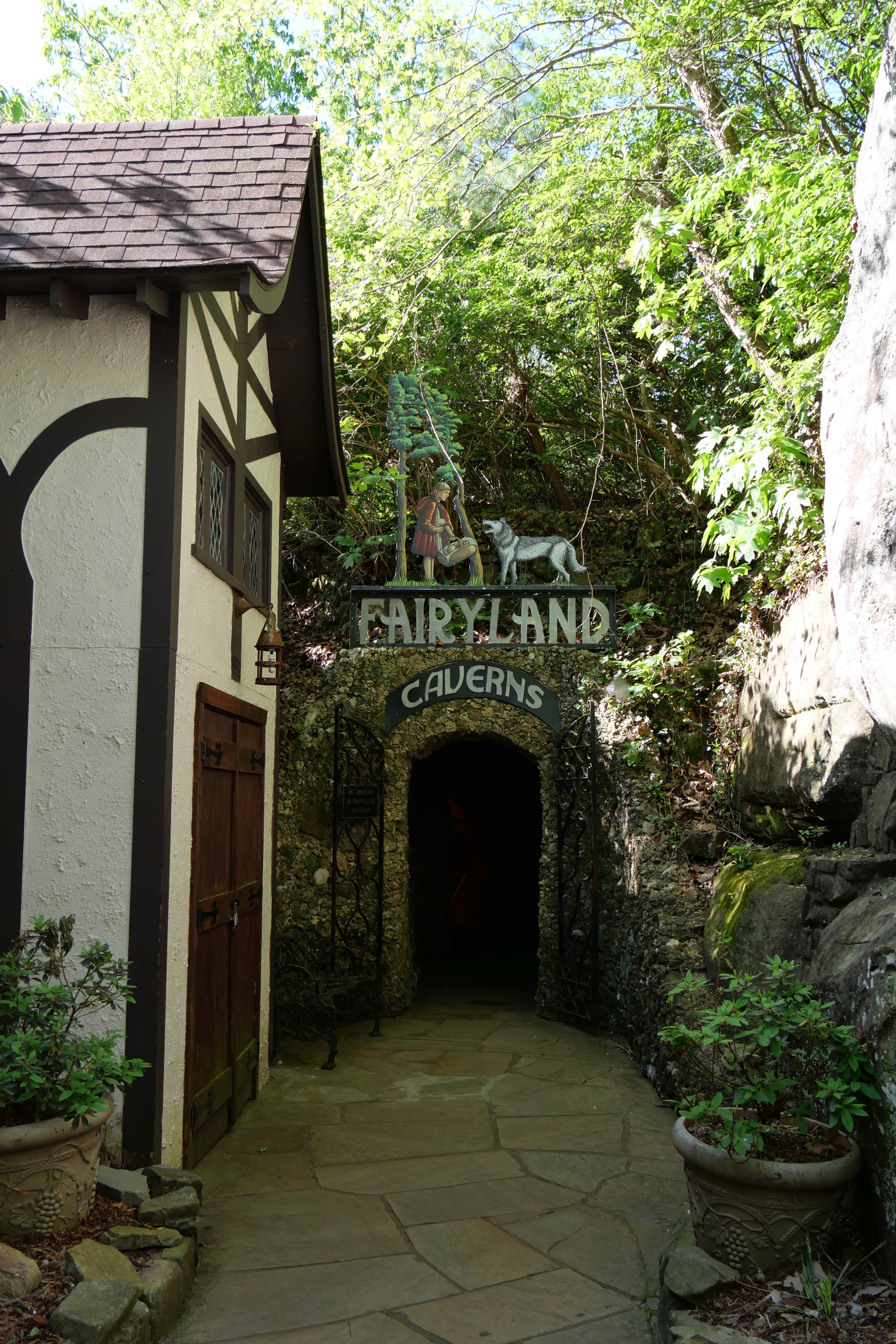Créée en 1932, il s’agit d’un dédale de rochers et de crevasses à traverser, avec différents arrêts ou points d’intérêts. Depuis le balcon surplombant la vallée, Lover’s Leap, la vue est plus ou moins dégagée sur 7 états (par temps clair, sans pollution et seulement les sommets de montagnes lointains). On y retrouve d’ailleurs un remake de Roméo & Juliette (ou l’original, selon le point de vue), avec une histoire de jeunes amoureux de tribus rivales : lui a été jété du haut de la montagne, elle a sauté pour le rejoindre. Parmi les arrêts remarquables, le swing-a-long bridge offre à la fois une petite traversée sympa (sauf aux enclins au vertige, qui pourront le longer sur un petit pont en pierre). Inclassable, Fairyland est une mise en scène de contes faisant partie du folklore européen, commandée par la fondatrice des jardins, Frieda Carter, à un artiste de l’époque. Parcourant les dernières galeries aménagées avec ces décors, nous ne saurons pas si ce que nous ressentions relevait du respect pour le travail accompli ou du malaise suscité par ces œuvres « vieillissantes ».
