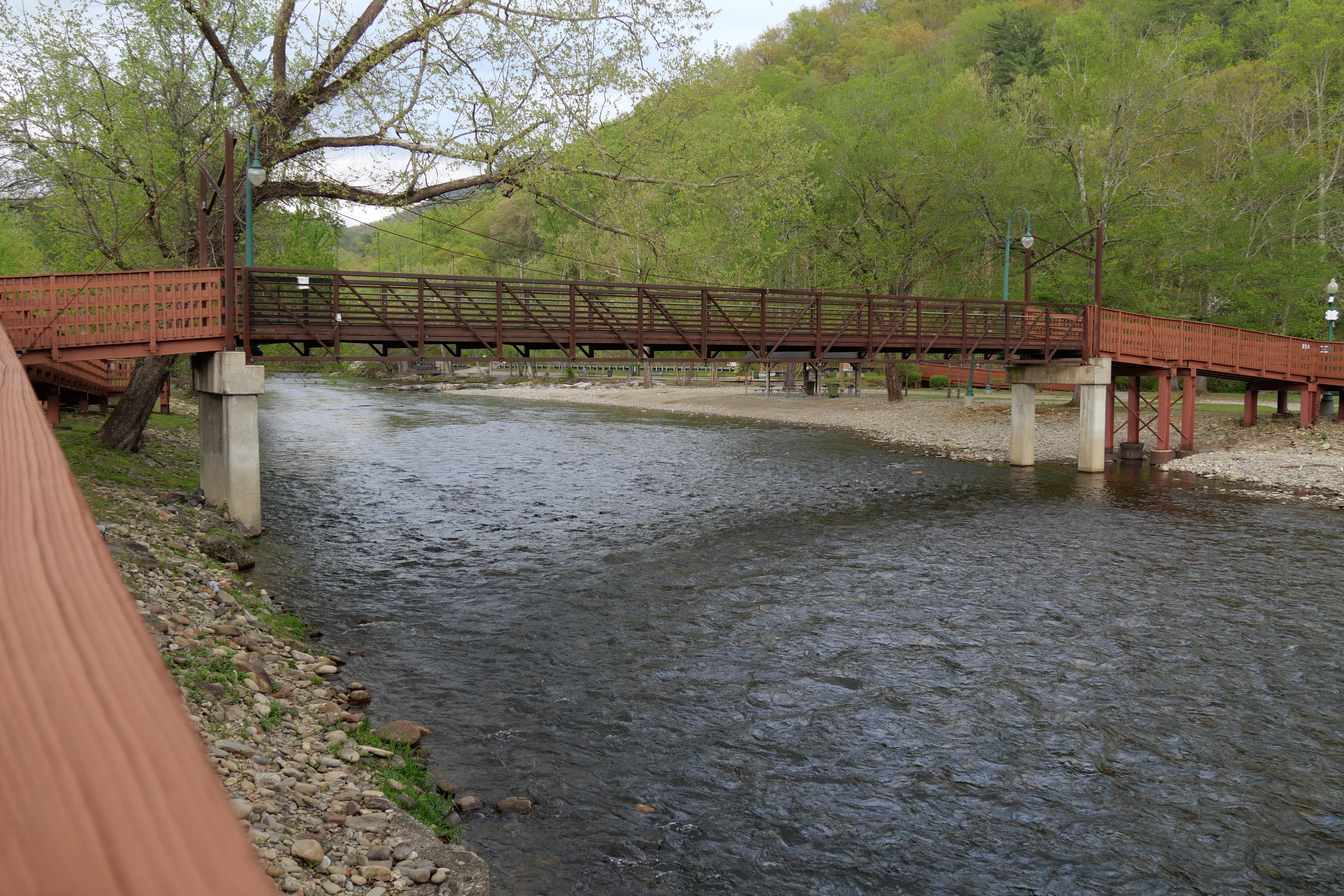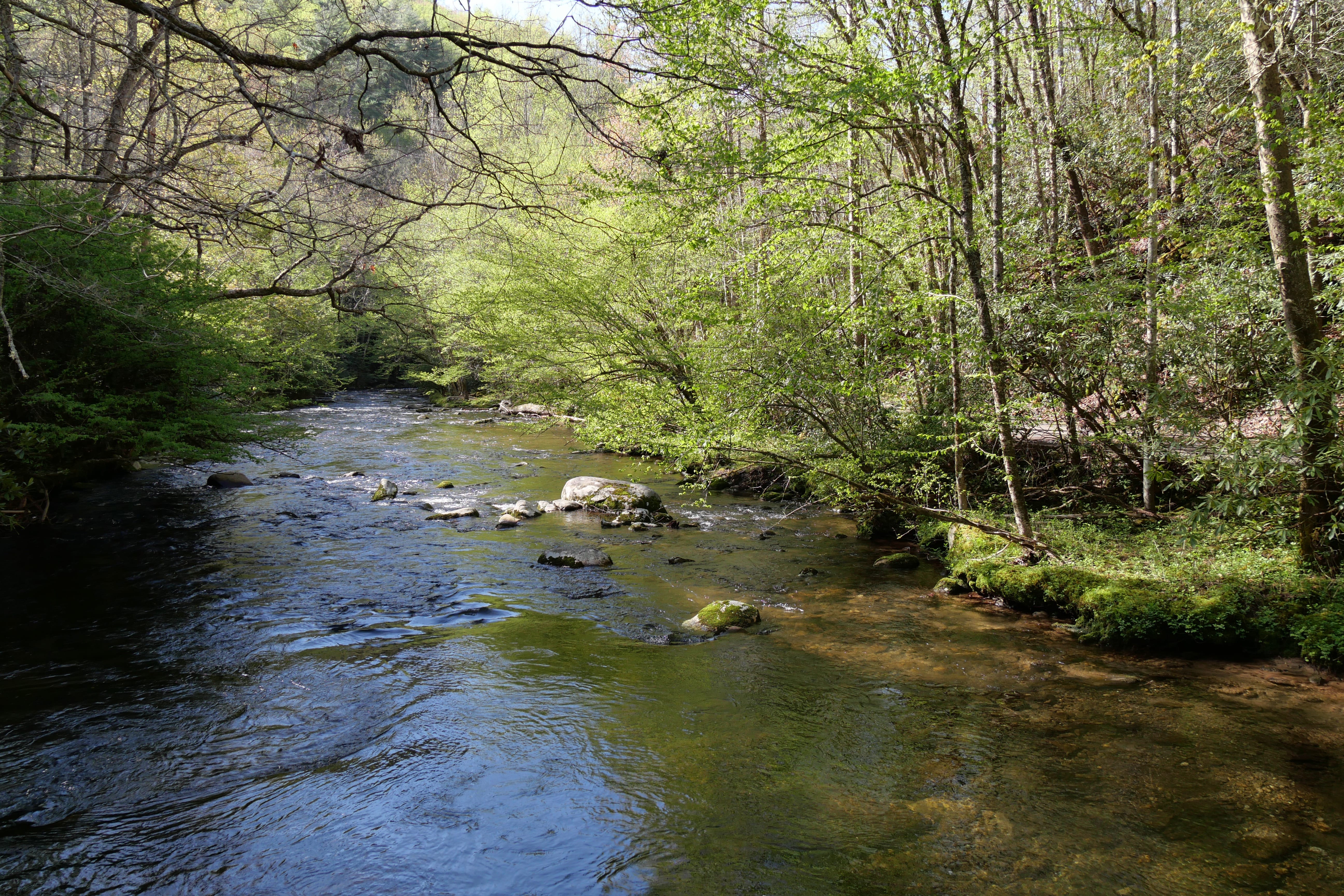Entre les grandes villes de ce RoadTrip, nous avions décidé de faire plusieurs étapes dans des endroits moins fréquentés, plus orientés nature. C’est le cas du Great Smoky Mountains (GSM) National Park, surtout en cette saison où la faune et la flore ne font que s’éveiller. Arrivés la veille à Cherokee, Caroline du Nord, non loin de l’entrée du parc, nous avons déposé nos bagages à l’EconoLodge, petit motel typique et finalement bon rapport qualité/prix avant d’aller nous promener un peu le long de la rivière. Nous avons fini cette soirée par un repas chez Native Brews Tap&Grill, où les bières et les cheese curds méritent qu’on s’y arrête. Même si nous aurions pu prendre un petit déjeuner basique au motel, nous avons préféré faire une exception et rejoindre Peter’s pancakes and waffles, découvert la veille sur la route de la brasserie, dans l’optique de commencer cette journée sportive avec un bon bol d’énergie. On ne peut que vous recommander cette adresse où vous vous retrouverez en compagnie des locaux, bien loin de l’agitation des grandes villes, et avec l’embarras du choix pour un petit déjeuner à l’américaine.