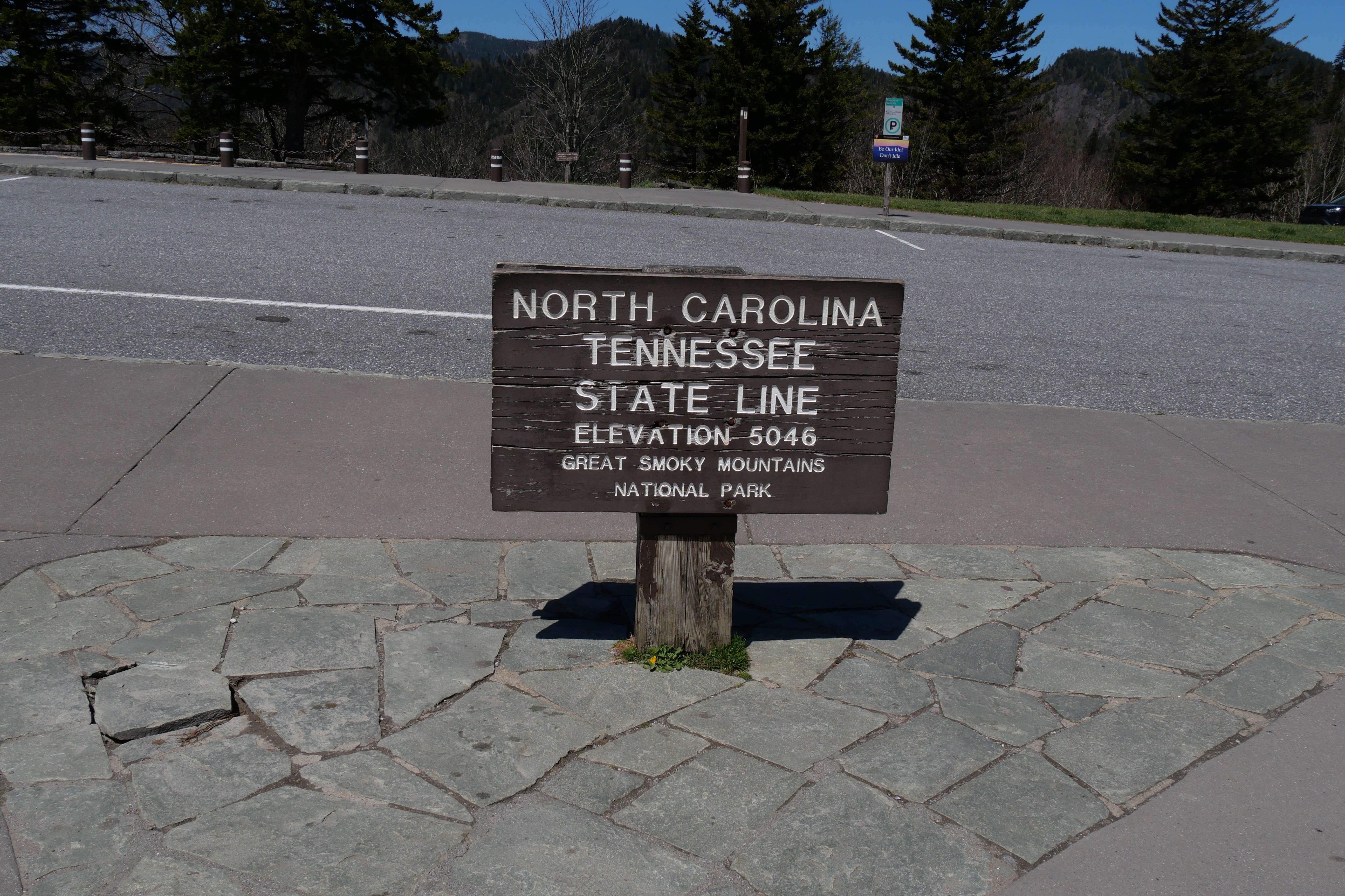 Ce parc se visite relativement simplement, il n’y a pas 40 embranchements différents, et la plupart des points de vue sont directement sur la route principale en remontant vers le Nord, si vous faites la visite dans le même sens que nous. Webb Overlook, Oconaluftee Valley Overlook, Morton Overlook s’enchaînent facilement. Libre à vous de vous y arrêter ou non, on ne vous le cache pas, le paysage se ressemble quand même fortement entre ces points, même si on aperçoit parfois une route ou l’autre serpenter en contrebas. Mais prenez le temps de faire un petit stop à Newfound Gap, où l’on retrouve un marqueur de la frontière entre le Tennessee, au Nord, et la Caroline du Nord, au Sud…