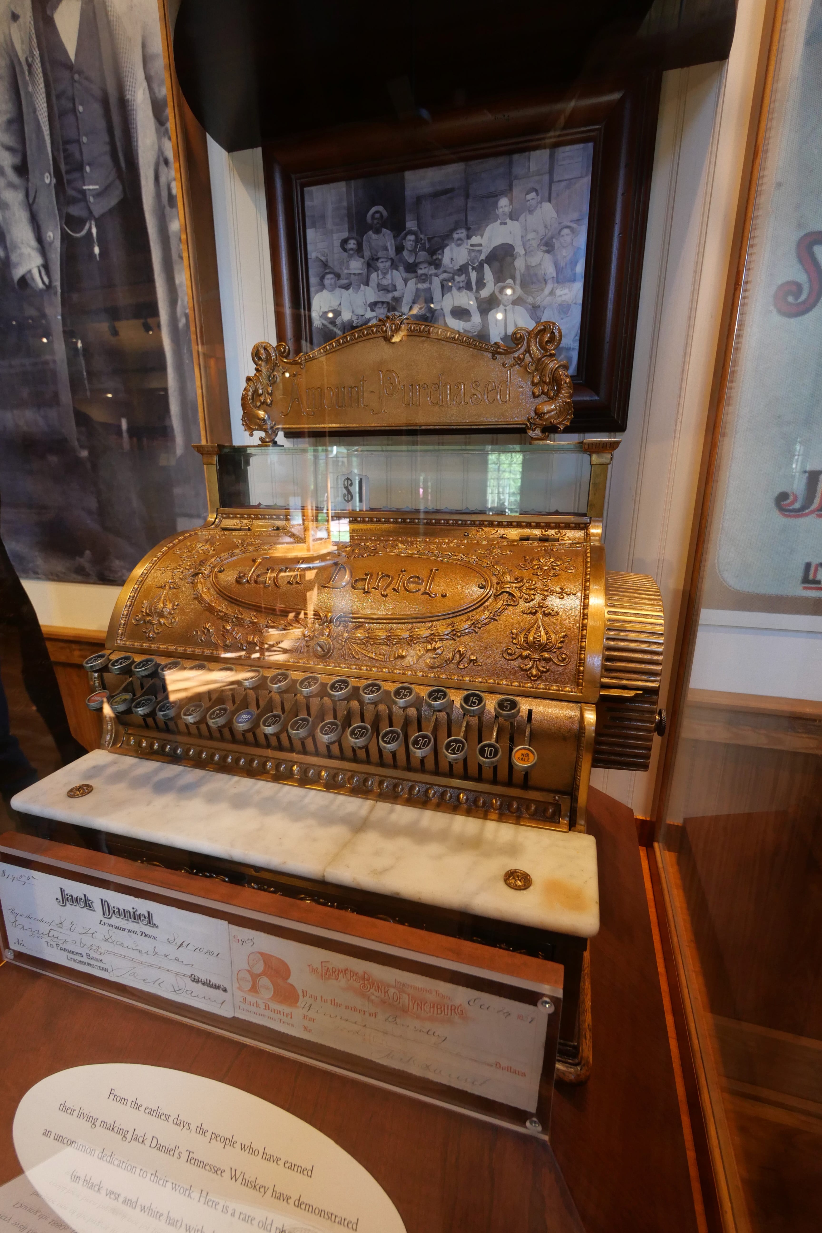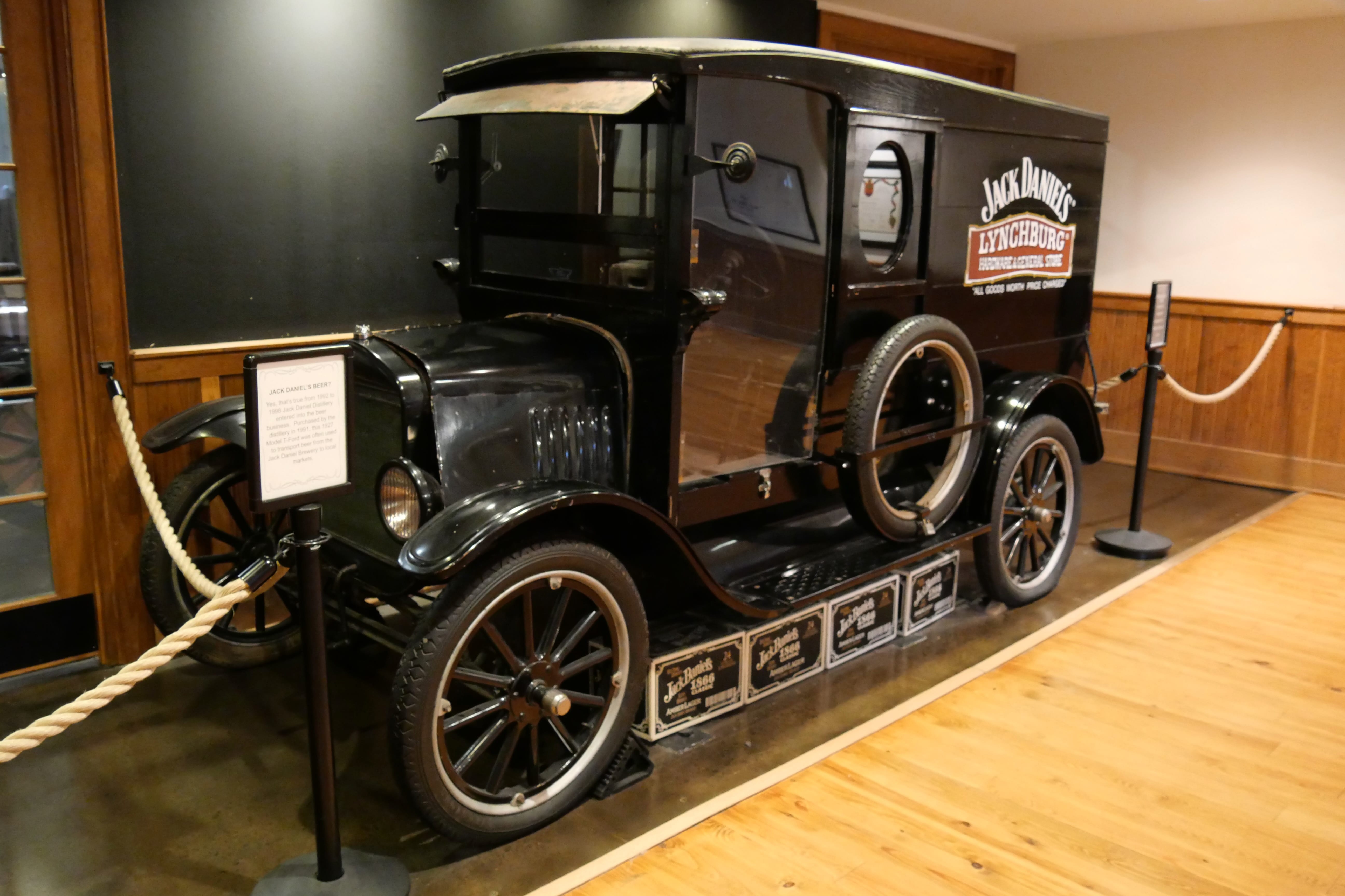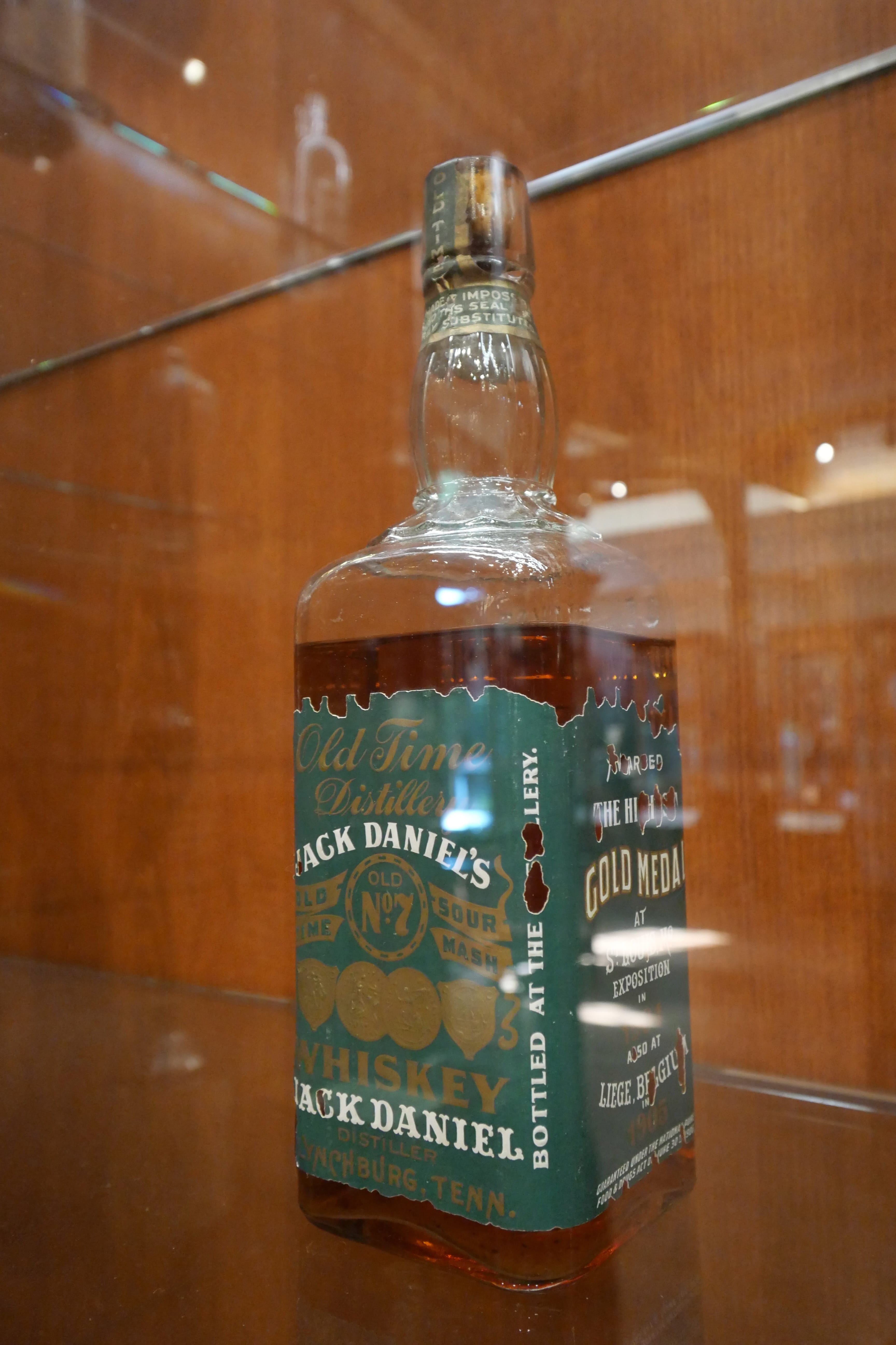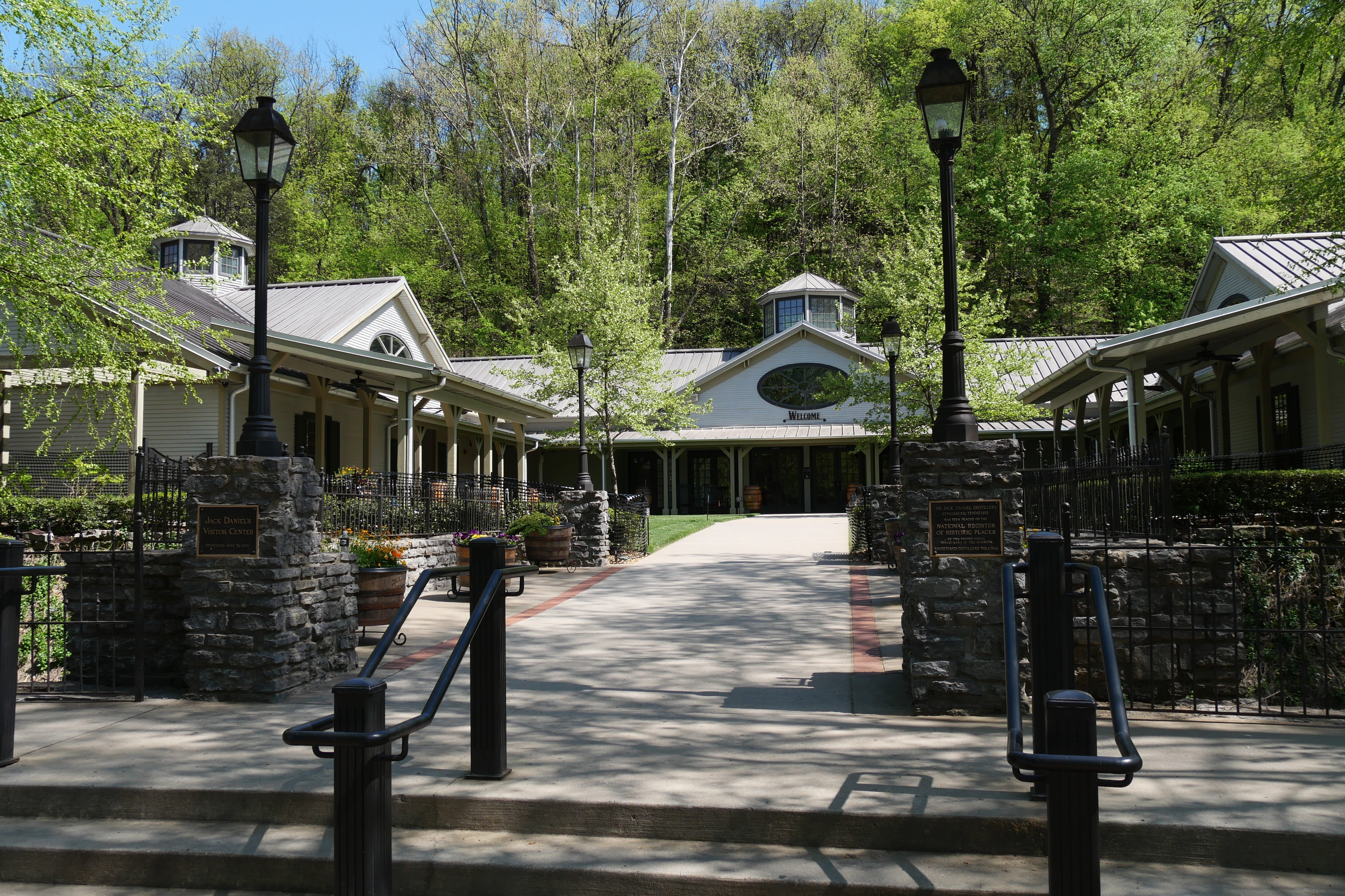 En arrivant à Lynchburg, Tennessee, difficile de louper la distillerie Jack Daniel’s, son Visitor Center, et son parking de l’autre côté de la route. Après nous être garés, c’est au Visitor Center que nous récupérons nos tickets réservés en ligne (on ne peut que vous le recommander, surtout en haute saison), et on nous invite ensuite à en apprendre davantage sur l’histoire de Jack Daniel. On découvre ainsi l’enfance tumultueuse de Jack, la mort de sa mère, son départ de la maison, et ses premiers pas dans le milieu de la distillation, auprès d’un esclave afro-américain Nearest Green, maître distilleur de Dan Call, ami de l’oncle de Jack. Lorsque Dan ne voudra plus poursuivre cette activité, Jack la lui rachètera et c’est ainsi que se mettra petit à petit en place la distillerie Jack Daniel’s. Petite anecdote, les descendants de Nearest Green travaillent au sein de la distillerie depuis l’époque où Jack a décidé de poursuivre son travail avec Nearest, et ce, même après le rachat. En parallèle, une nouvelle distillerie a vu le jour depuis, elle y produit le whisky Uncle Nearest dont la renommée n’excède pour l’instant pas l’état voire les Etats-Unis, mais qui, d’après ce que nous avons lu et de ce que nous avons découvert de la visite, doit tenir toutes ses promesses. Une explication des étapes de fabrication est également proposée aux visiteurs, et on peut également prendre quelques clichés d’objets ayant appartenu à Jack et d’objets ayant évolué au fil des années, avec notamment les fameuses bouteilles, rapidement devenues carrées, avec l’étiquette que l’on connaît encore aujourd’hui.
