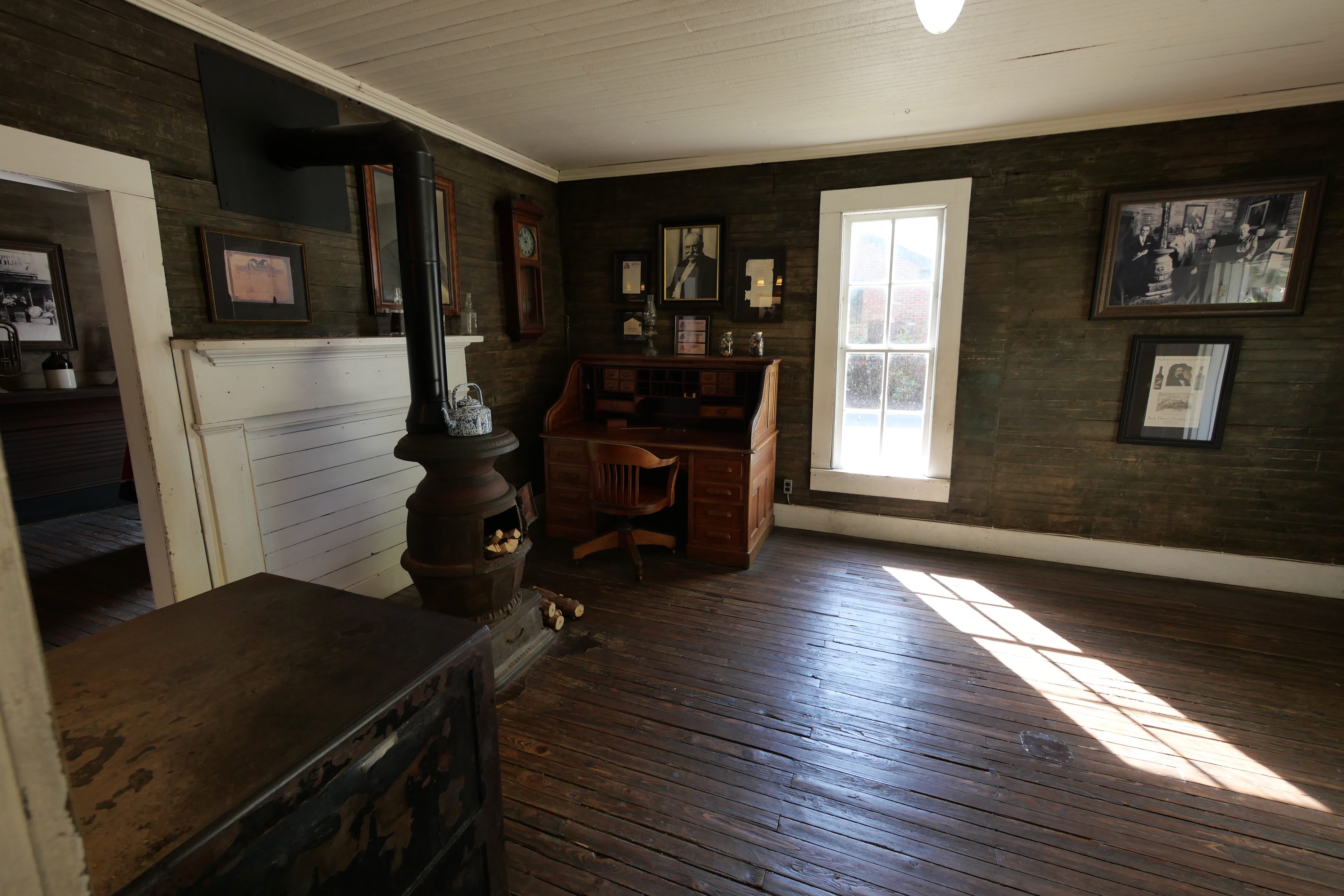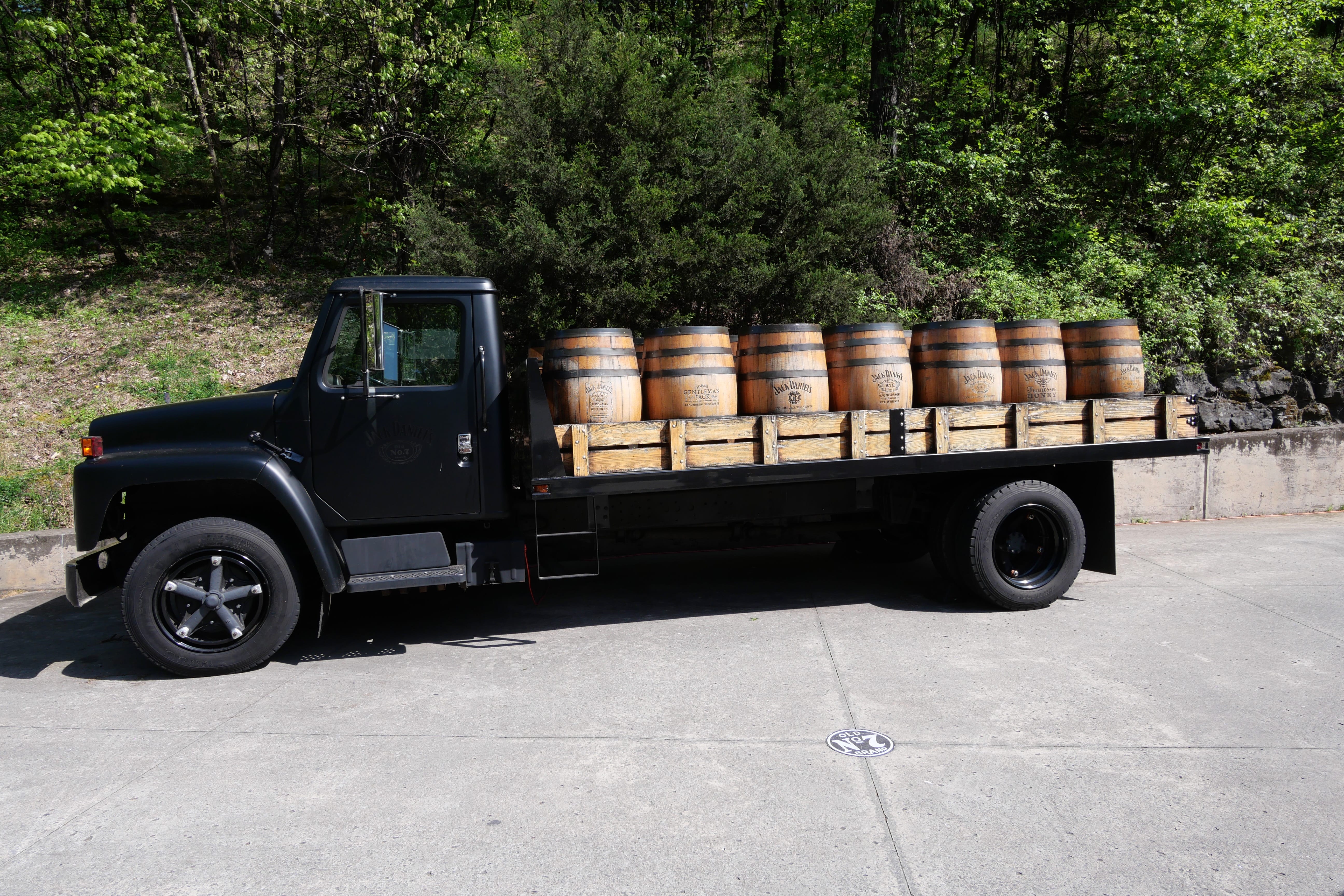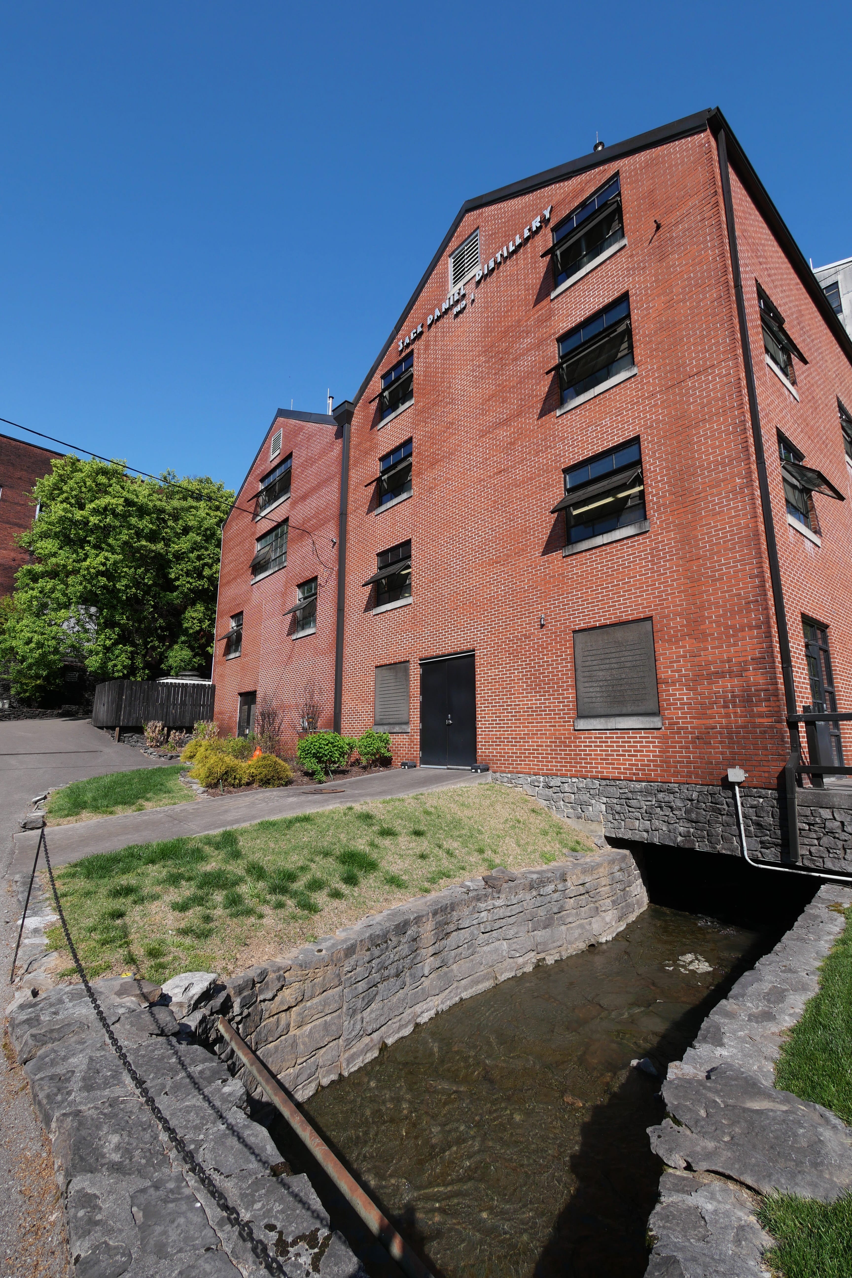 Première étape, après avoir pris un bus pour ne pas trop souffrir de l’imposante côte rejoignant le point culminant de la distillerie, où l’on aperçoit l’un des nombreux entrepôts de stockage des barils, on découvre la zone fabrication du charbon d’érable. On apprend ainsi que ce sont les deux mêmes employés qui réalise cette étape clé depuis des dizaines d’années, et que leur travail consiste à réaliser chaque semaine le nombre de flambées nécessaires à fournir le charbon suffisant pour le reste du procédé. Cela varie donc pour eux, d’une à deux flambées par semaine, jusqu’à plus d’une dizaine. A ce moment-là, le guide nous fait également découvrir l’absinthe, résultat brut issu de la distillation, ça arrache un peu, ça n’a pas énormément de goût, mais on comprend mieux d’où part le whisky. On fait ensuite un petit crochet par la source d’eau, à proximité directe de la distillerie, avantage non négligeable, surtout pour le développement de l’époque, où il était souvent plus difficile qu’aujourd’hui d’apporter les différentes matières premières nécessaire à la fabrication. Juste à côté de la source, après un cliché avec la statue du vieux Jack (dont seuls les pieds sont à l’échelle 1, le reste ayant été agrandi afin de lui redonner de sa superbe), on entre dans le bureau de Jack, où le guide nous laisse contempler l’arme du crime. Atypique puisqu’il s’agit du coffre-fort de Jack, celui dans lequel, excédé de ne pouvoir l’ouvrir avant de partir en voyage, il a donné un coup de pied, point de départ d’une infection, se concluant par le décès du malheureux, quelques mois plus tard. C’est aussi l’occasion de découvrir les gens (via des photos d’époque accrochées au mur) qui ont ensuite repris le flambeau, sans pour autant chercher à s’accaparer le business. Le guide insiste bien là-dessus, ce groupe soudé, la complémentarité des compétences de ces maîtres-distilleurs sont les seuls éléments qui ont sauvé l’entreprise, au fil des années, entre prohibition, difficultés financières, besoin de relancer les affaires et de surmonter l’évolution du commerce. Rachetée en 1956 par Brown-Forman, l’une des plus grandes entreprises américaines de boissons alcoolisés, celle-ci a souhaité ne rien toucher au modèle de Jack Daniel’s, laissant la gestion à ses employés, pour au final, le résultat que l’on connaît aujourd’hui.