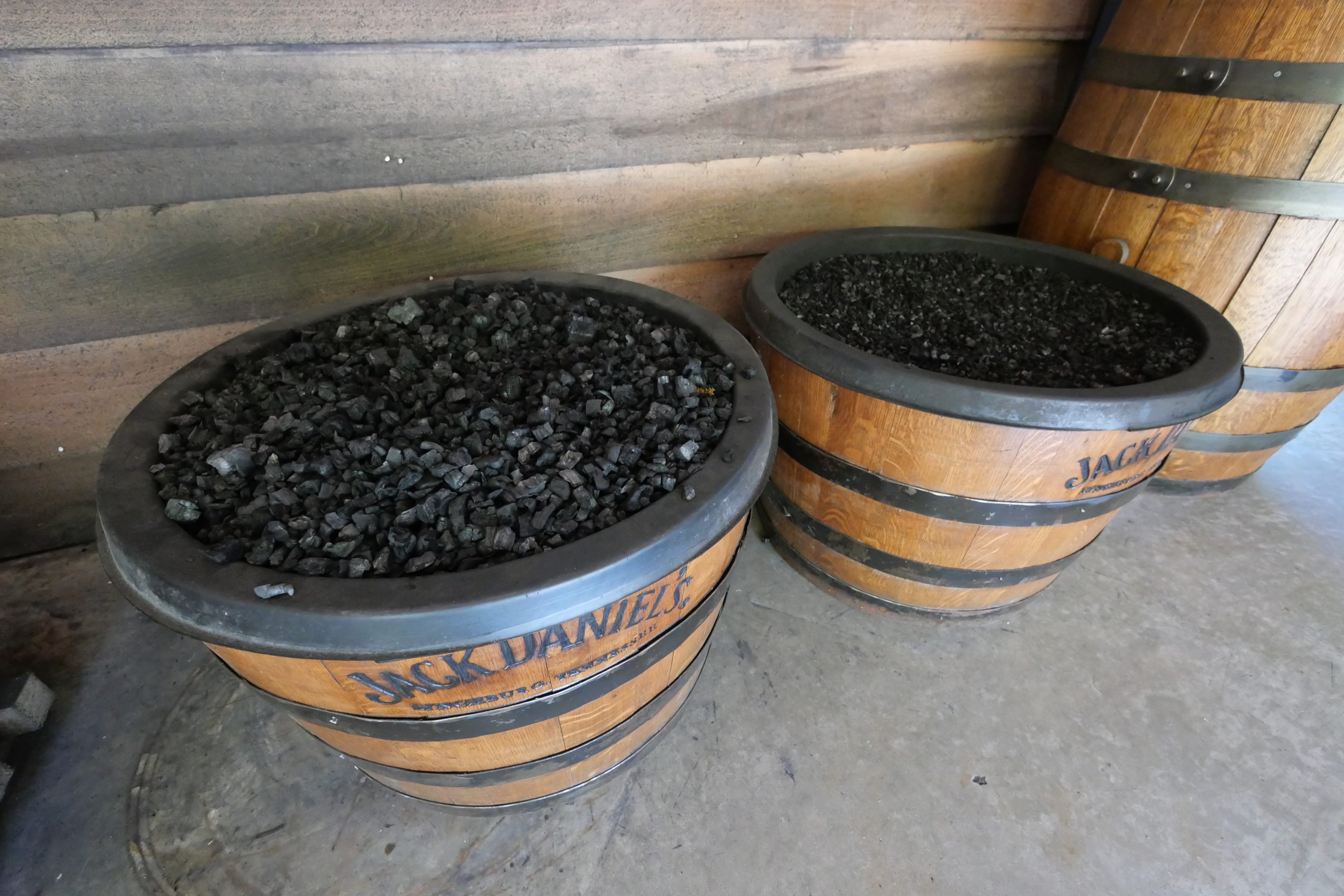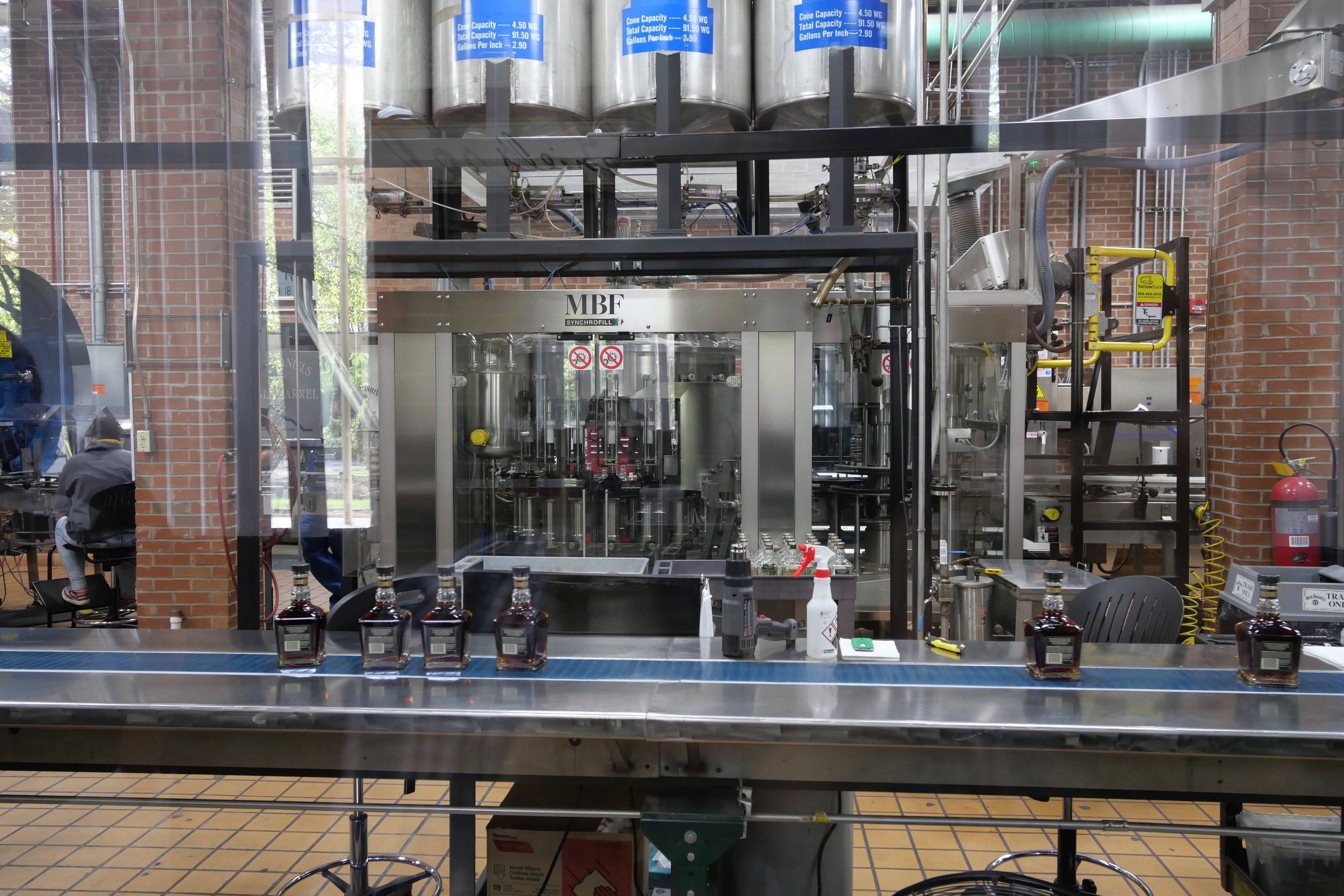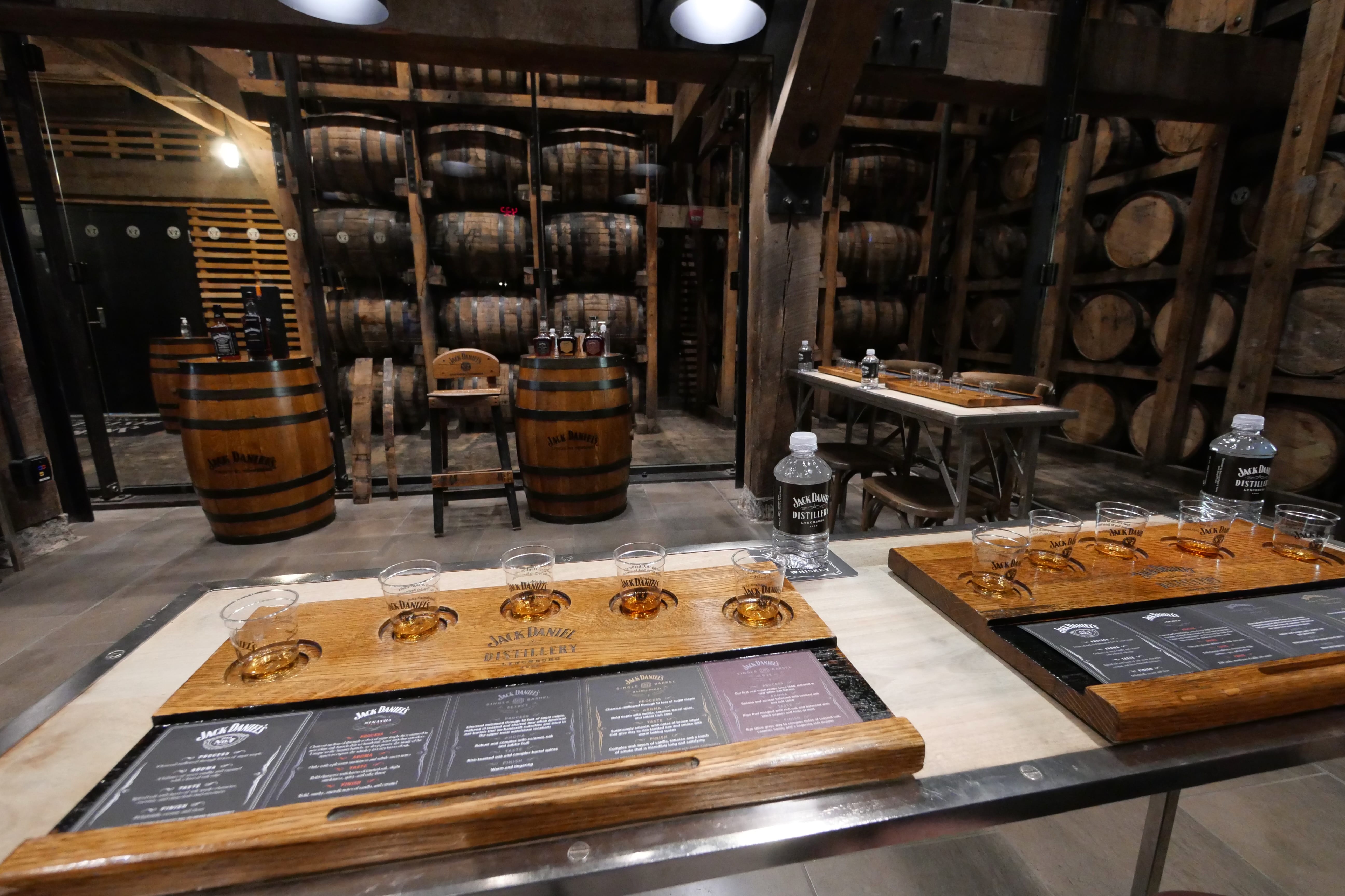 On entre ensuite dans la distillerie en elle-même, où le guide nous explique les différentes étapes de fabrication, et nous laisse vraiment sentir le produit, nous faire notre propre avis de si l’on aime ou pas l’odeur à telle ou telle étape du processus, et mieux comprendre la fermentation, et l’évolution du goût du whisky. Si l’on sent énormément la levure au départ, on se retrouve rapidement avec un produit se rapprochant du vin à l’odeur, avec plus de caractère. On terminera la découverte de la partie production par le moment où le whisky est filtré au travers du charbon de bois, étape essentielle et caractéristique du Tennessee Whisky, probablement la plus importante de l’élaboration du Jack Daniel’s. Après avoir découvert la ligne d’embouteillage, où les employés collent les étiquettes à la main sur les batchs de whisky spéciaux, nous terminons par la dégustation, dans un hall très scénarisé, où les salles de dégustations sont entourées de nombreux tonneaux.