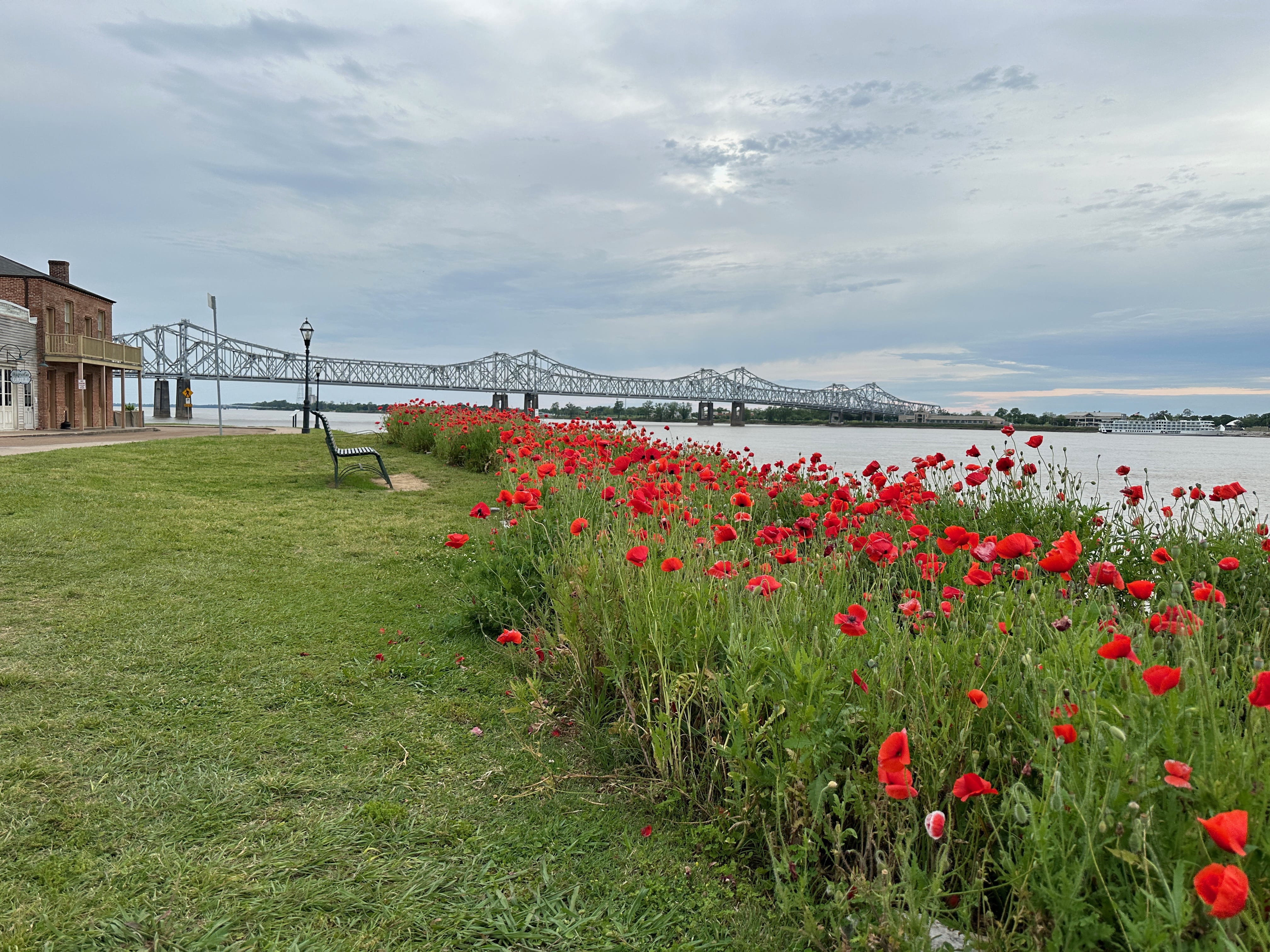 Notre petit conseil de soirée, si comme nous vous vous retrouvez finalement à court de visites et d’idées en milieu d’après-midi, et ne souhaitez pas fuir la zone pour trouver une zone plus « vivante », prendre la direction du Mississippi, en contrebas de Natchez pour aller boire une bière (ou autre chose…!) en musique à Under the Hill Saloon. Vous y retrouverez un cadre atypique, dans l’ancienne maison de Mark Twain, où toutes les générations se retrouvent et où au final vous pourrez profiter d’un bon moment avec les locaux, loin des attrape-touristes. Nous dînerons juste à coté, à Magnolia Grill offrant côté terrasse une superbe vue sur le pont traversant le fleuve. Nous sortirons d’ailleurs afin d’en faire quelques clichés au moment du coucher de soleil qui restera l’un de ces souvenirs simples, mais finalement incontournables de ce RoadTrip.