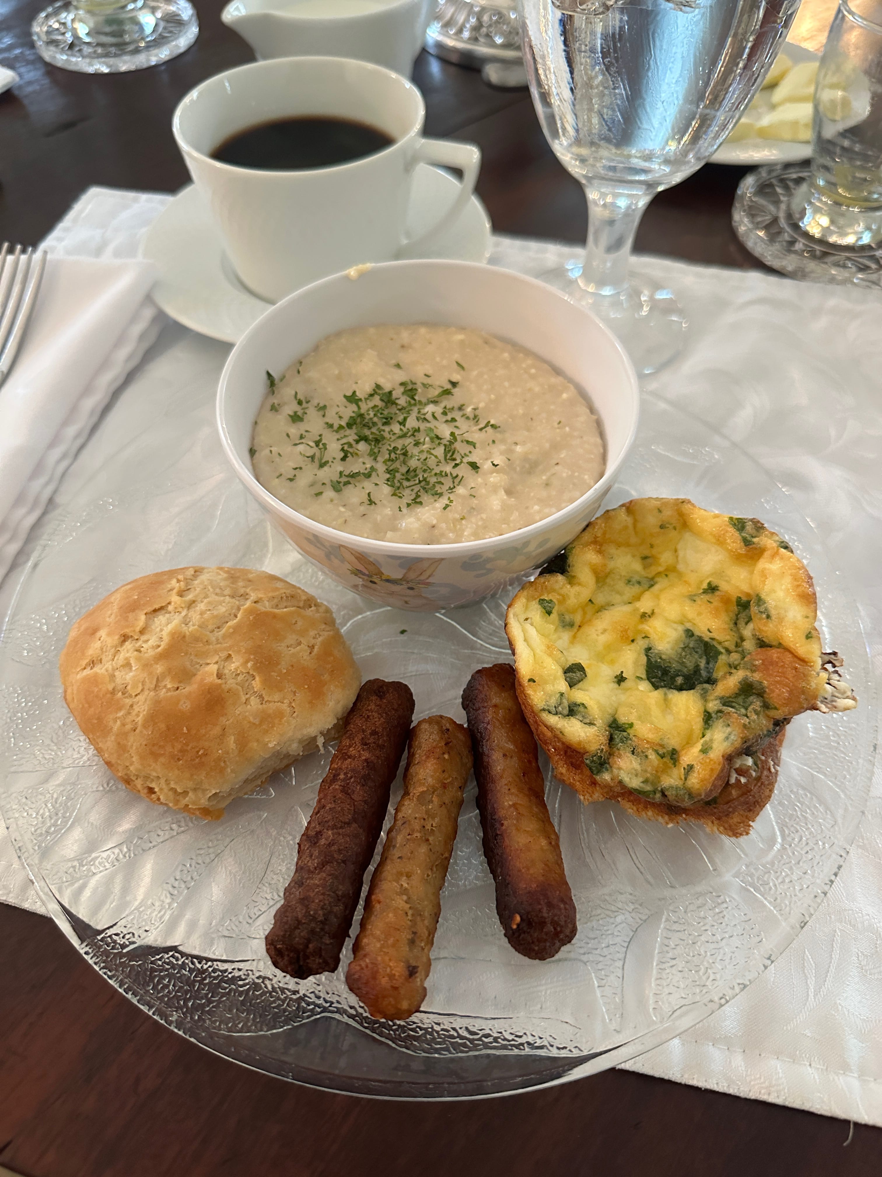 Pour notre nuit à Natchez, nous avions fait une petite entorse à notre budget, en réservant dans une ancienne maison victorienne transformée en chambres d’hôtes. Il y a, en fin de compte, beaucoup de maisons ainsi transformées, mais nous avions opté pour The Linden. A notre arrivée, nous avons été accueilli par le mari de la propriétaire, ayant hérité de la maison, et avons réellement apprécié notre séjour. Après une bonne nuit de sommeil, nous avons eu le droit à un petit-déjeuner original, composé de recettes de familles avec des flocons d’avoine chaud et d’autres spécialités assez éloignées de nos classiques européens. S’en est suivie une visite de la propriété, très intéressante finalement pour en comprendre à la fois l’évolution au fil du temps, le choix du mobilier et la transformation en chambres d’hôtes.