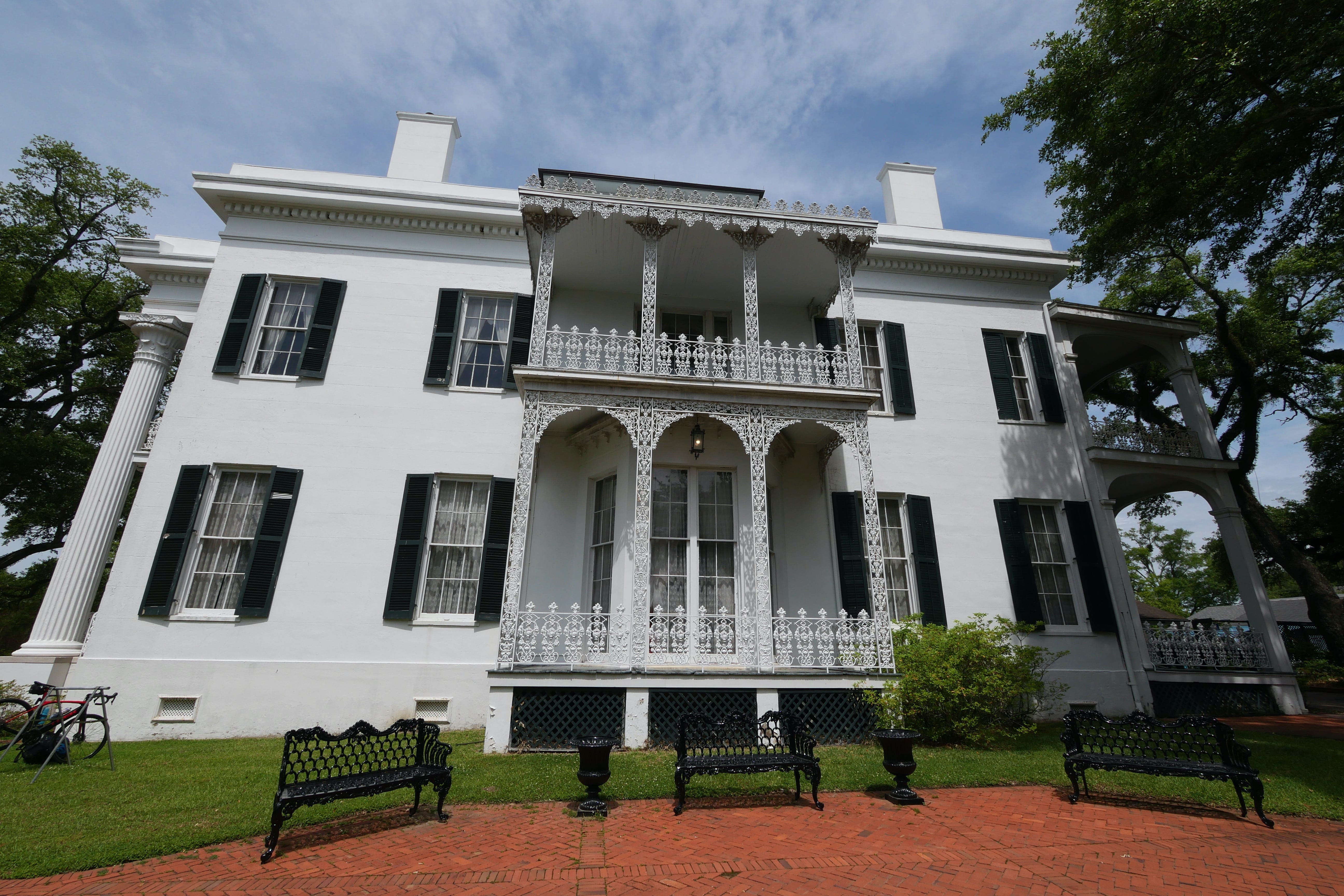 Autre pan d’Histoire américaine, Natchez, petite ville du Deep South, toujours le long du Mississippi, où l’on en perd un peu ses repères tant les rues et les bâtiments y sont différents. Ici, aucun building, très peu d’architecture récente, oubliez les grands axes, remplacez les par des petites rues à sens uniques pour la plupart et vous obtenez le joli quadrillage du centre de Natchez. Eloignez-vous en un peu pour retomber inévitablement sur le Mississippi que vous aurez l’occasion de surplomber et d’admirer, si tant est que vous soyez un minimum avertis que son eau n’est pas des plus spectaculaires loin de là. Si Natchez est aussi bien conservée, c’est avant tout parce que ses habitants de l’époque, pour la plupart de riches familles, n’étaient pas du tout opposées aux idées du Nord, malgré leur position très au Sud. Comme nous le découvrirons à Rosalie Mansion & Gardens, l’armée du Nord y a été très bien accueillie, les habitants n’hésitant pas à céder une part de leur maison pour que les généraux y siègent, en échange d’une conservation de leur bien, et d’un certain respect mutuel. Et c’est pour cette raison que la ville n’a pas connu la même fin que d’autres, complètement détruites par les généraux ayant défait l’armée en place, et subi l’affront de la population. Nous avions repéré, en dehors de toutes les maisons d’époque méritant le coup d’œil, un certain nombres de maisons particulièrement conservées, que nous avons pour certaines visitées. Si certaines informations se recoupent dans ces visites, nous tenons à souligner tout de même la complémentarité de ces découvertes. Ainsi, si nous nous sommes faits refouler sans même pouvoir apercevoir Longwood Manor gratuitement de l’extérieur (il fallait s’affranchir du droit d’entrée, valable pour une visite guidée non dissociable), nous avons profité d’une visite guidée de Stanton Hall rien que tous les deux.
