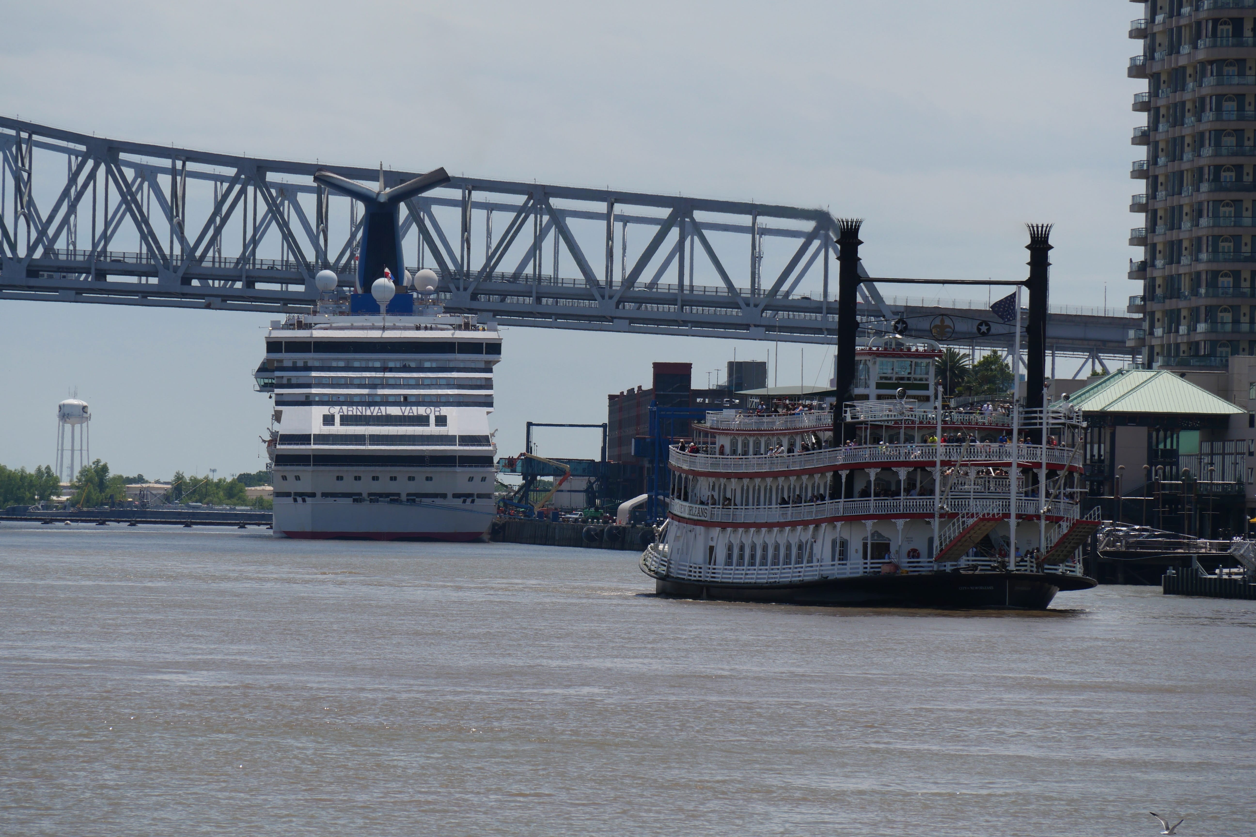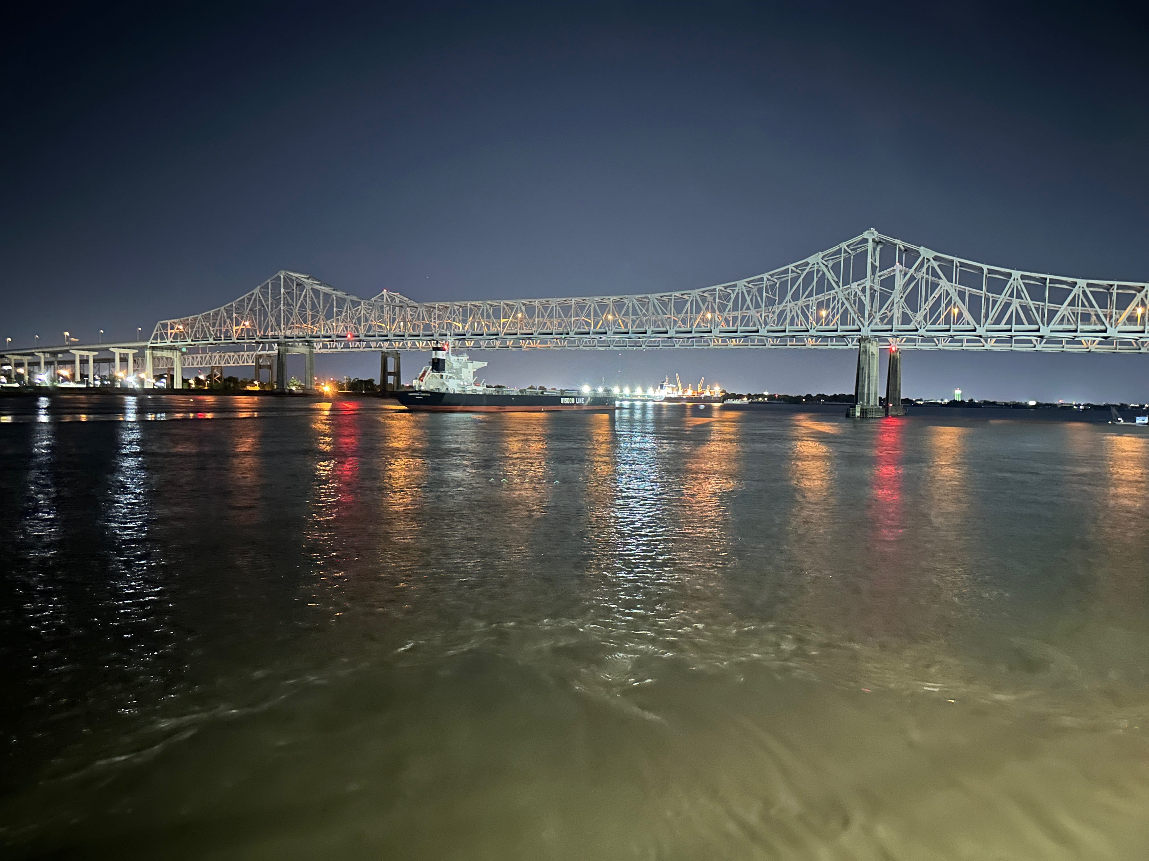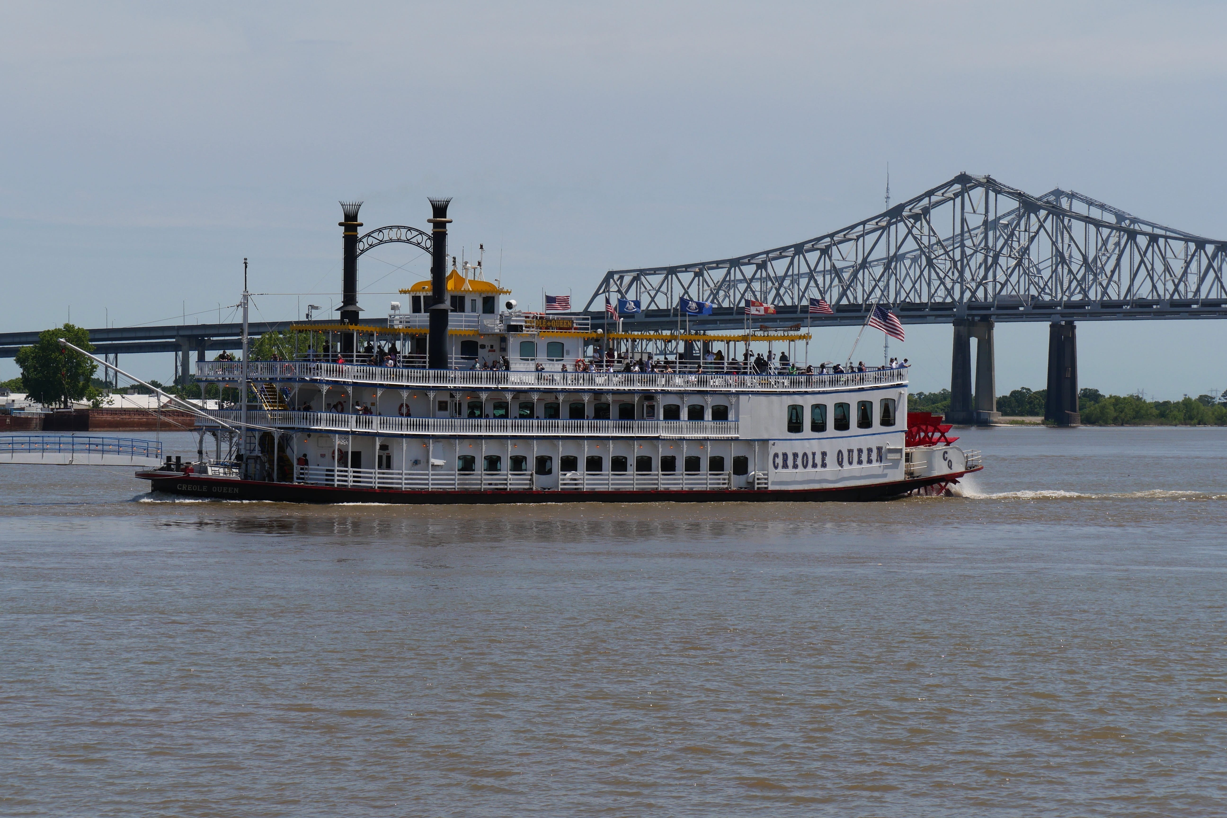 Une fois leur set terminé, nous repartons nous balader un peu au hasard au gré des rues et en profitons pour faire quelques achats souvenirs en attendant l’heure de notre activité pour la soirée. Pour profiter au maximum de notre expérience à NOLA, nous avions réservé une soirée sur le Steamboat Natchez, authentique bateau à vapeur avec une roue à aube qui fut mis à l’eau en 1975. L’annonce de son heure de départ se fait par un joueur de carillons avec des airs si aigus qu’à un moment ça en devenait presque insupportable. Nous avons eu peur d’avoir cette musique là tout au long de la soirée mais heureusement, c’est finalement un groupe de jazz qui a pris le relais une fois à bord. Nous avions choisi la formule avec repas et avons donc attendu l’heure à laquelle nous devions nous rendre au buffet pour goûter aux spécialités créoles. Ayant un peu peur de l’aspect self du repas, nous avons finalement apprécié la répartition des services et le déroulement à bord.