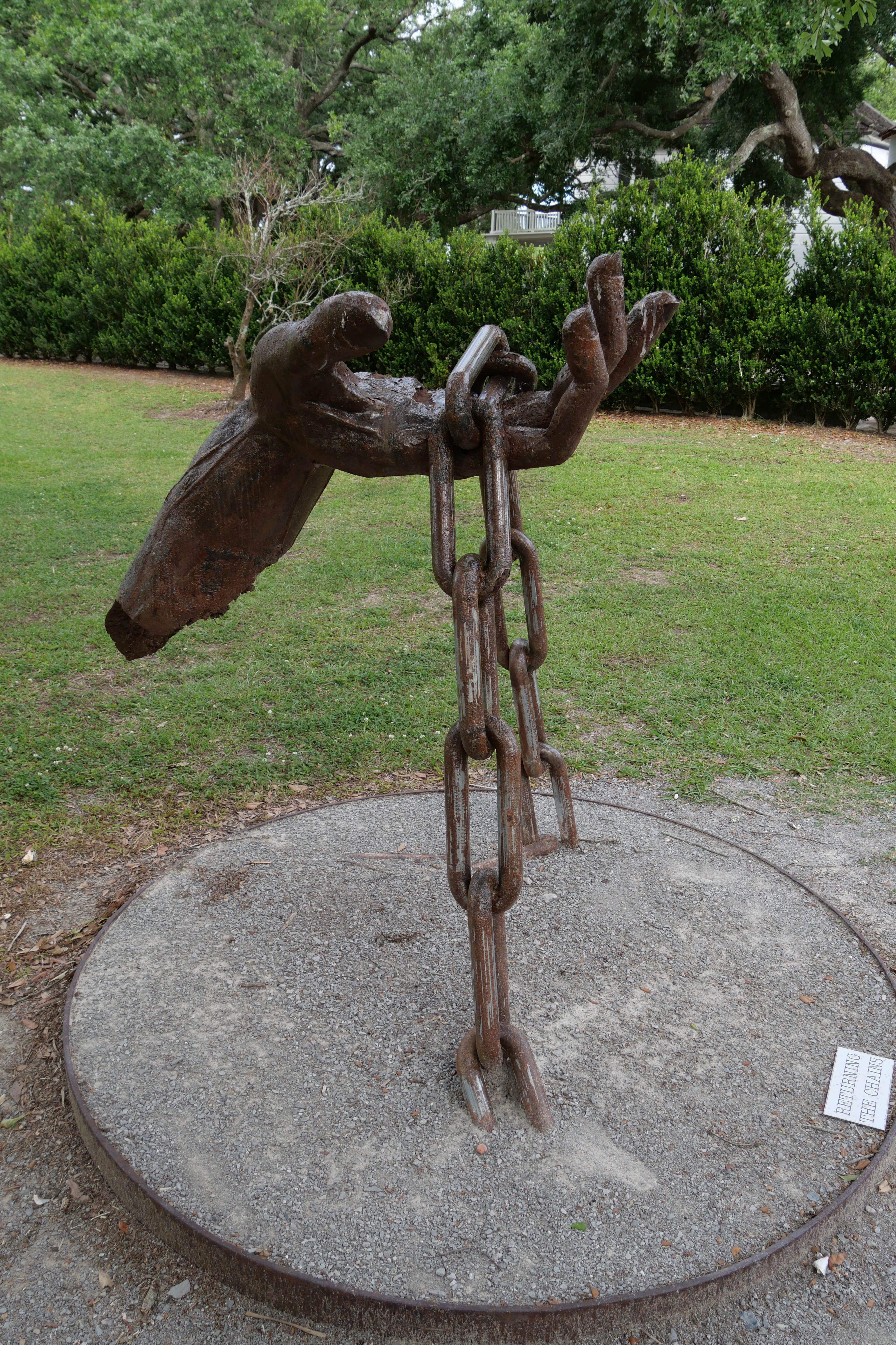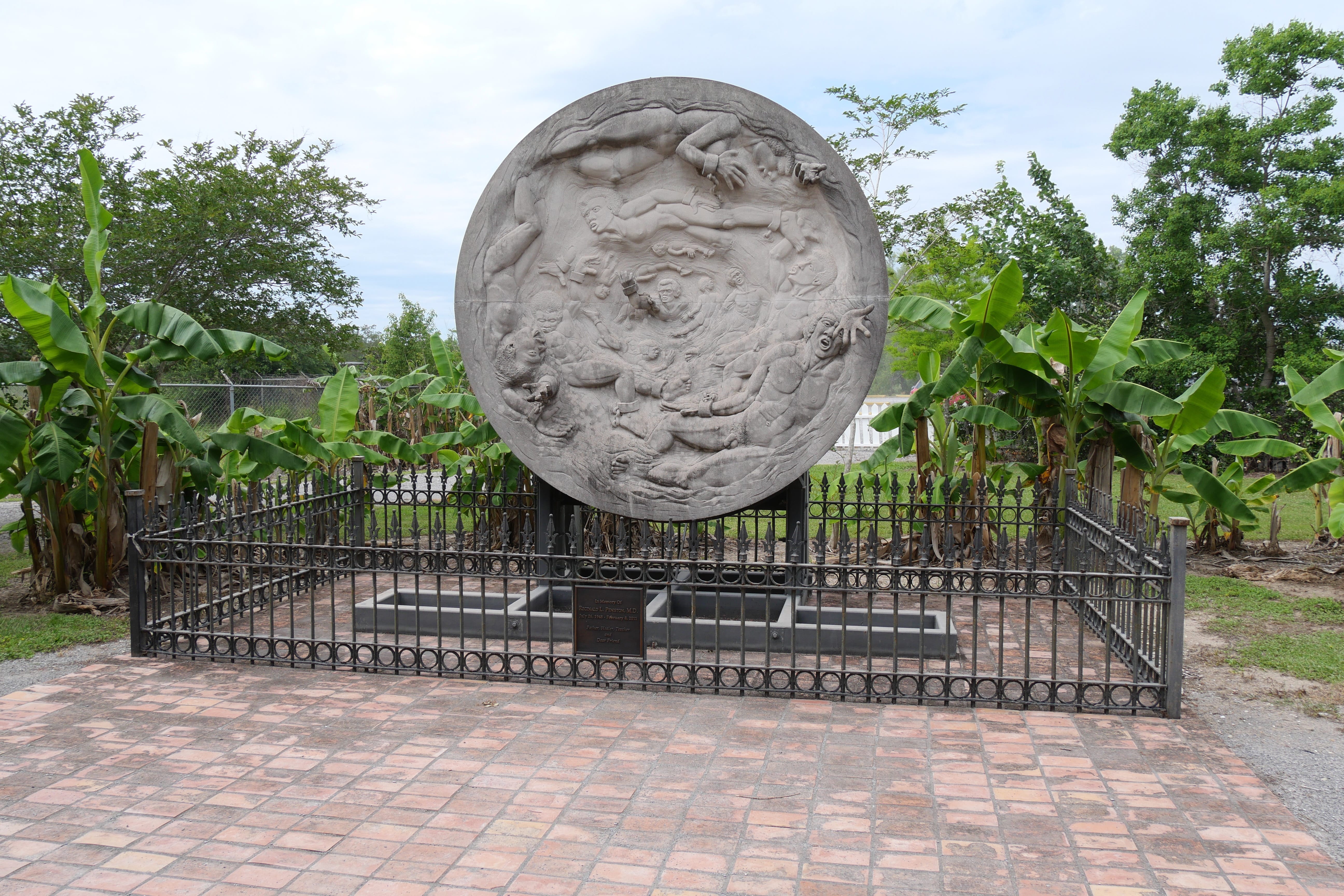 La suite de la visite nous emmène sur un chemin qui nous fait découvrir différentes œuvres d’art sur le thème de l’esclavage afin de commémorer toutes ces horreurs et de laisser un souvenir marquant aux visiteurs. Deux pièces nous marqueront plus que les autres. Tout d’abord, The Field Of Angels, mémorial dédié à plus de 2200 enfants esclaves dans la paroisse de St John’s Baptist et qui trouvèrent un destin funeste. La seconde œuvre, est un alignement de soixante têtes en céramique sur des pics qui rappelle la fuite d’environ 125 esclaves en 1811. Quand ils furent retrouvés, une majorité d’entre eux furent décapités et leurs têtes mises sur des pointes le long du Mississippi et dans le French Quarter de La Nouvelle-Orléans, afin de dissuader d’autres esclaves de faire de même. Pris par l’intensité du récit, nous en oublierons de faire une photo mais l’image reste quant à elle bien gravée dans nos esprits.