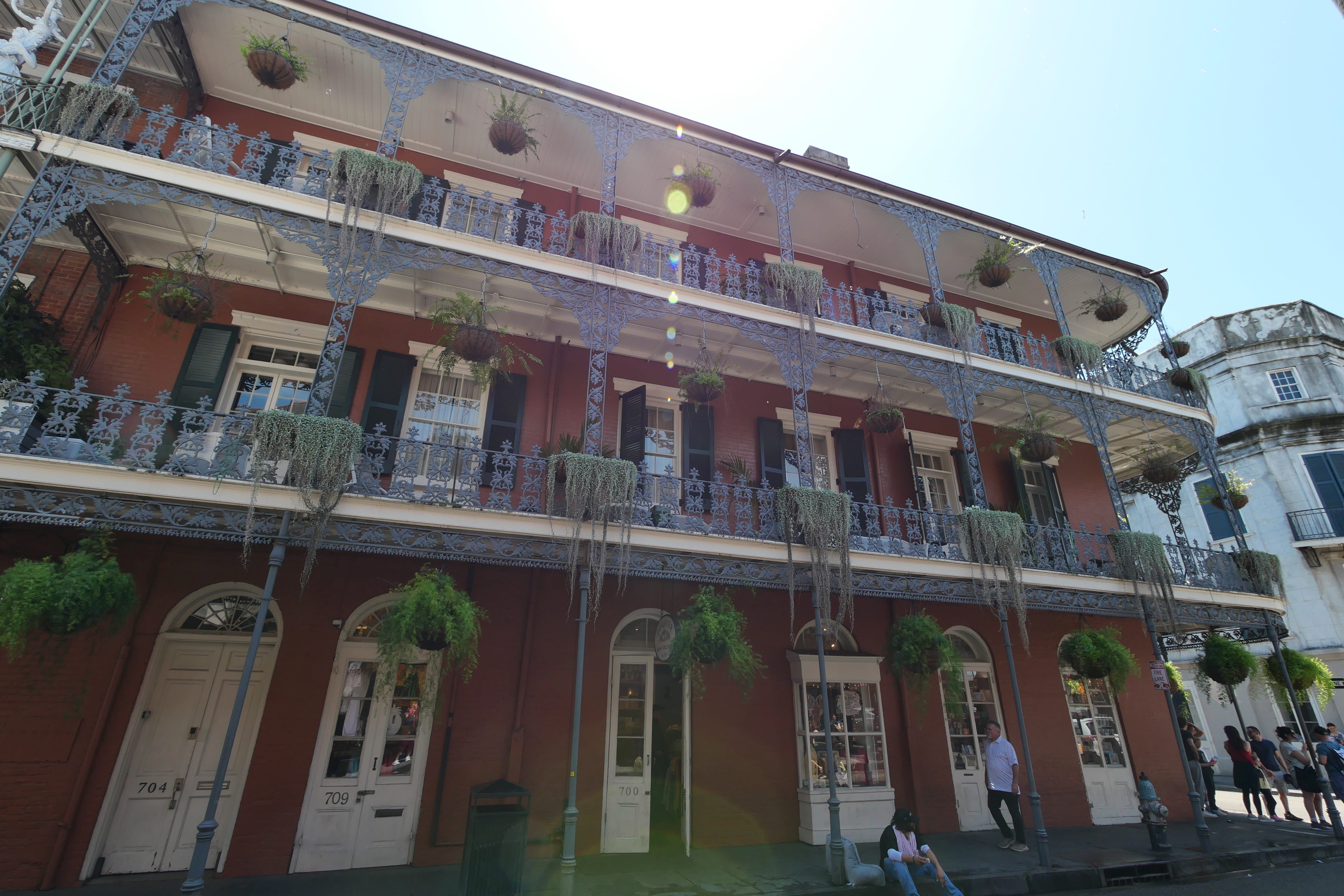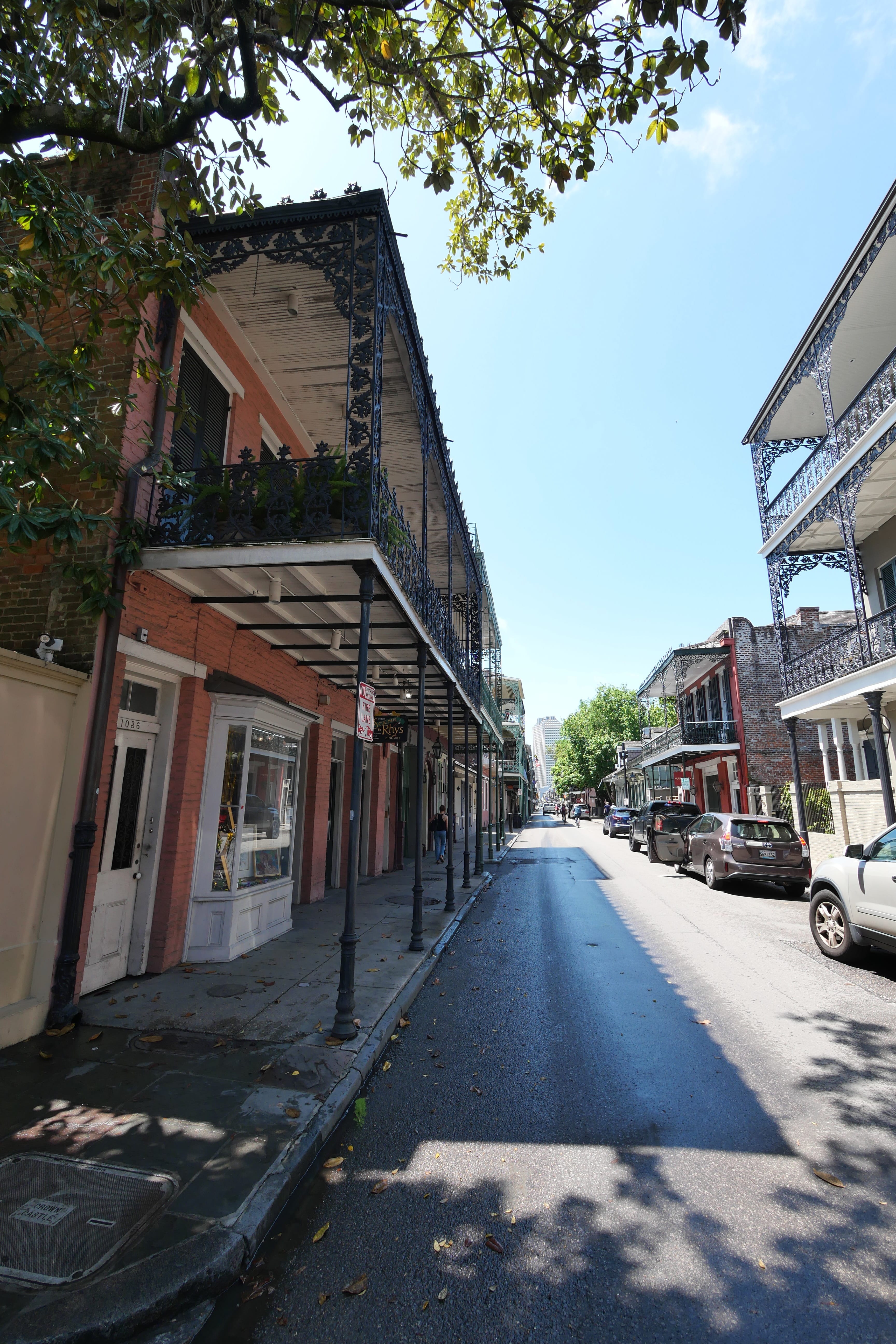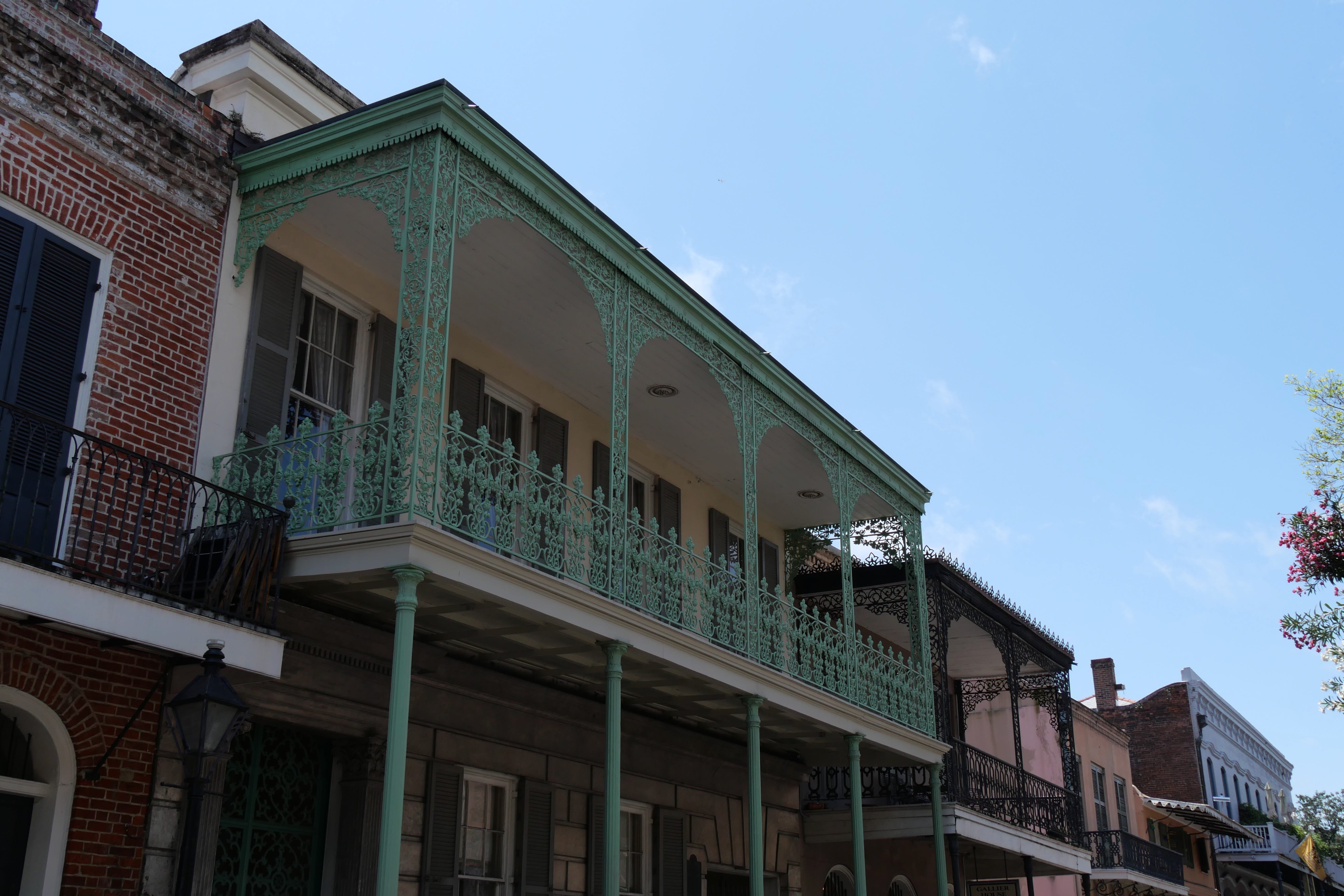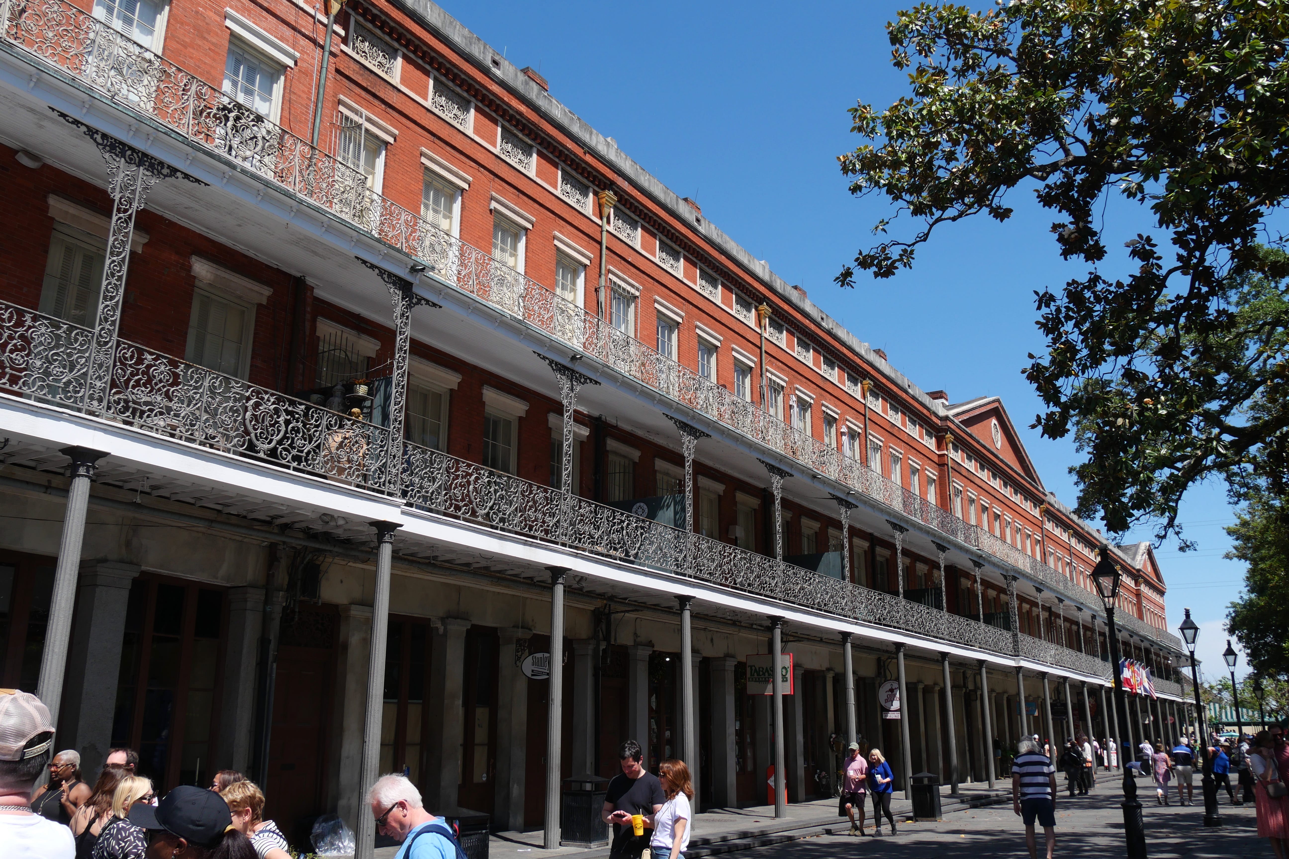 En sortant, le soleil revient petit à petit et avec lui, une chaleur à laquelle on ne s’attendait pas. On emprunte Frenchmen Street, qui a cette heure-là (un peu avant midi), ne présente pas beaucoup d’intérêt selon nous. L’animation est inexistante et ce sont beaucoup de bars et de restaurants qui se succèdent mais qui a priori, ouvriront et s’animeront plus tard dans la journée. On poursuit tout de même jusqu’à Washington Square, petit parc tranquille où certains viennent chercher l’ombre. En ce qui nous concerne, nous choisirons de remonter Royal Street et d’admirer ses nombreux balcons en fer forgé et son architecture coloniale typique du Vieux Carré Français (ou French Quarter), classé site historique national. Nous traverserons la rue jusqu’à son extrémité Ouest, là où elle rencontre Canal Street, qui marque la fin du Vieux Carré.