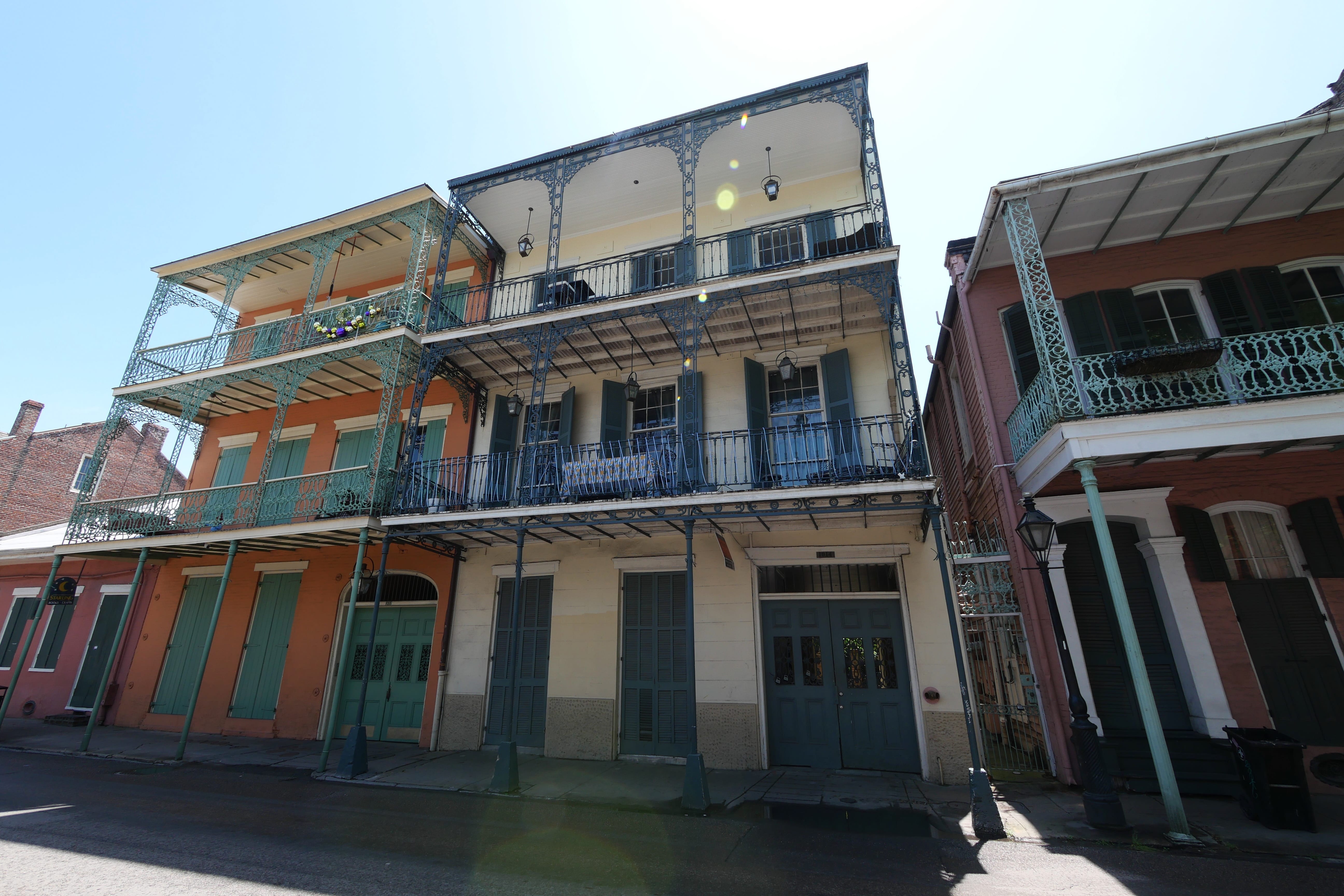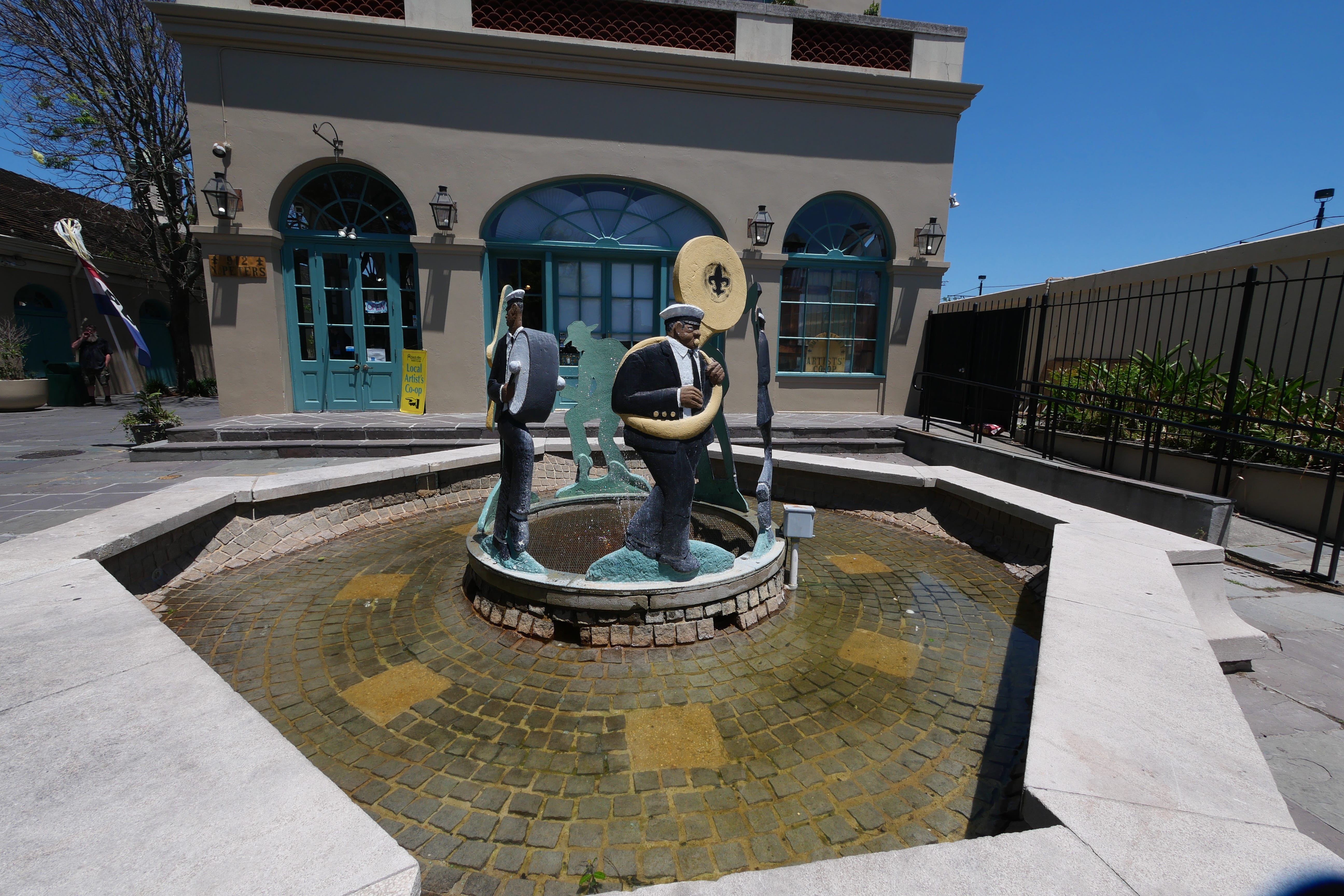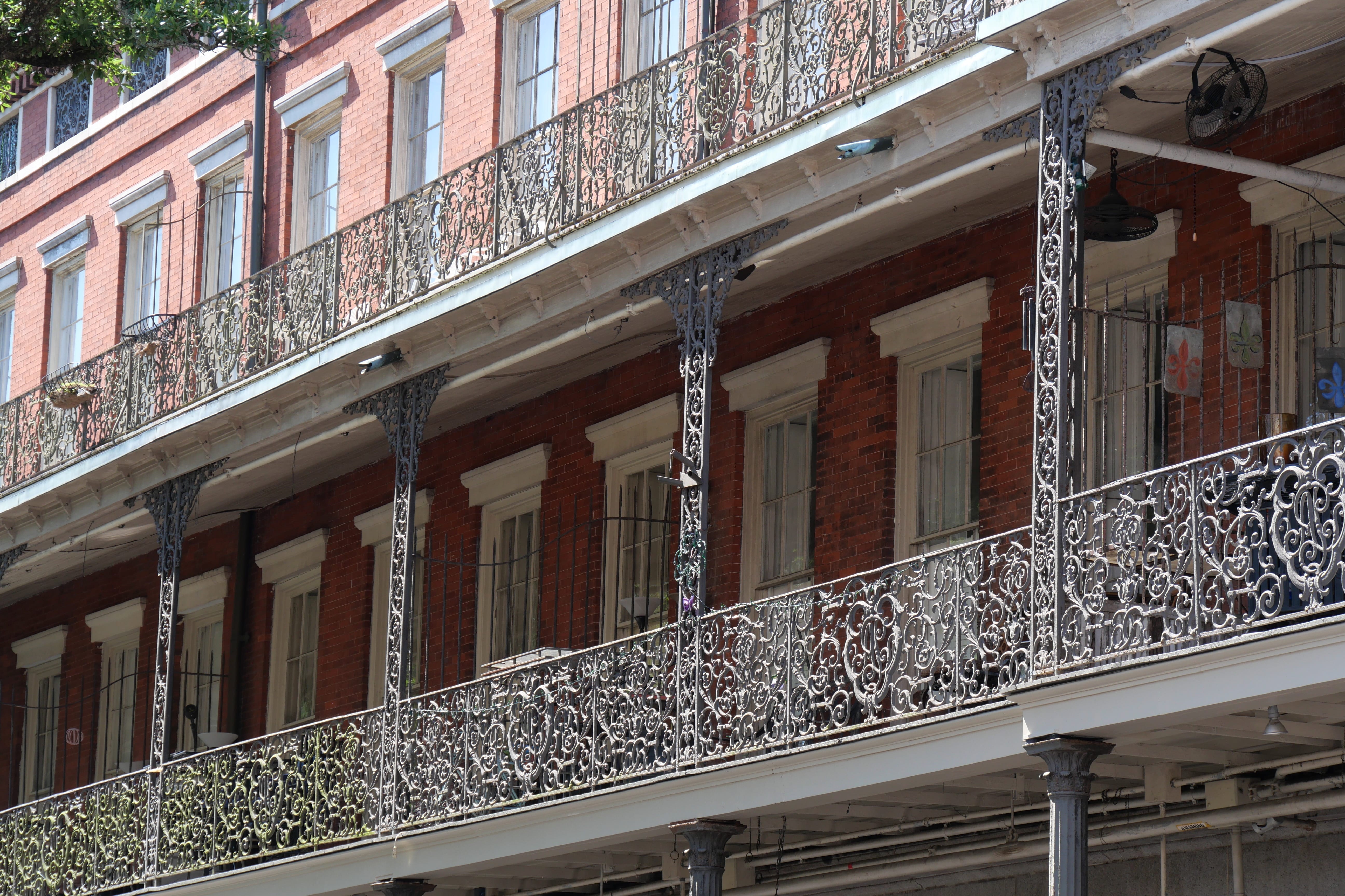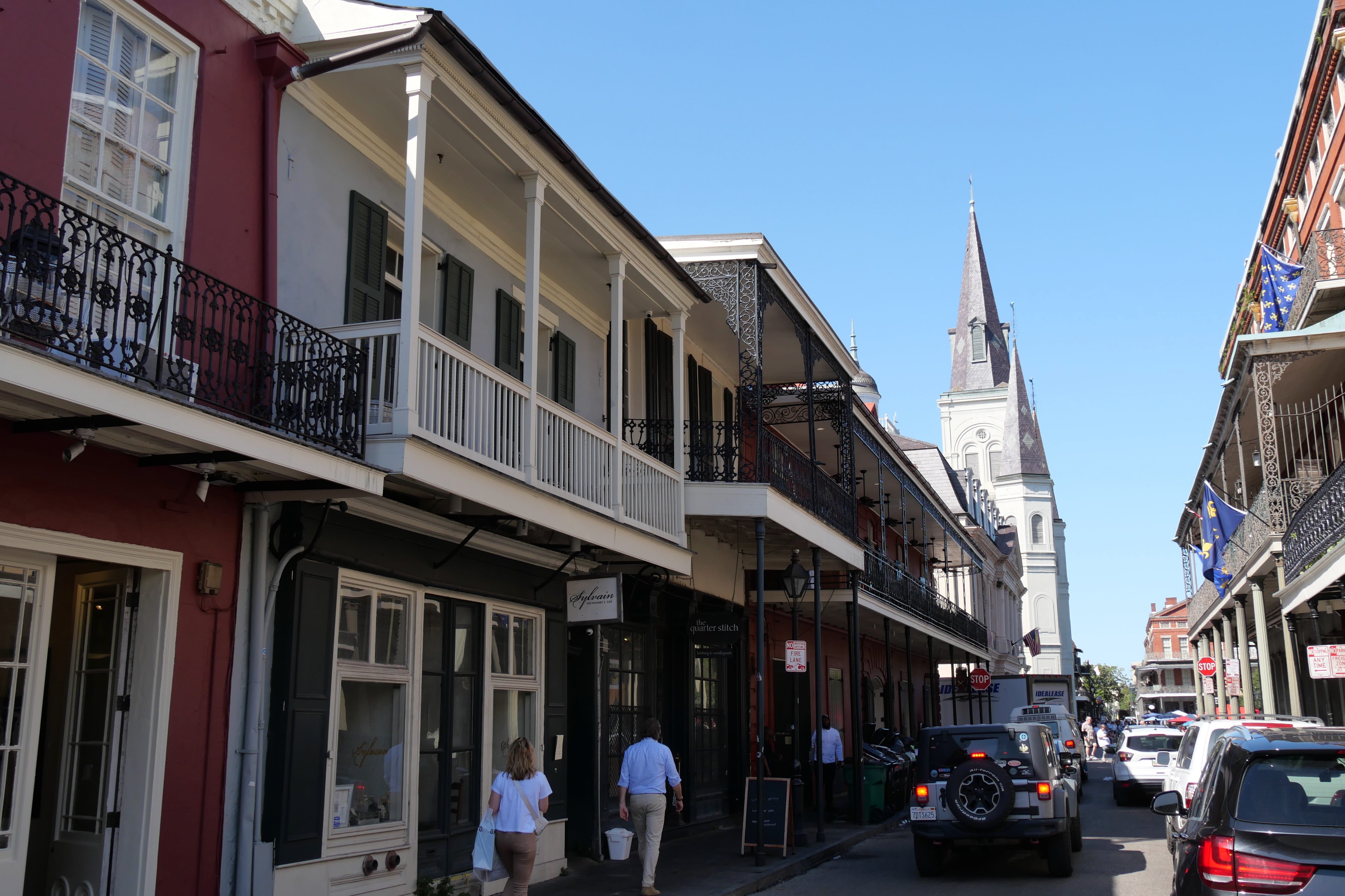 En sortant, le soleil revient petit à petit et avec lui, une chaleur à laquelle on ne s’attendait pas. On emprunte Frenchmen Street, qui a cette heure-là (un peu avant midi), ne présente pas beaucoup d’intérêt selon nous. L’animation est inexistante et ce sont beaucoup de bars et de restaurants qui se succèdent mais qui a priori, ouvriront et s’animeront plus tard dans la journée. On poursuit tout de même jusqu’à Washington Square, petit parc tranquille où certains viennent chercher l’ombre. En ce qui nous concerne, nous choisirons de remonter Royal Street et d’admirer ses nombreux balcons en fer forgé et son architecture coloniale typique du Vieux Carré Français (ou French Quarter), classé site historique national. Nous traverserons la rue jusqu’à son extrémité Ouest, là où elle rencontre Canal Street, qui marque la fin du Vieux Carré.