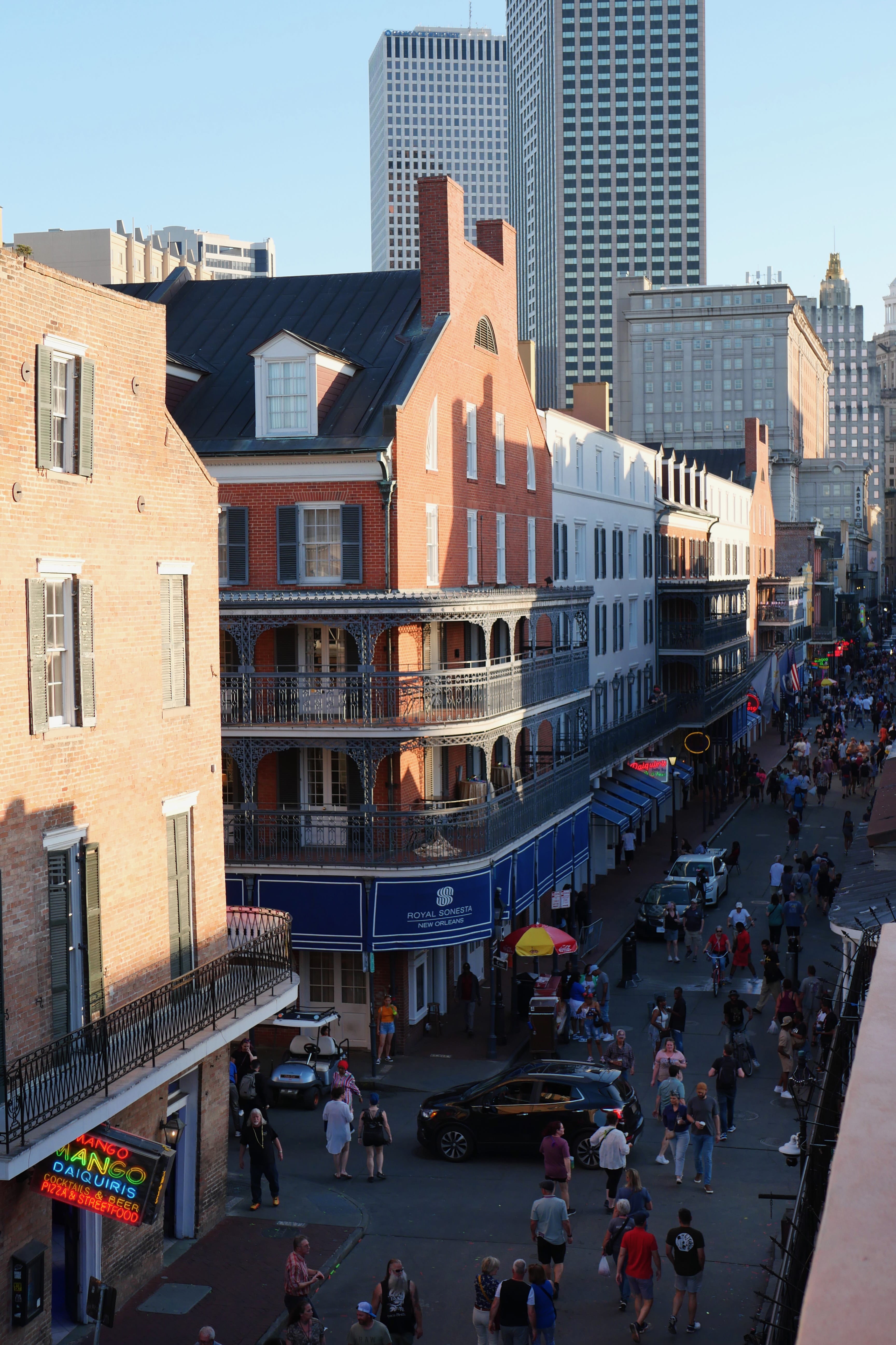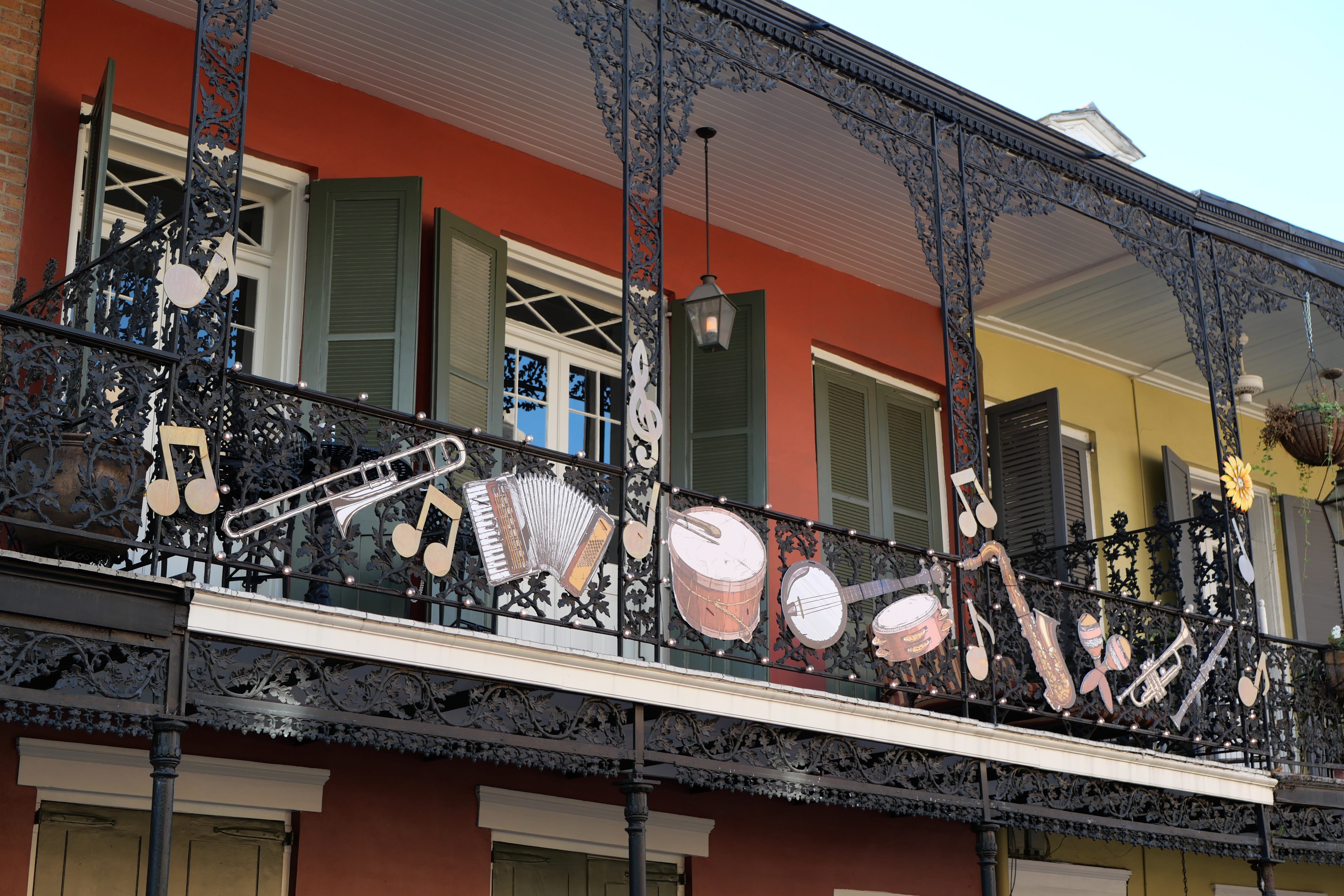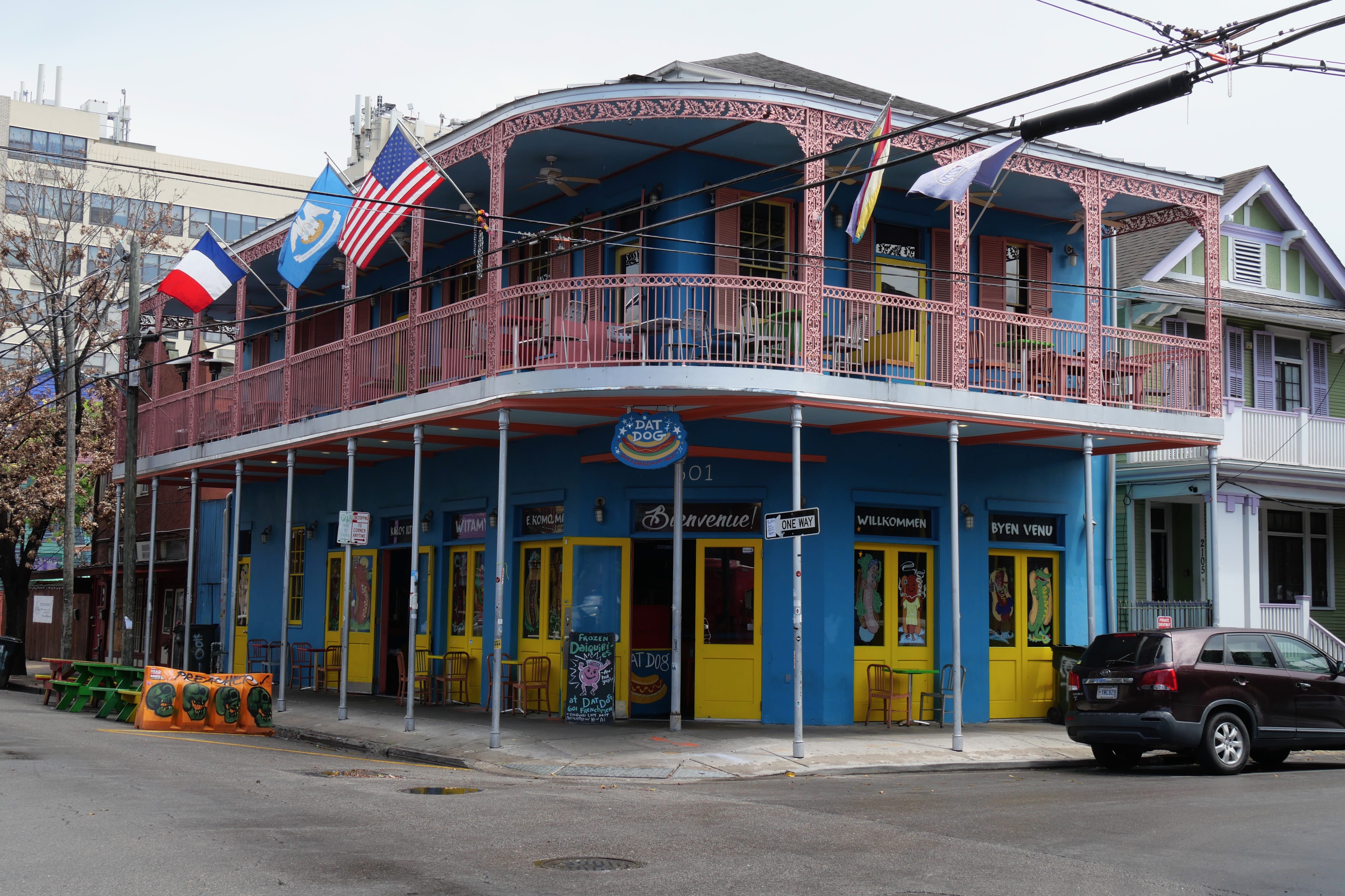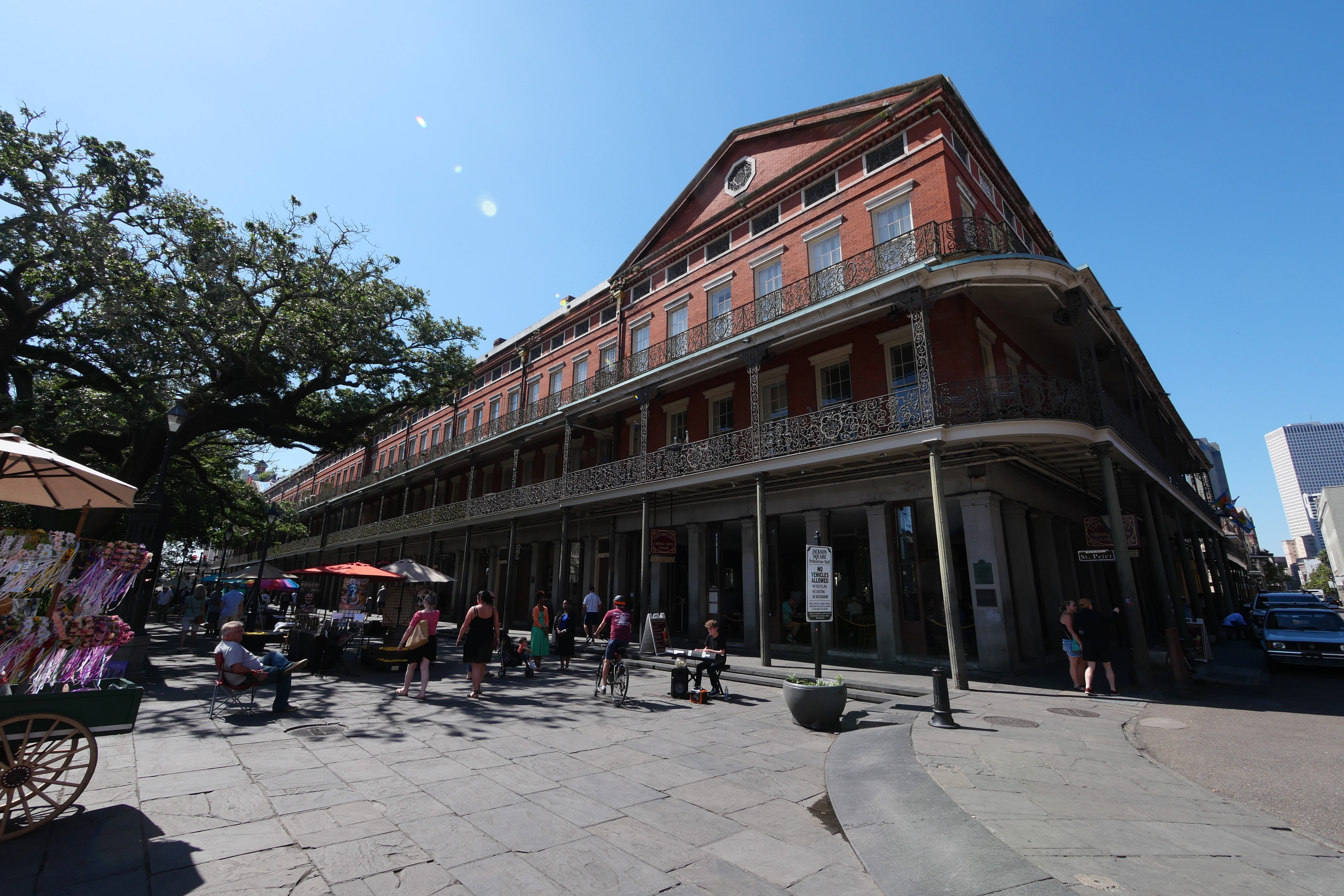 En sortant, le soleil revient petit à petit et avec lui, une chaleur à laquelle on ne s’attendait pas. On emprunte Frenchmen Street, qui a cette heure-là (un peu avant midi), ne présente pas beaucoup d’intérêt selon nous. L’animation est inexistante et ce sont beaucoup de bars et de restaurants qui se succèdent mais qui a priori, ouvriront et s’animeront plus tard dans la journée. On poursuit tout de même jusqu’à Washington Square, petit parc tranquille où certains viennent chercher l’ombre. En ce qui nous concerne, nous choisirons de remonter Royal Street et d’admirer ses nombreux balcons en fer forgé et son architecture coloniale typique du Vieux Carré Français (ou French Quarter), classé site historique national. Nous traverserons la rue jusqu’à son extrémité Ouest, là où elle rencontre Canal Street, qui marque la fin du Vieux Carré.